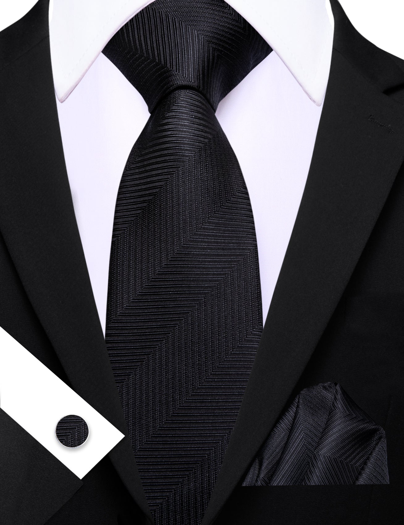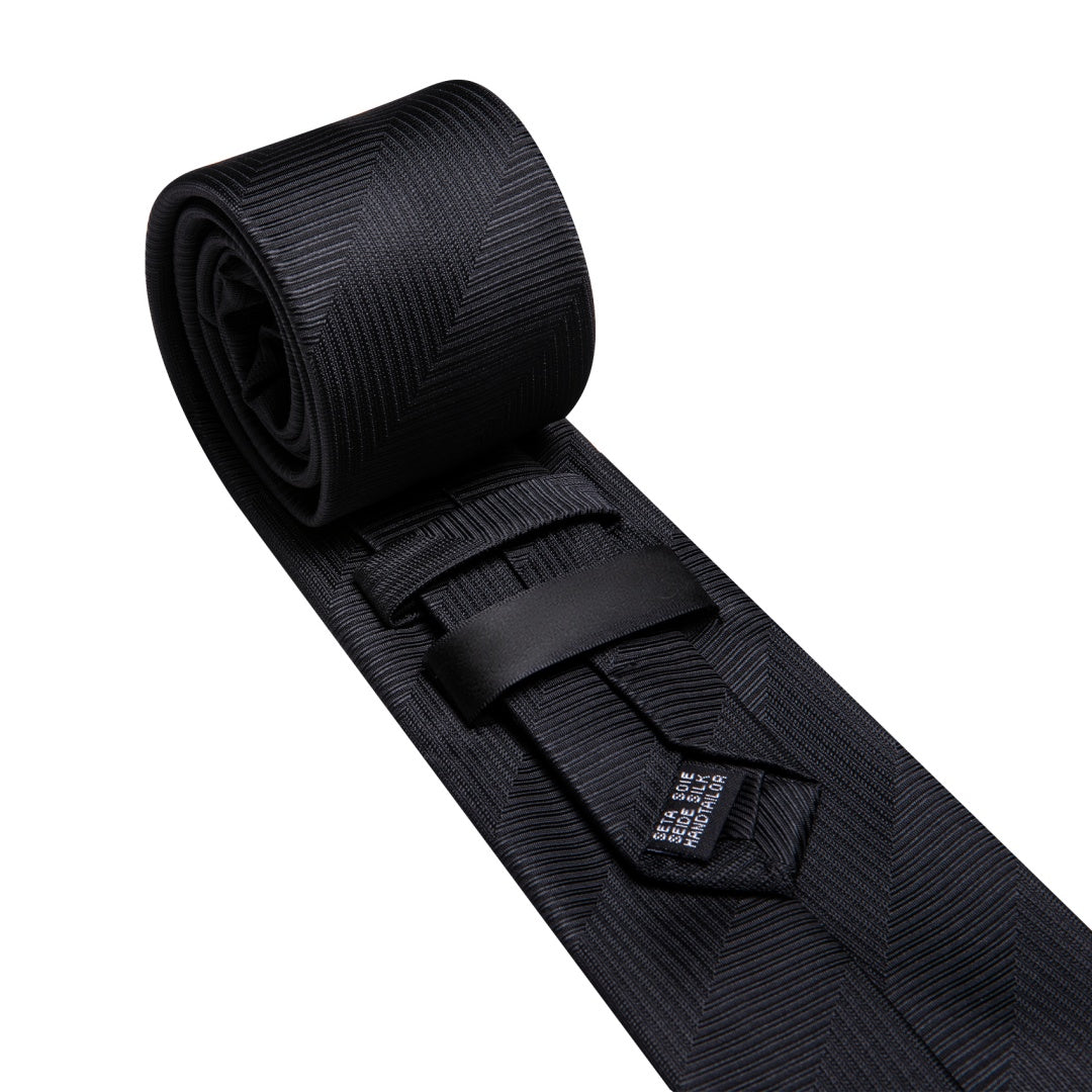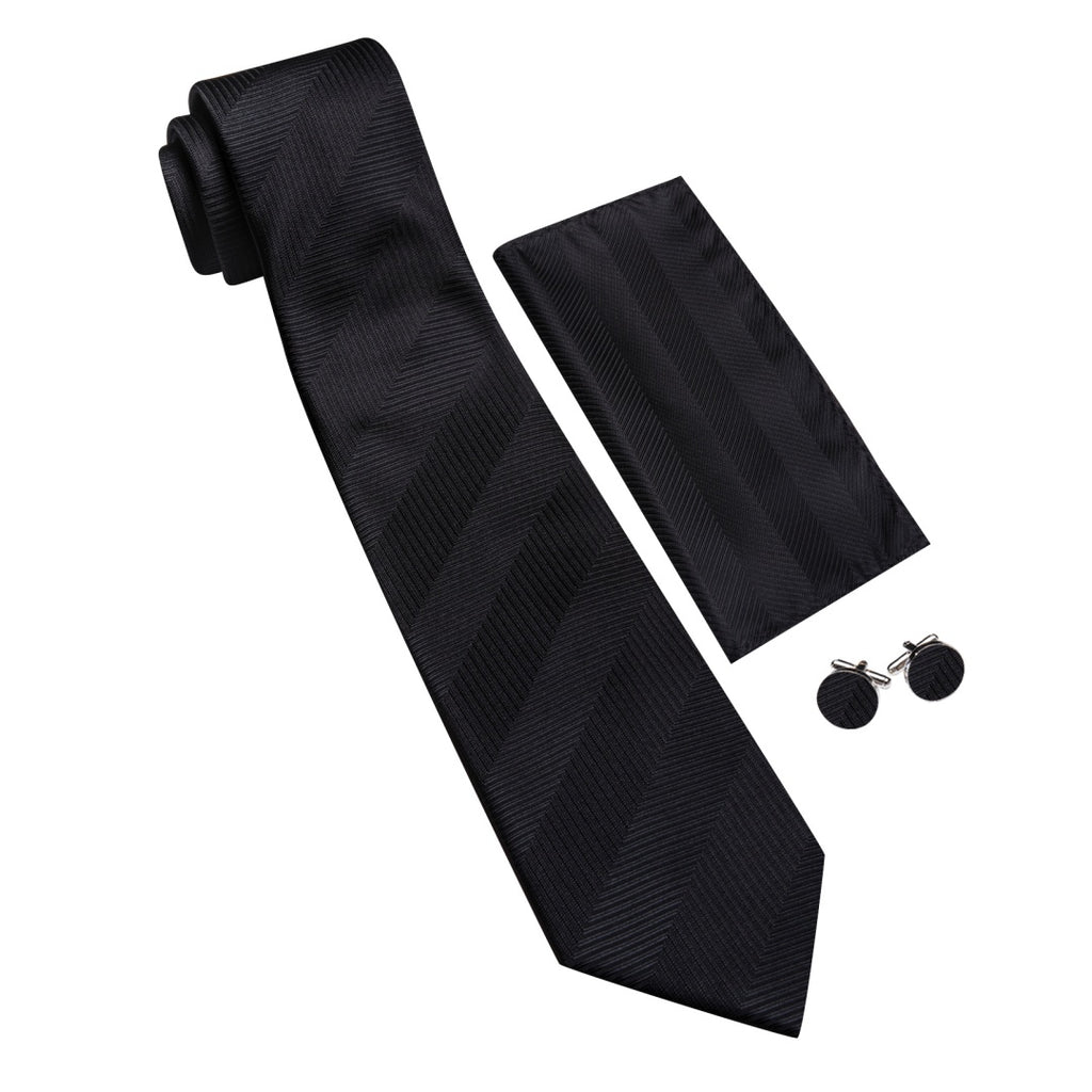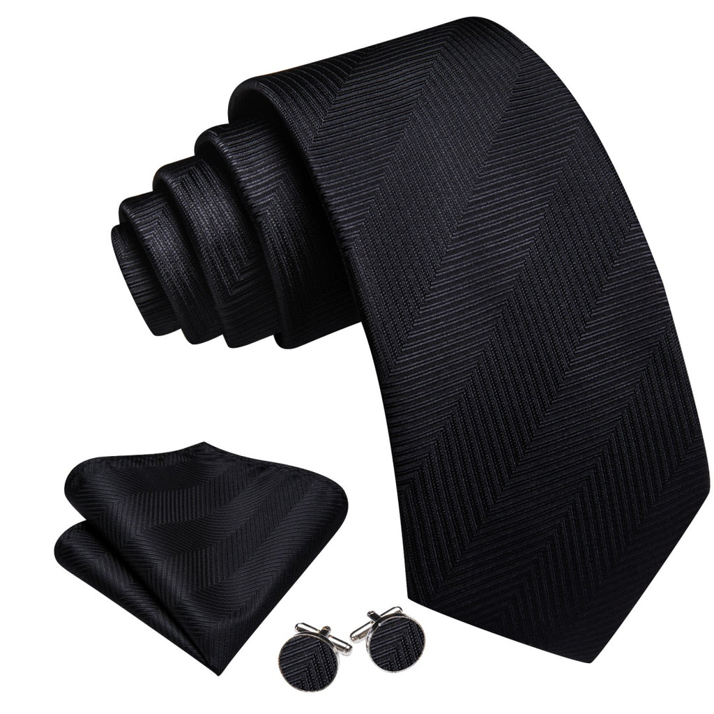 Barry. Wang Black Mens Tie Silk Solid Necktie Pocket Square Cufflinks Set