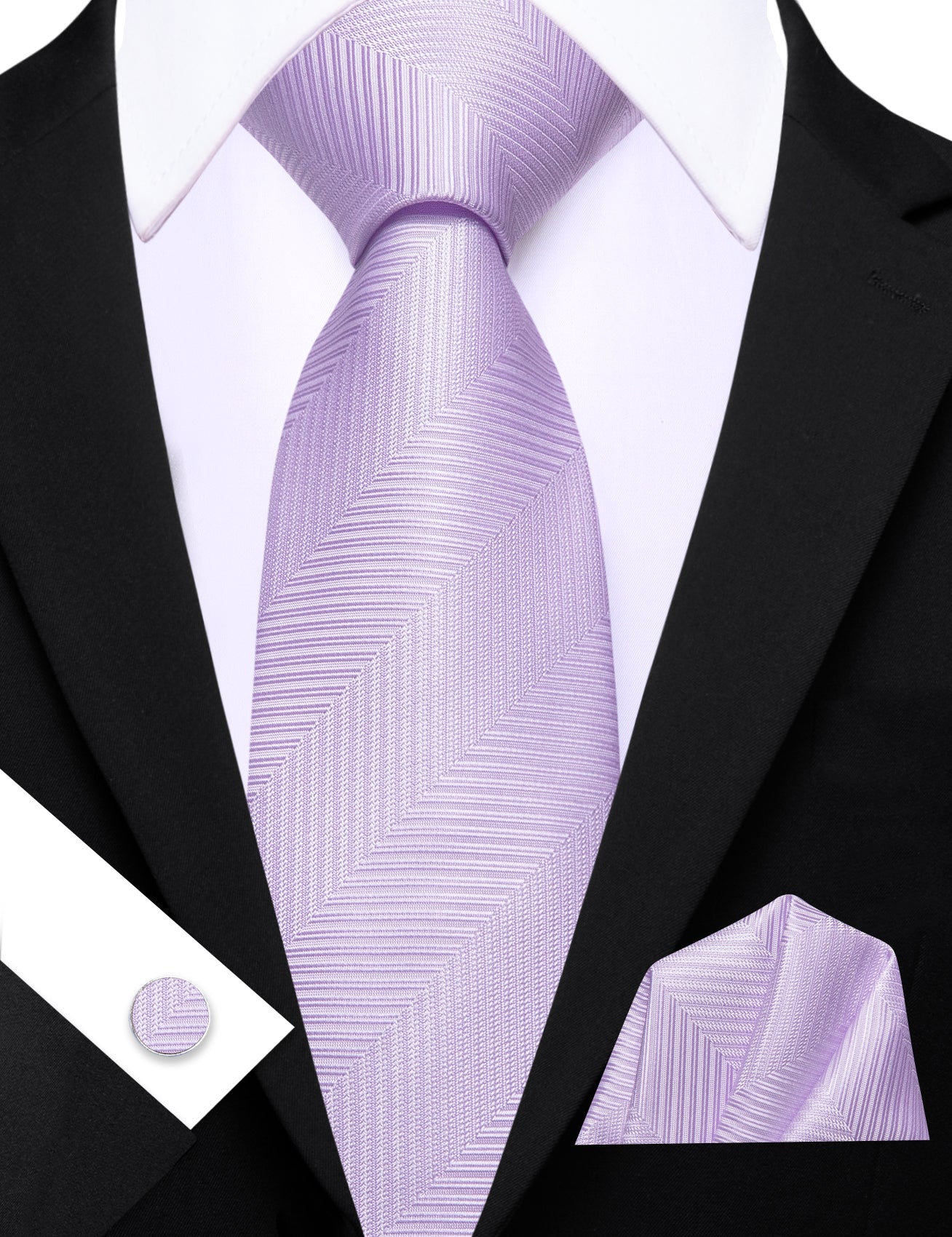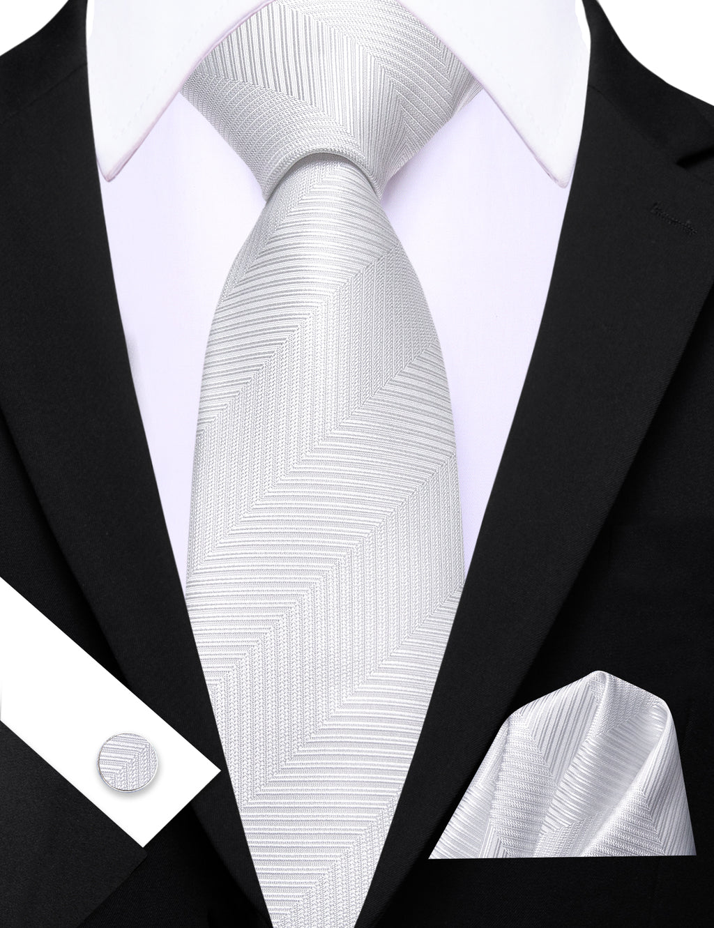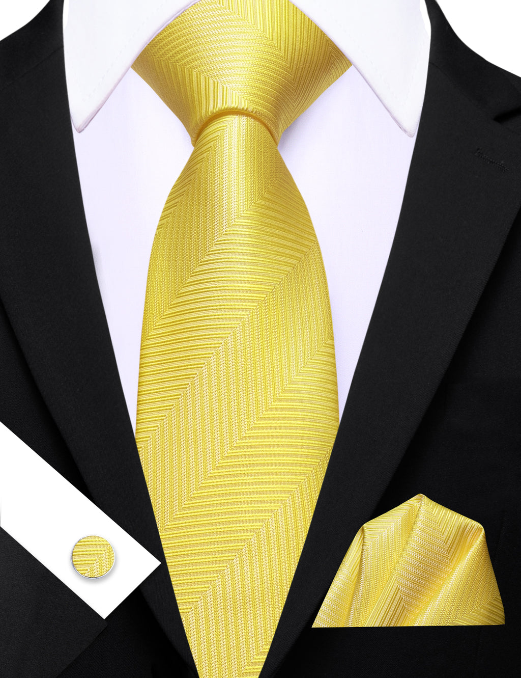 Barry. Wang Black Mens Tie Silk Solid Necktie Pocket Square Cufflinks Set