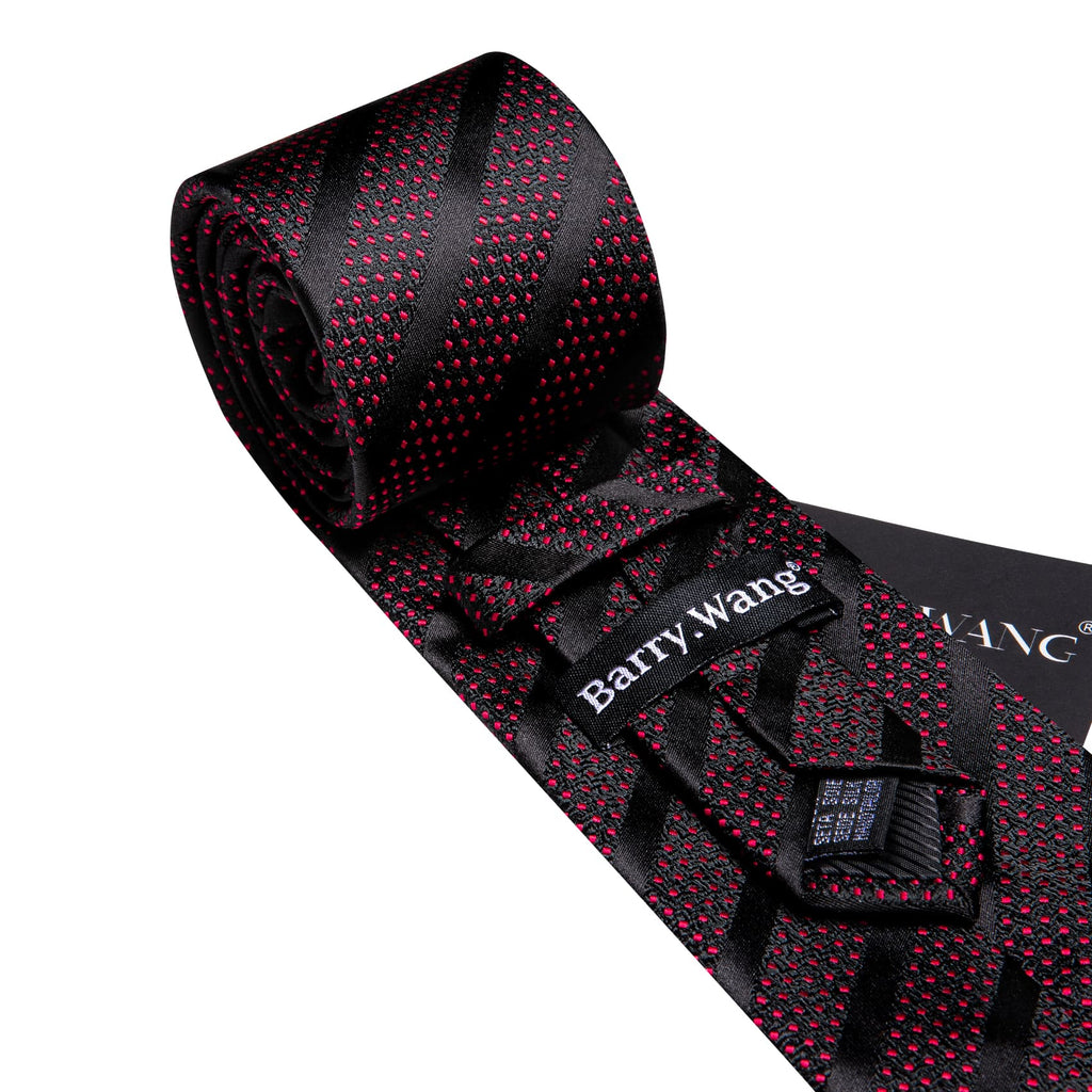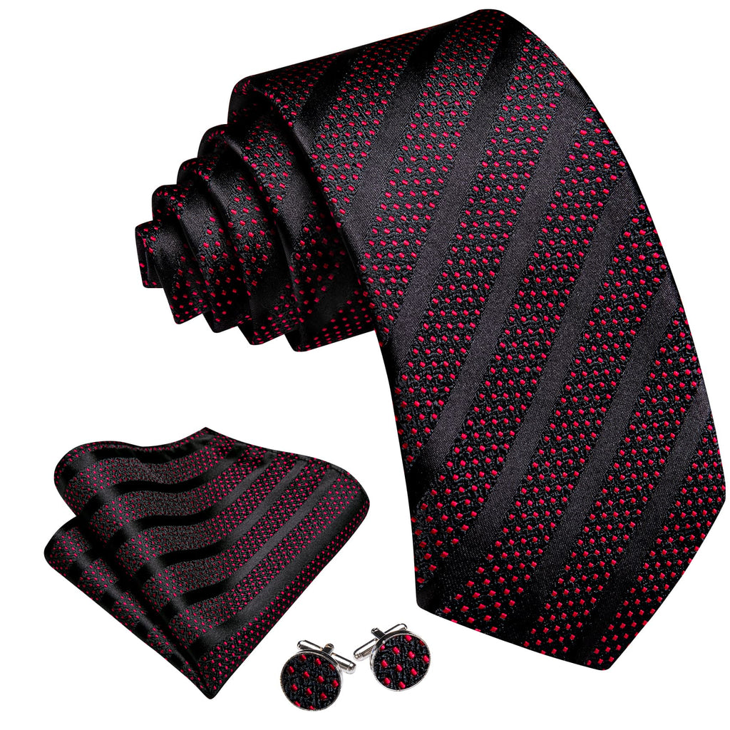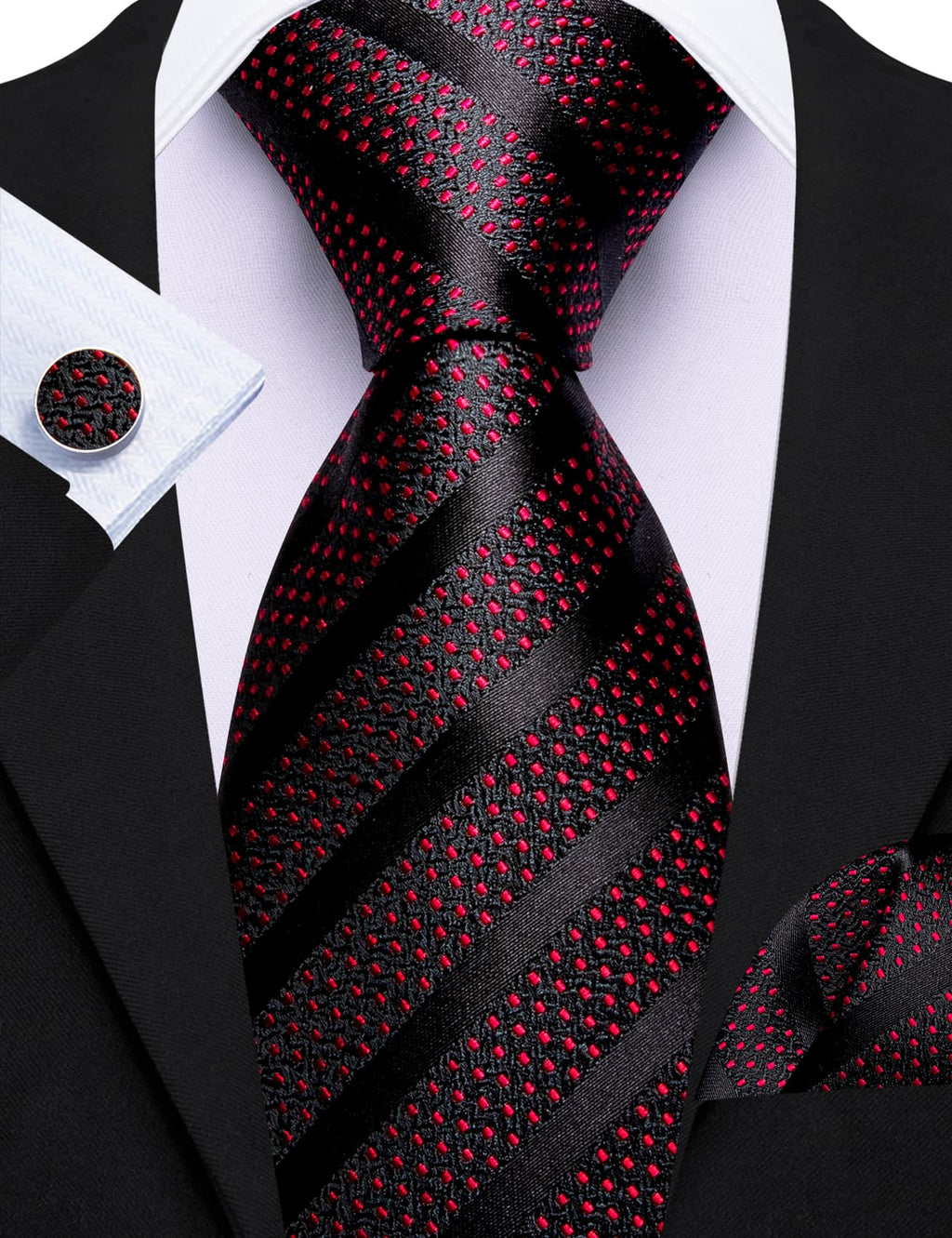 Barry. Wang Black Necktie Red Polka Dots Men's Tie Hanky Cufflinks Set