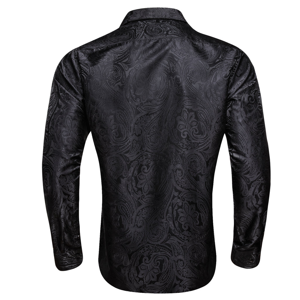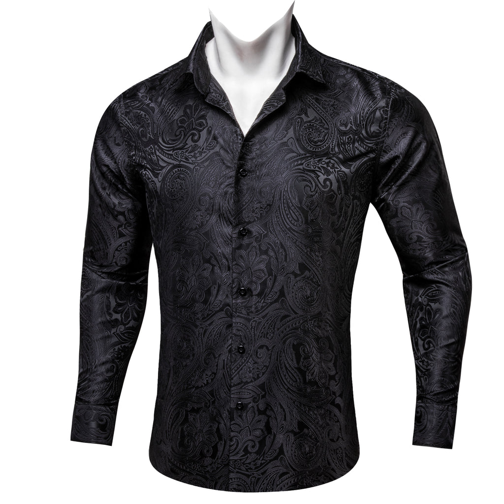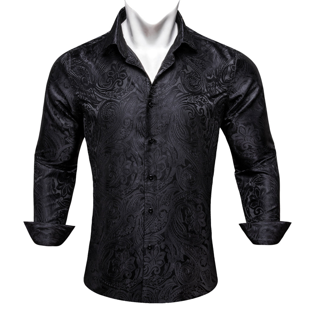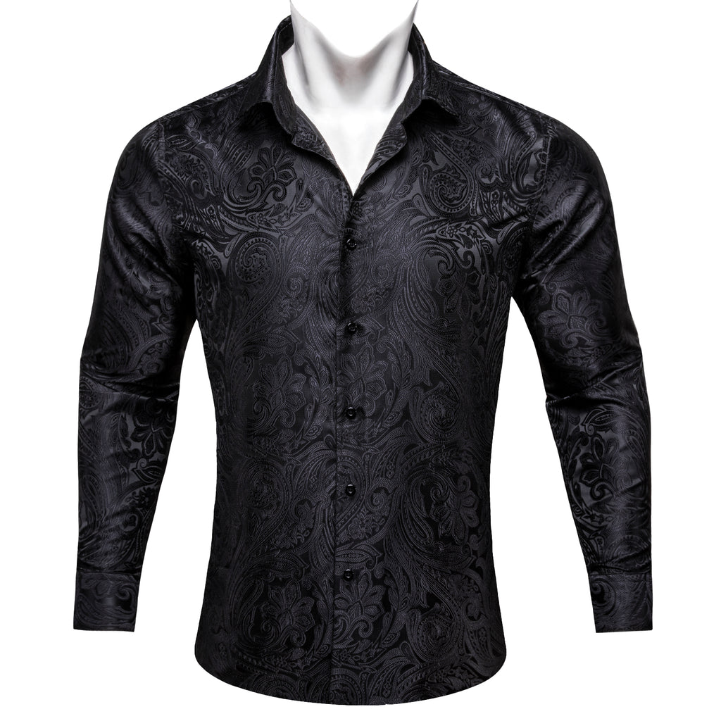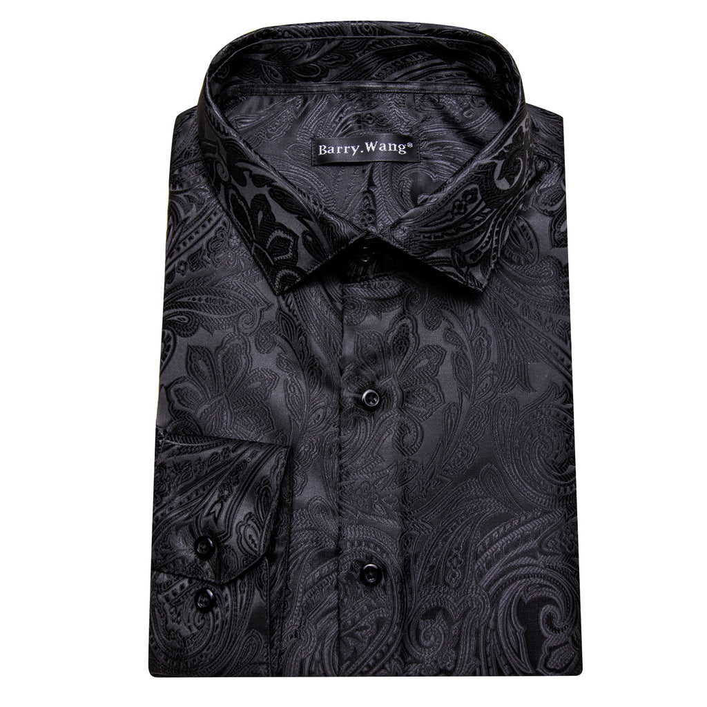 Barry. Wang Mens Western Shirt Casual Black Paisley Jacquard Long Sleeve Button Down Shirt