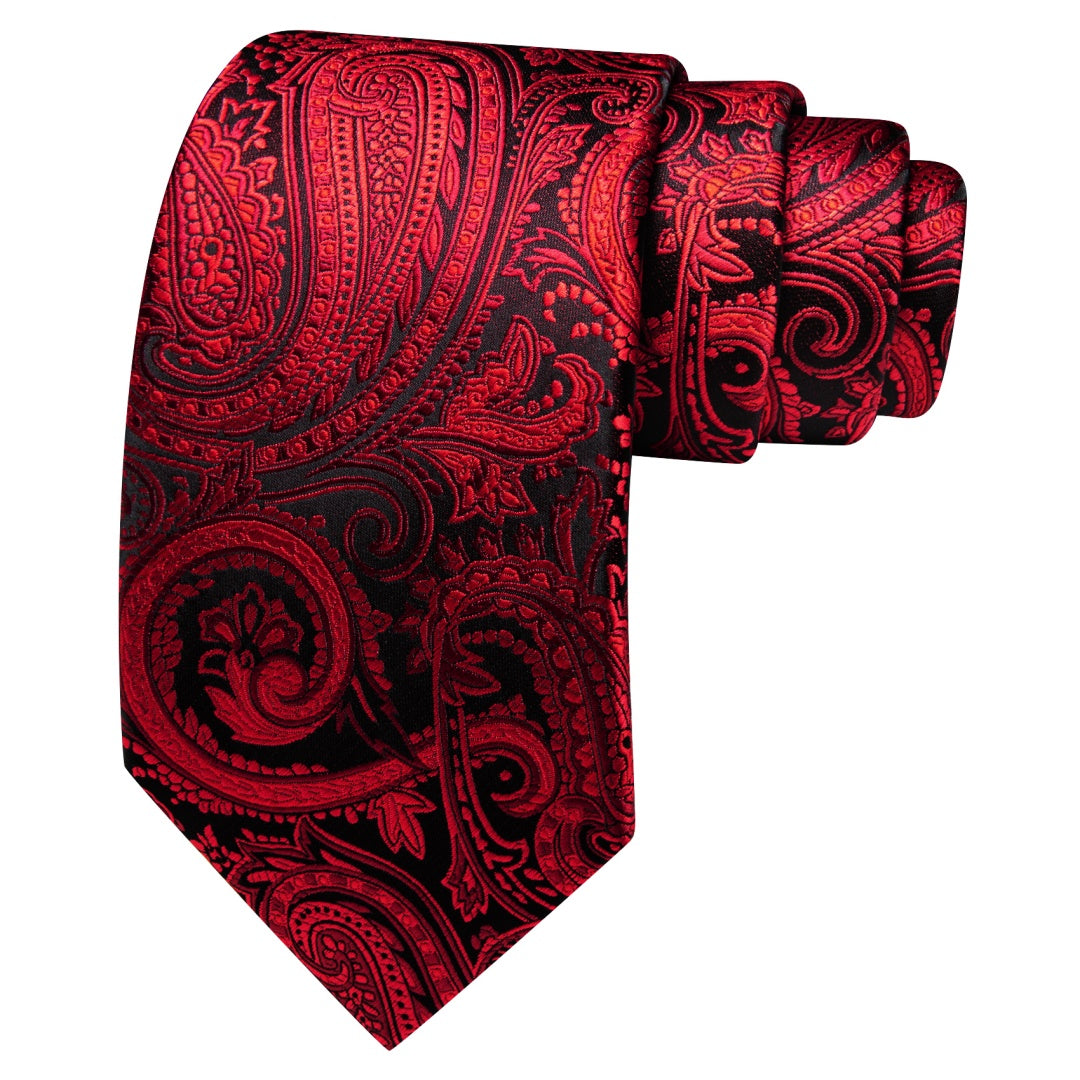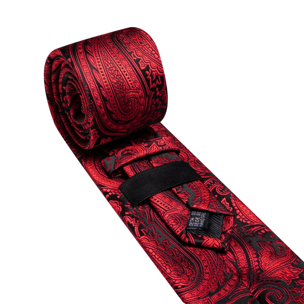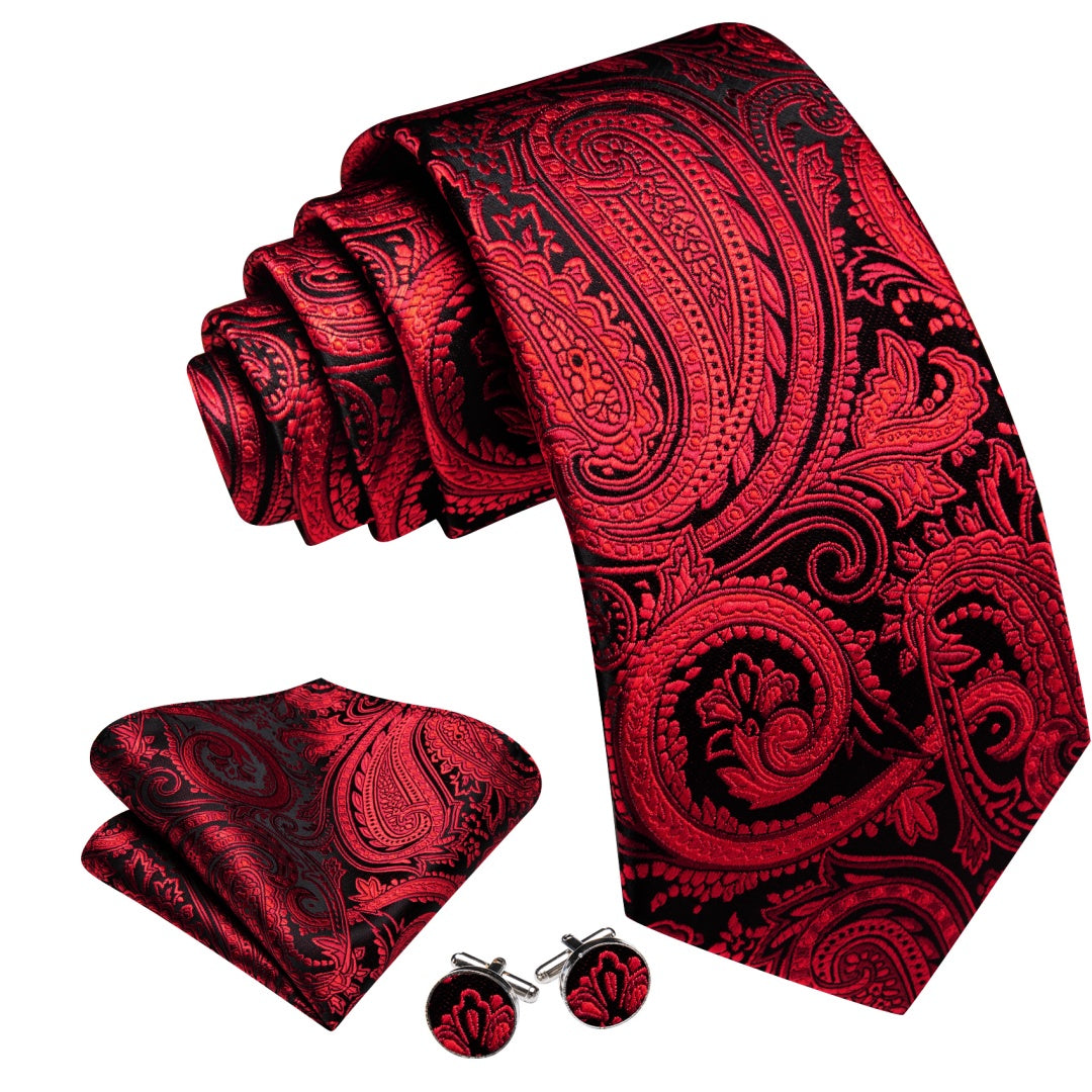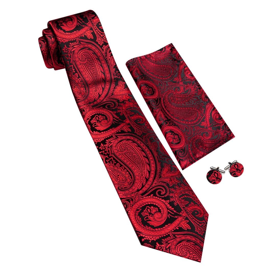 Barry. Wang Black Red Paisley Tie Pocket Square Cufflinks Set Silk Mens Ties