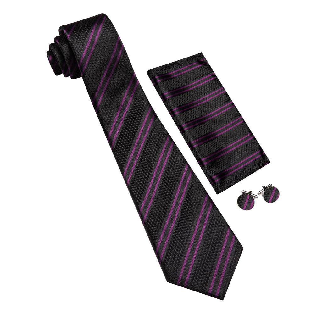 Barry. Wang Black Striped Tie with Purple Stripes Men's Business Set