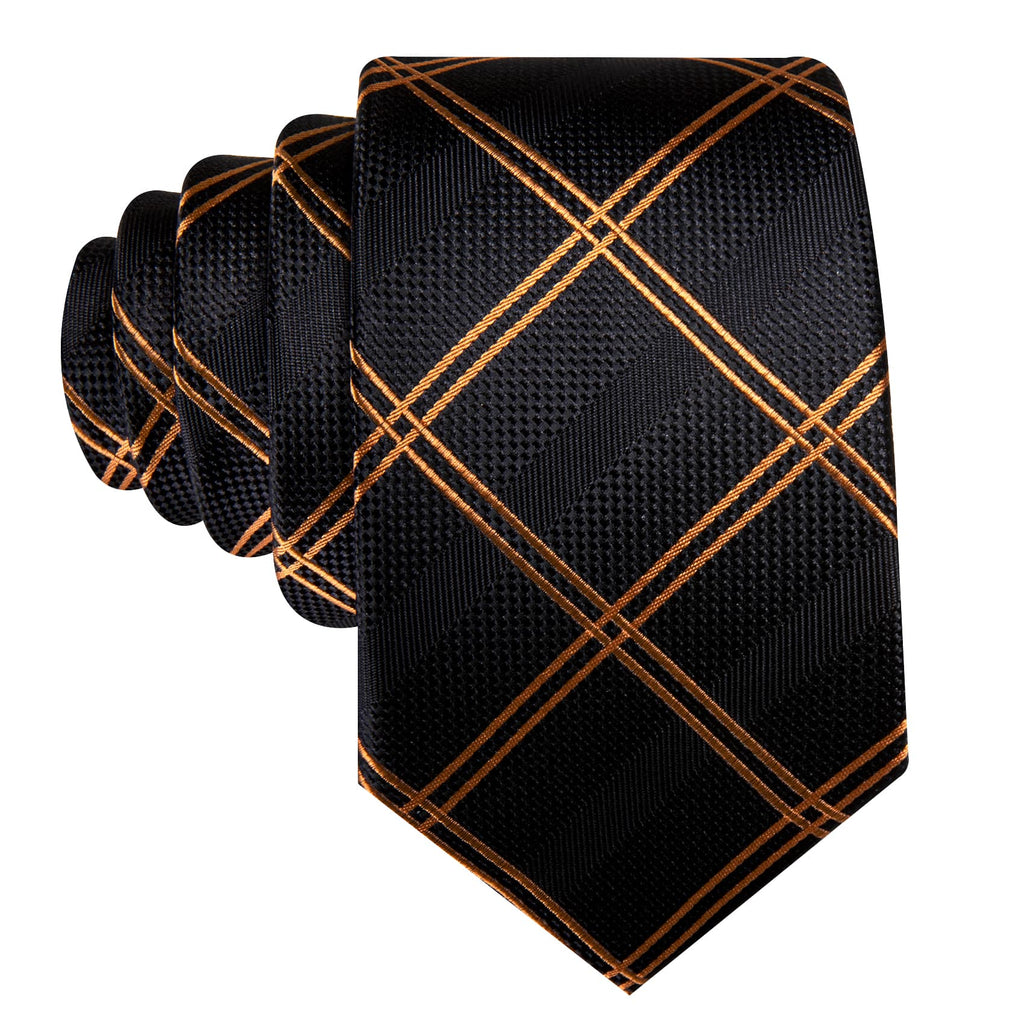 Barry. Wang Black Tie Formal Gold Lines Plaid Men's Wedding Necktie Set