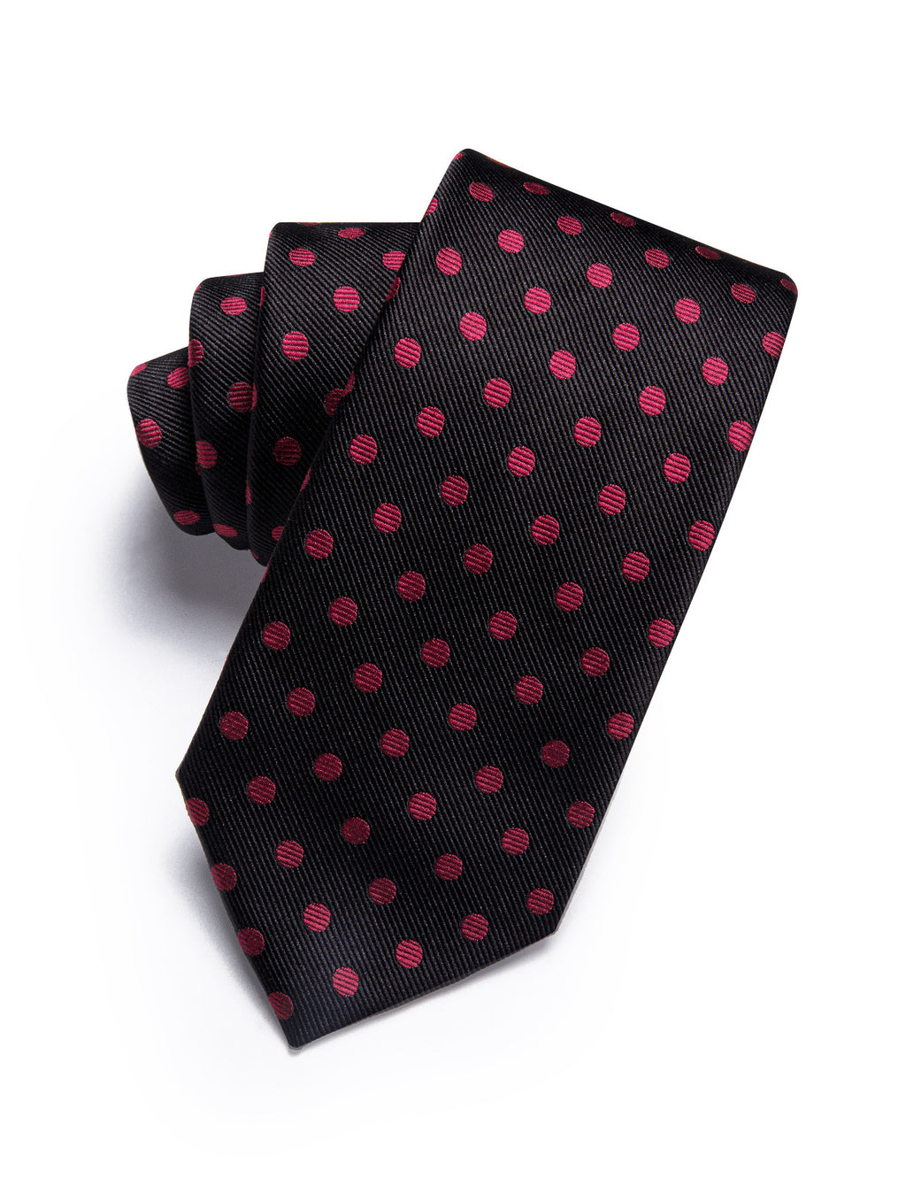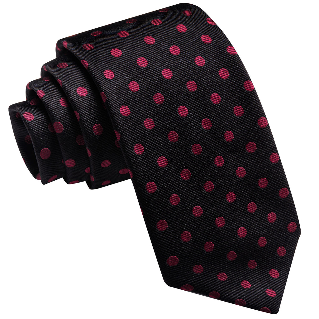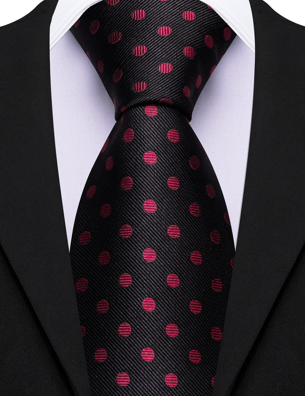 Barry. Wang Black Tie Fuchsia Pink Polka Dots Mens Wedding Tie Set