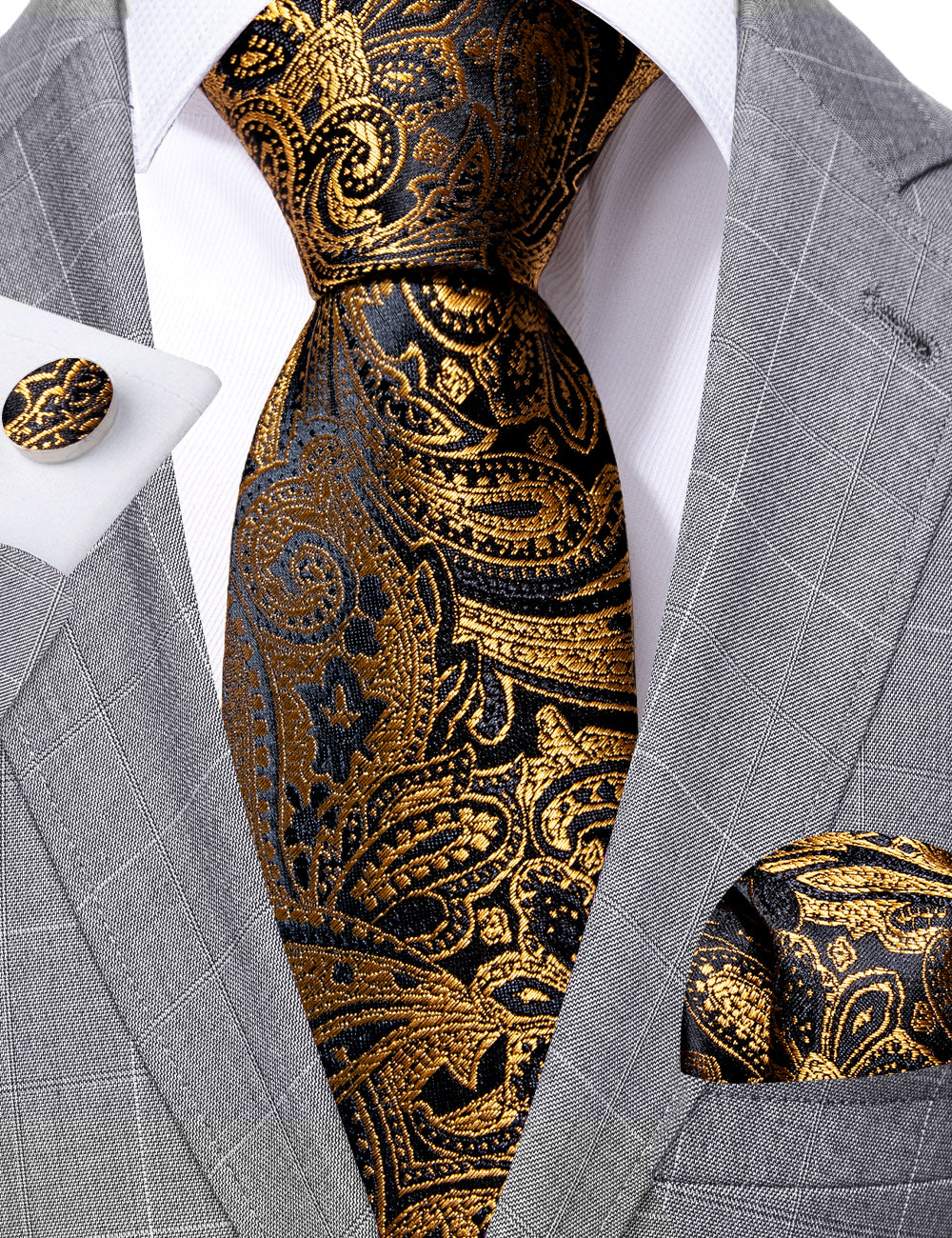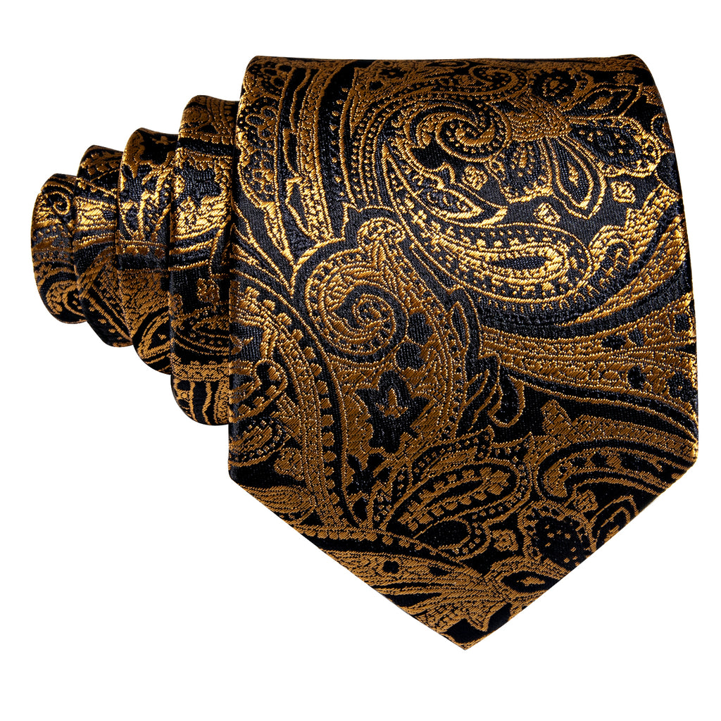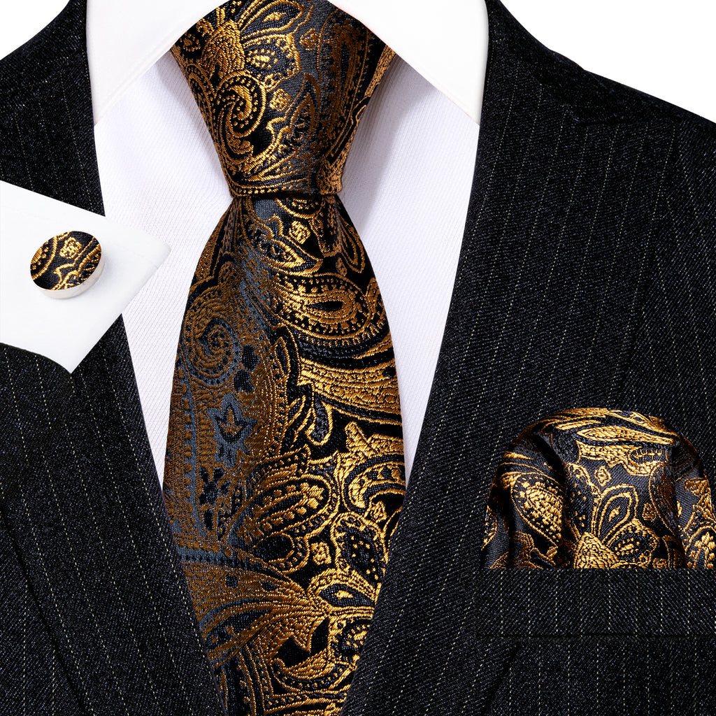 Barry. Wang Gold Paisley Formal Tie Silk Suit Necktie Pocket Square Set