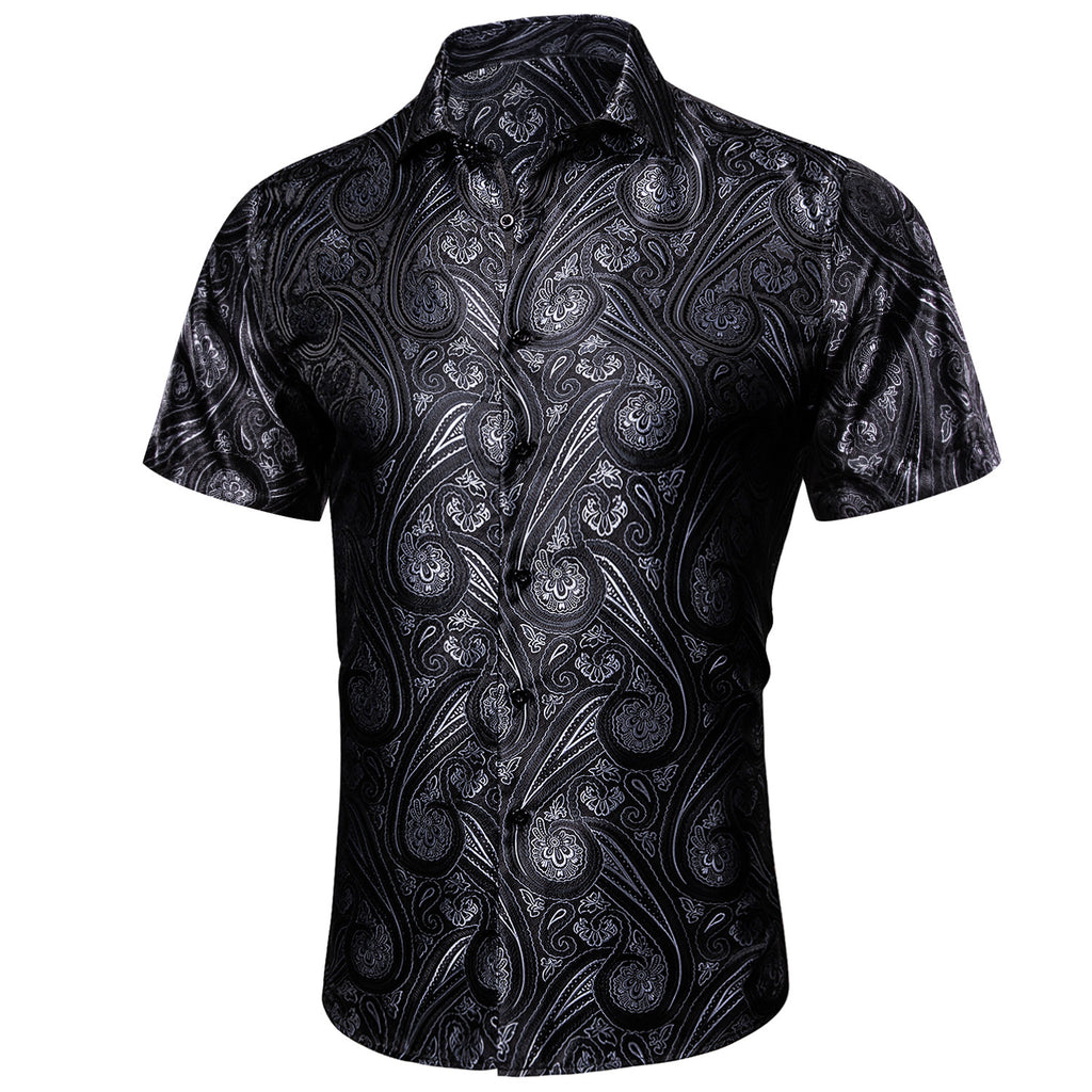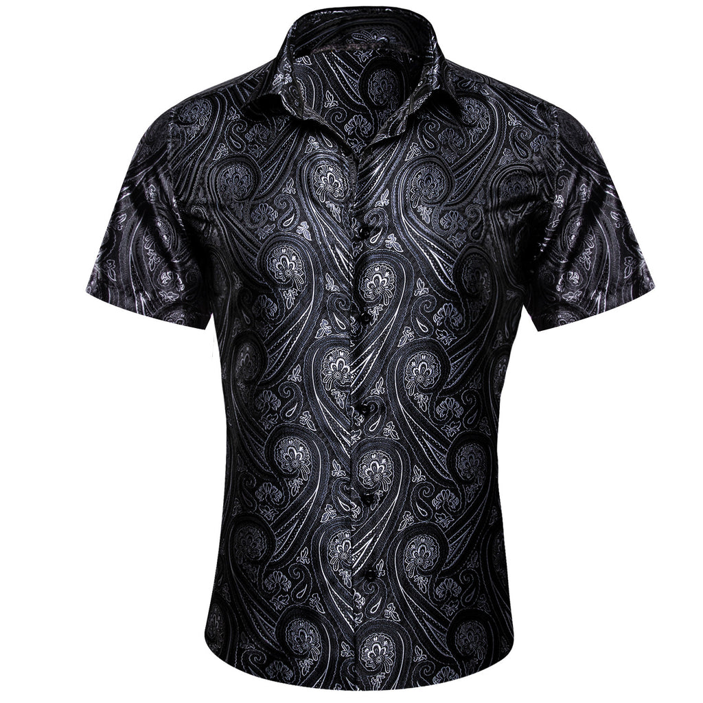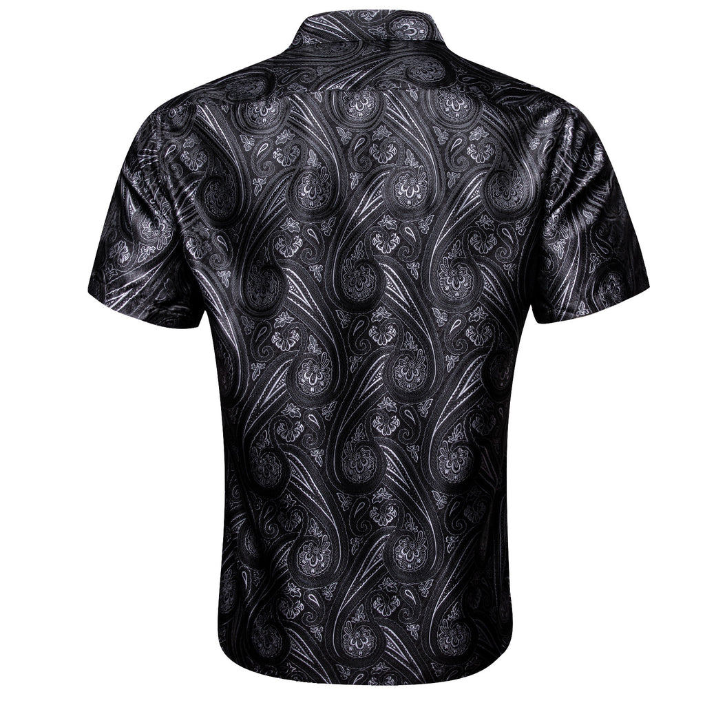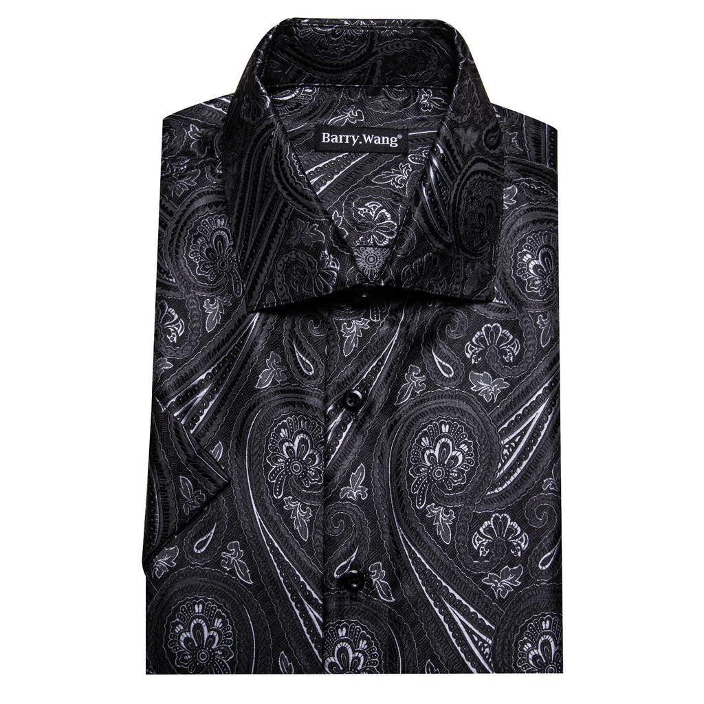 Barry. Wang Black White Paisley Jacquard Short Sleeve Button Up Shirt