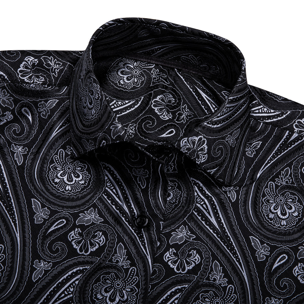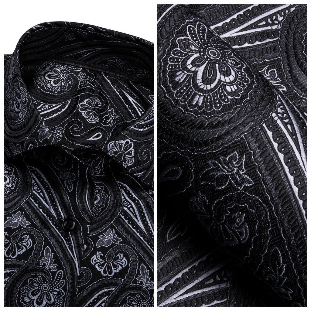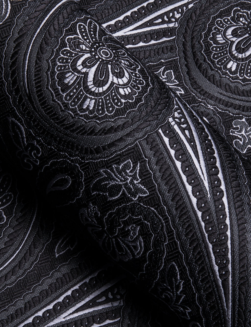 Barry. Wang Black White Paisley Jacquard Short Sleeve Button Up Shirt
