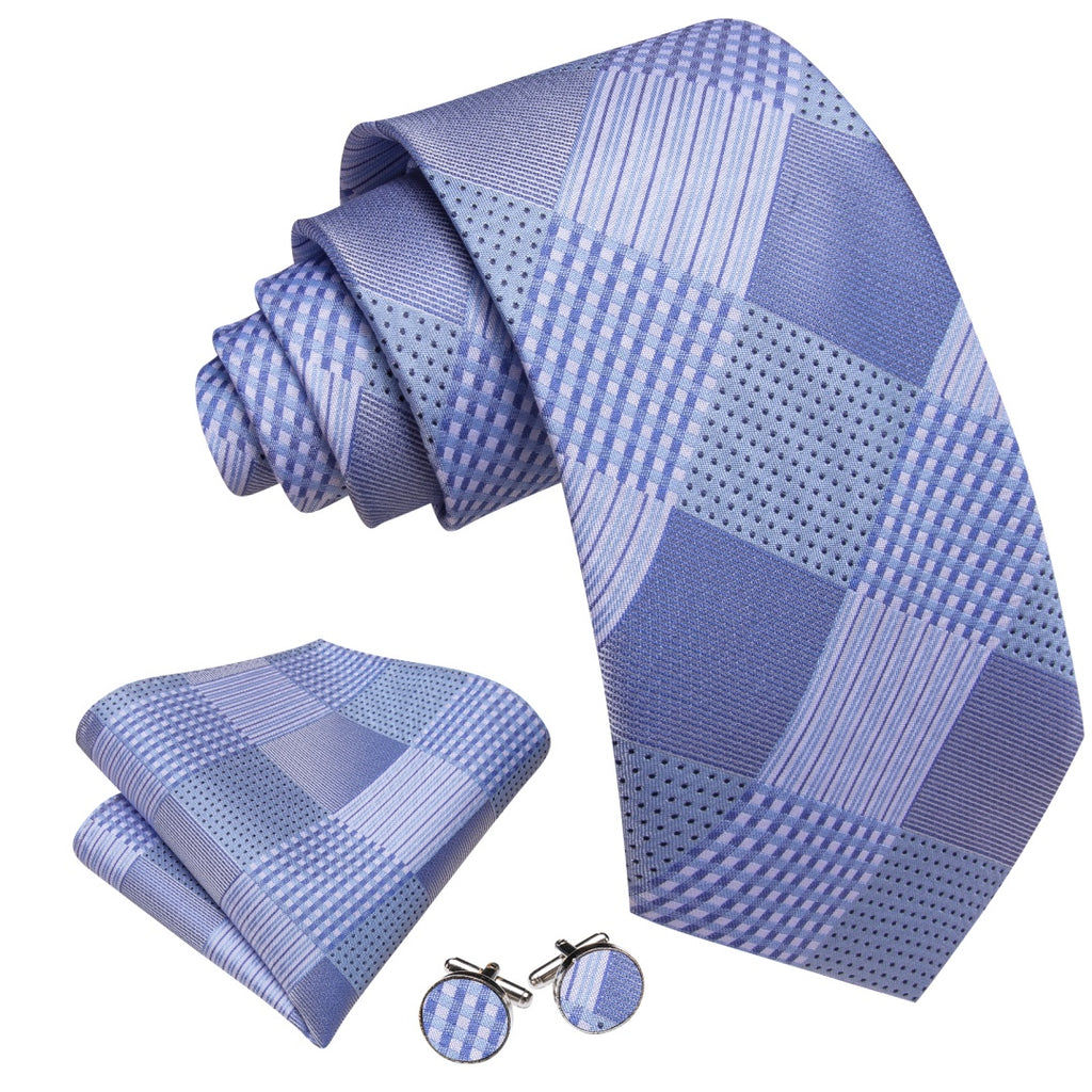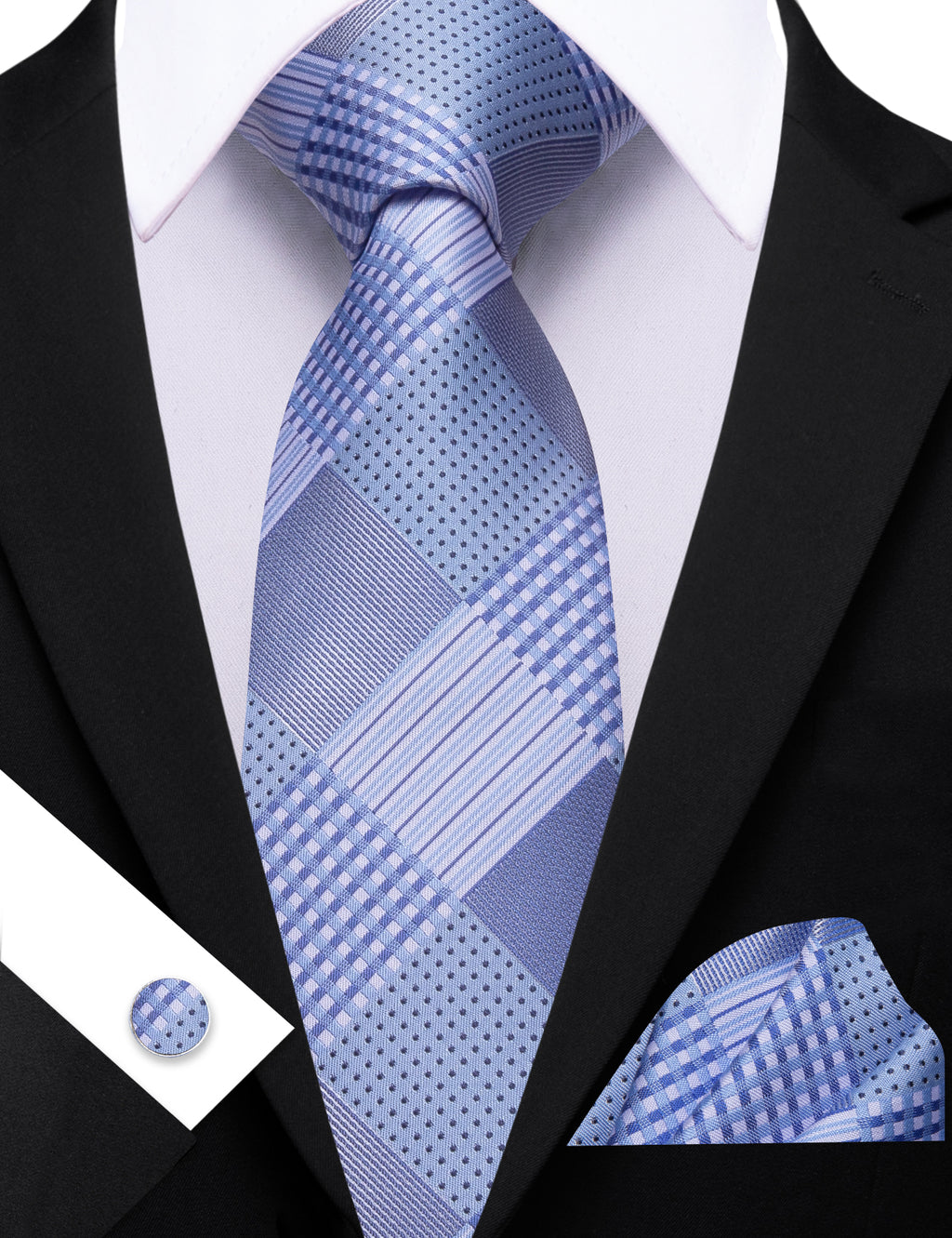 Barry. Wang Blue Plaid Novelty Tie Mens Silk Tie Pocket Square Cufflinks Set