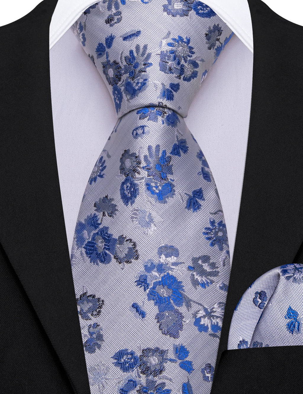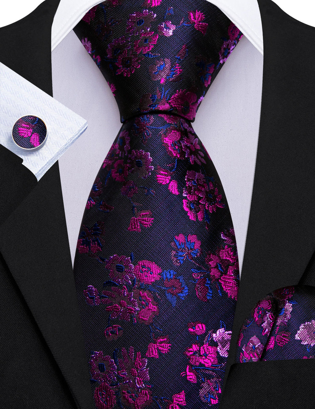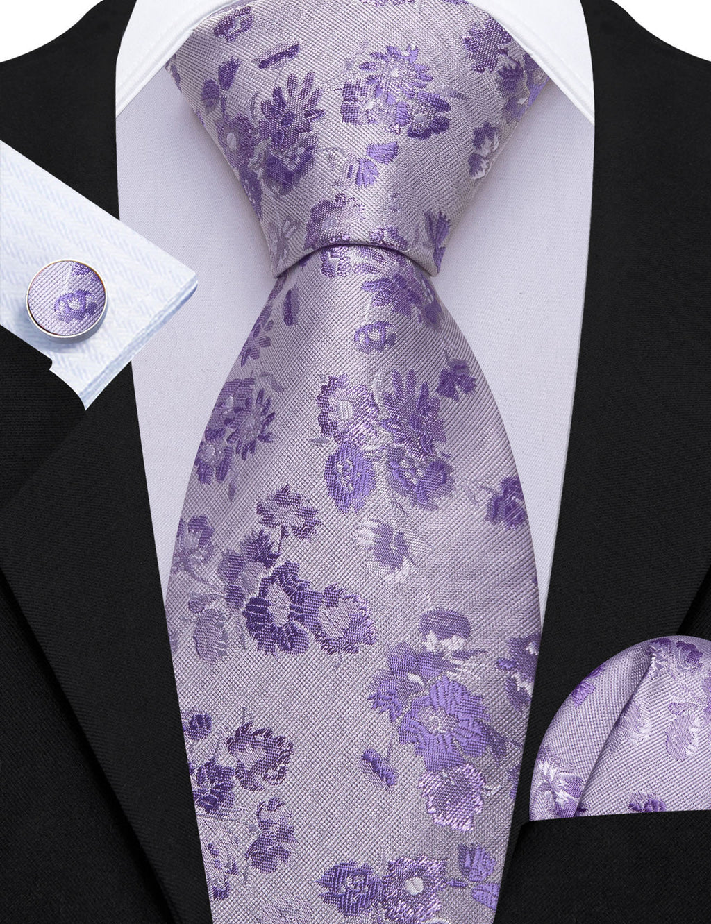 Barry. Wang Blue Purple Floral Tie Pocket Square Cufflinks Set for Men