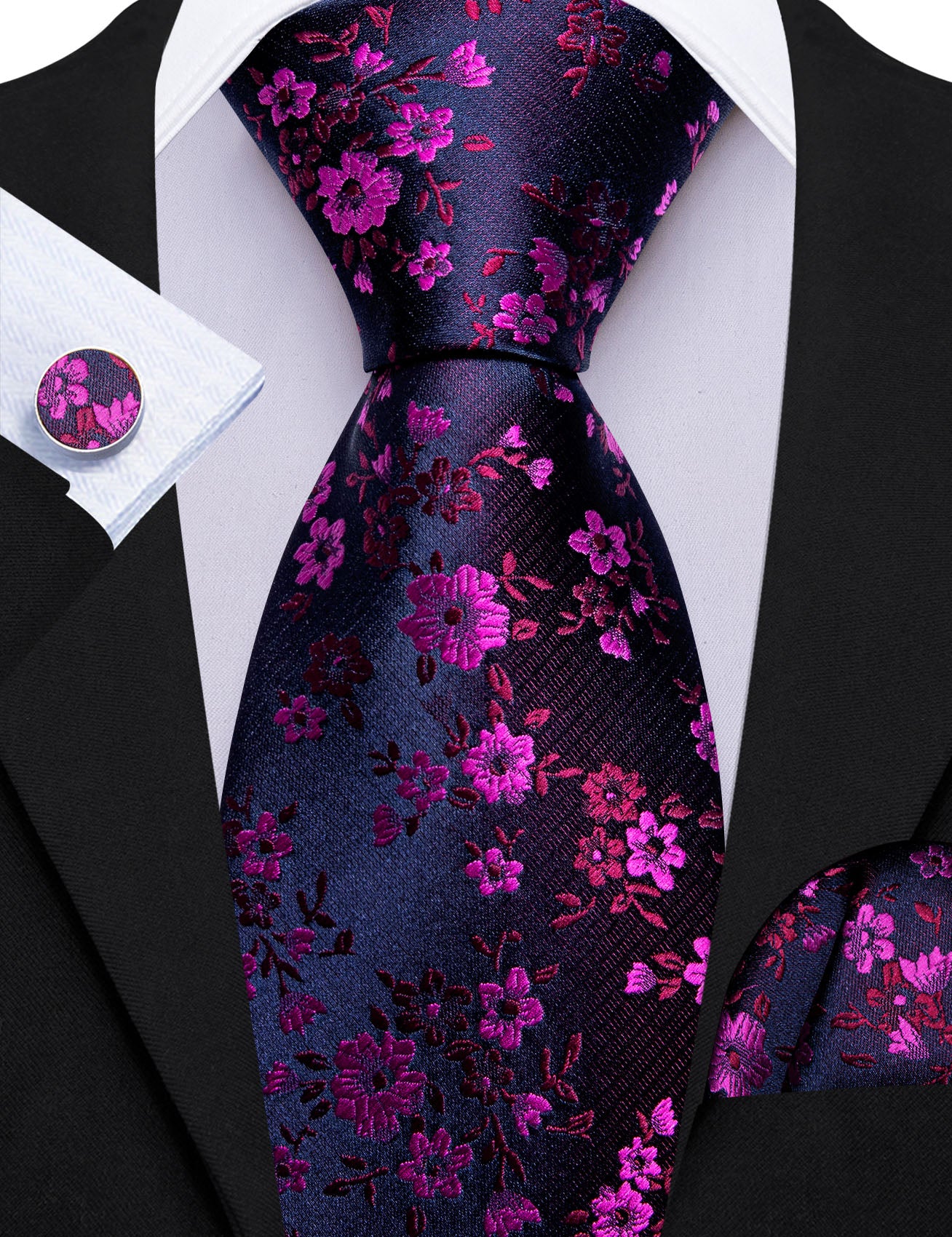Barry. Wang Blue Purple Floral Tie Pocket Square Cufflinks Set Silk Mens Ties