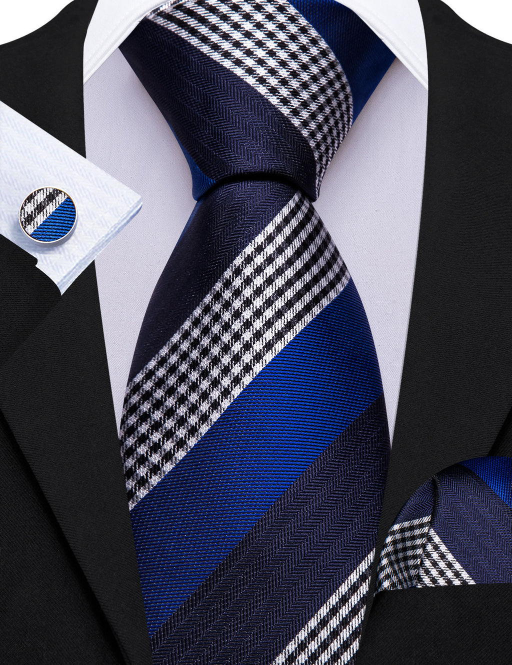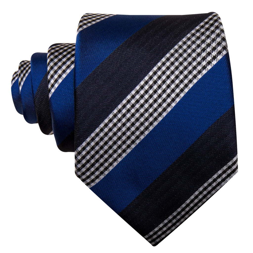Barry. Wang Blue Striped Tie Mens Silk Tie Pocket Square Cufflinks Set