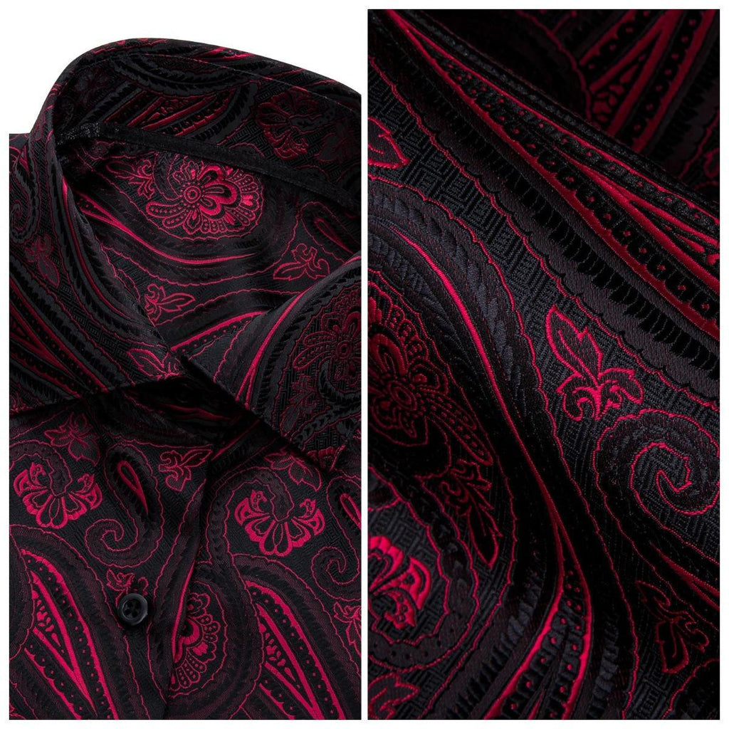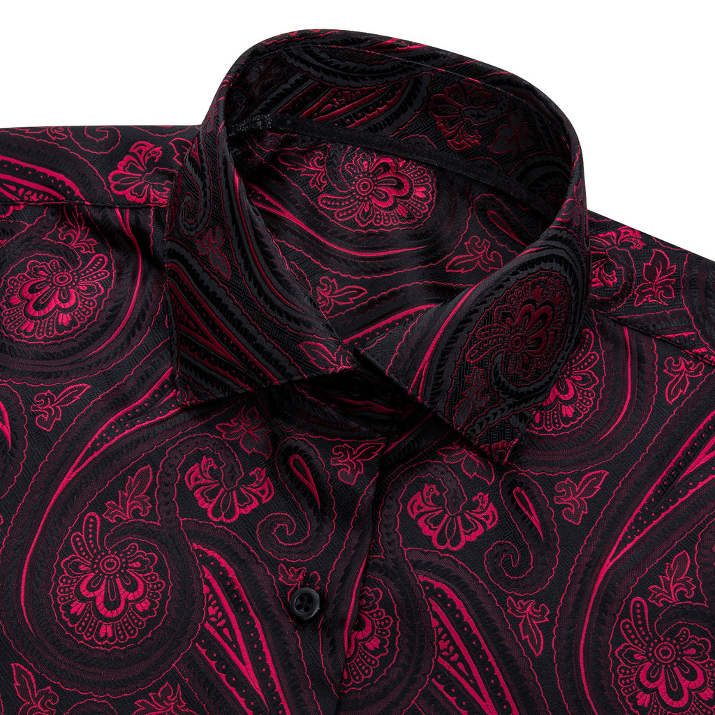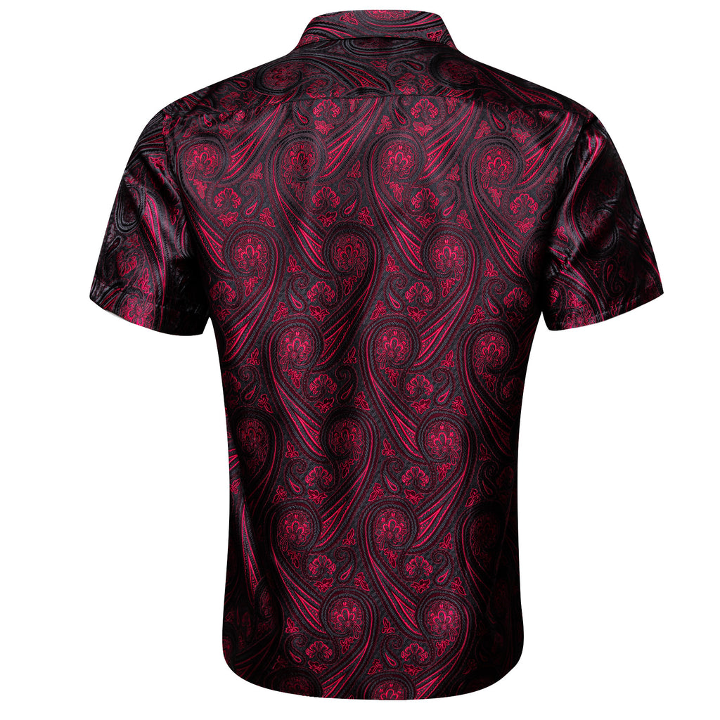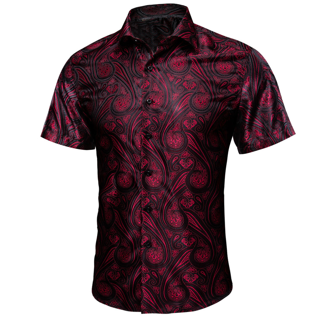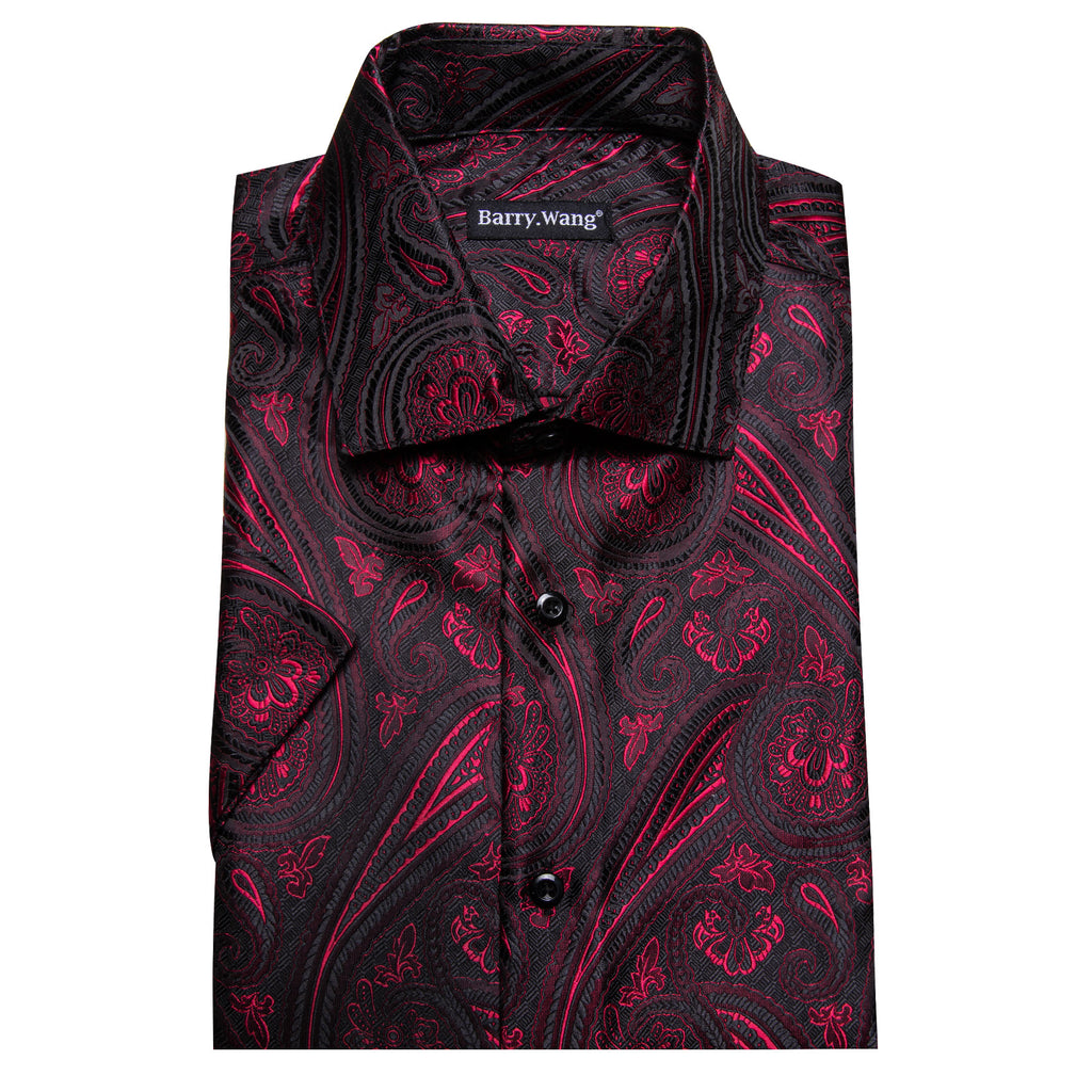 Barry. Wang Burgundy Black Paisley Jacquard Short Sleeve Button Up Shirt
