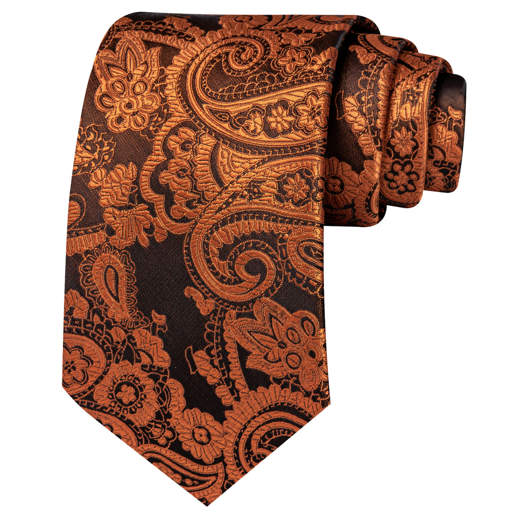 Barry. Wang Burnt Orange Black Paisley Tie Pocket Square Cufflinks Set Silk Mens Ties