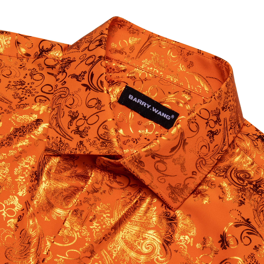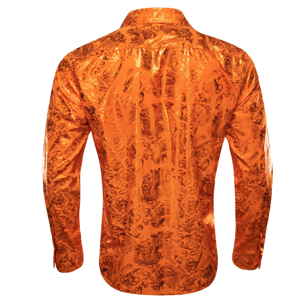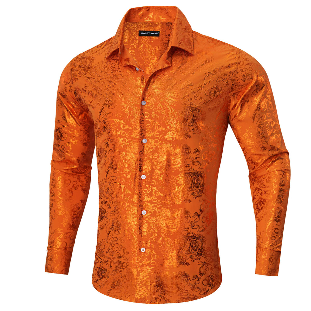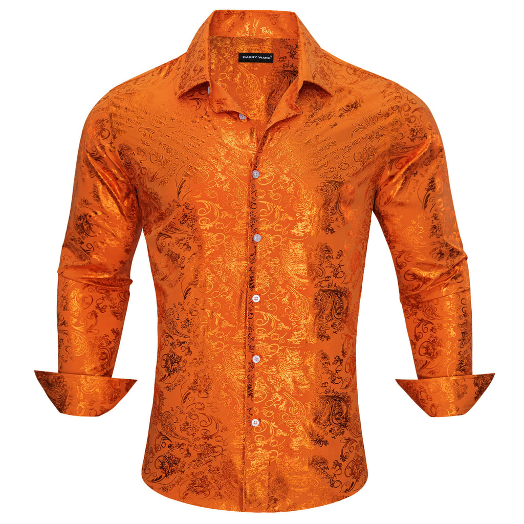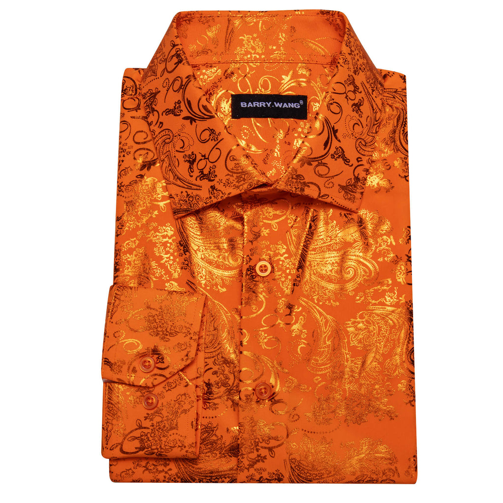 Barry. Wang Mens Western Dress Shirt Orange Paisley Button Down Silk Long Sleeve Shirt