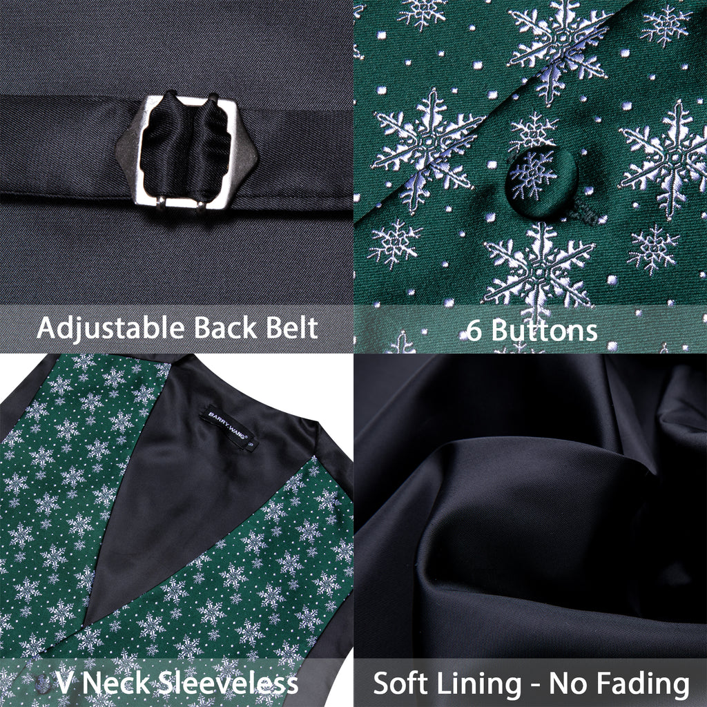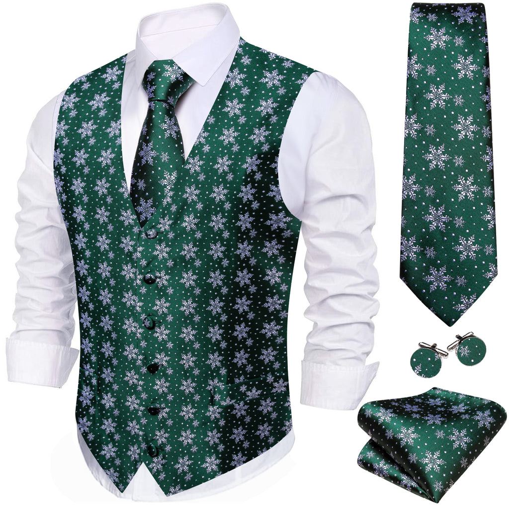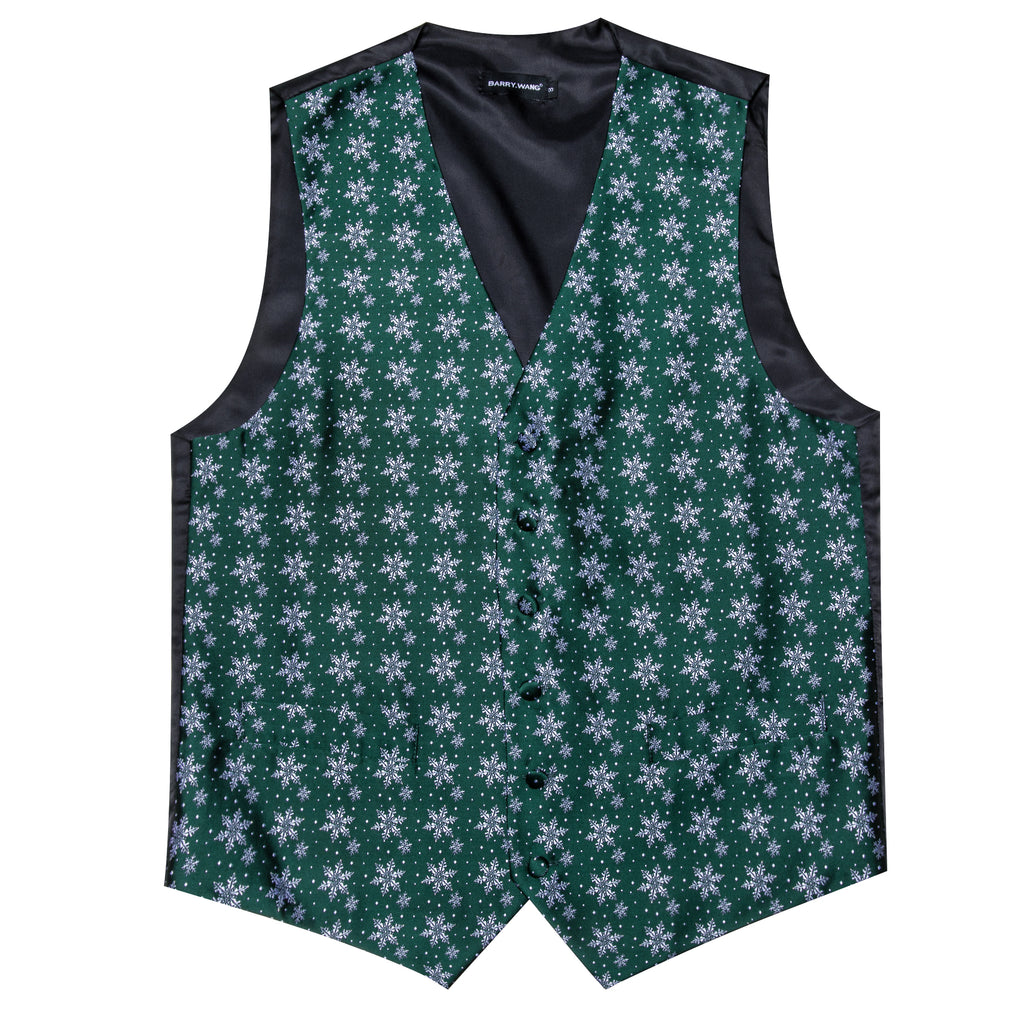 Barry. Wang Holiday Green Suit Vest Xmas Snowflake Dress Waistcoat Tie Hanky Cufflinks Set