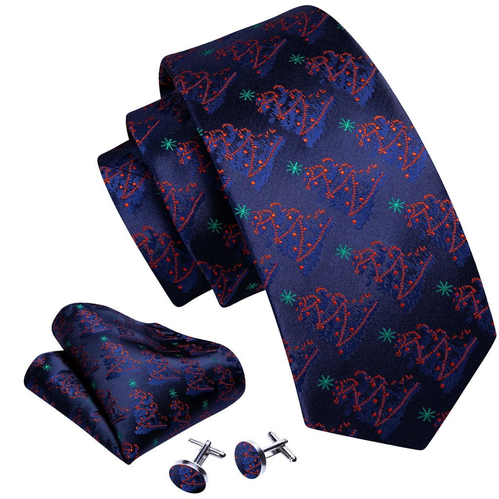 Barry. Wang Holiday Navy Blue Tie Mens Xmas Tree Necktie Pocket Square Cufflinks Set