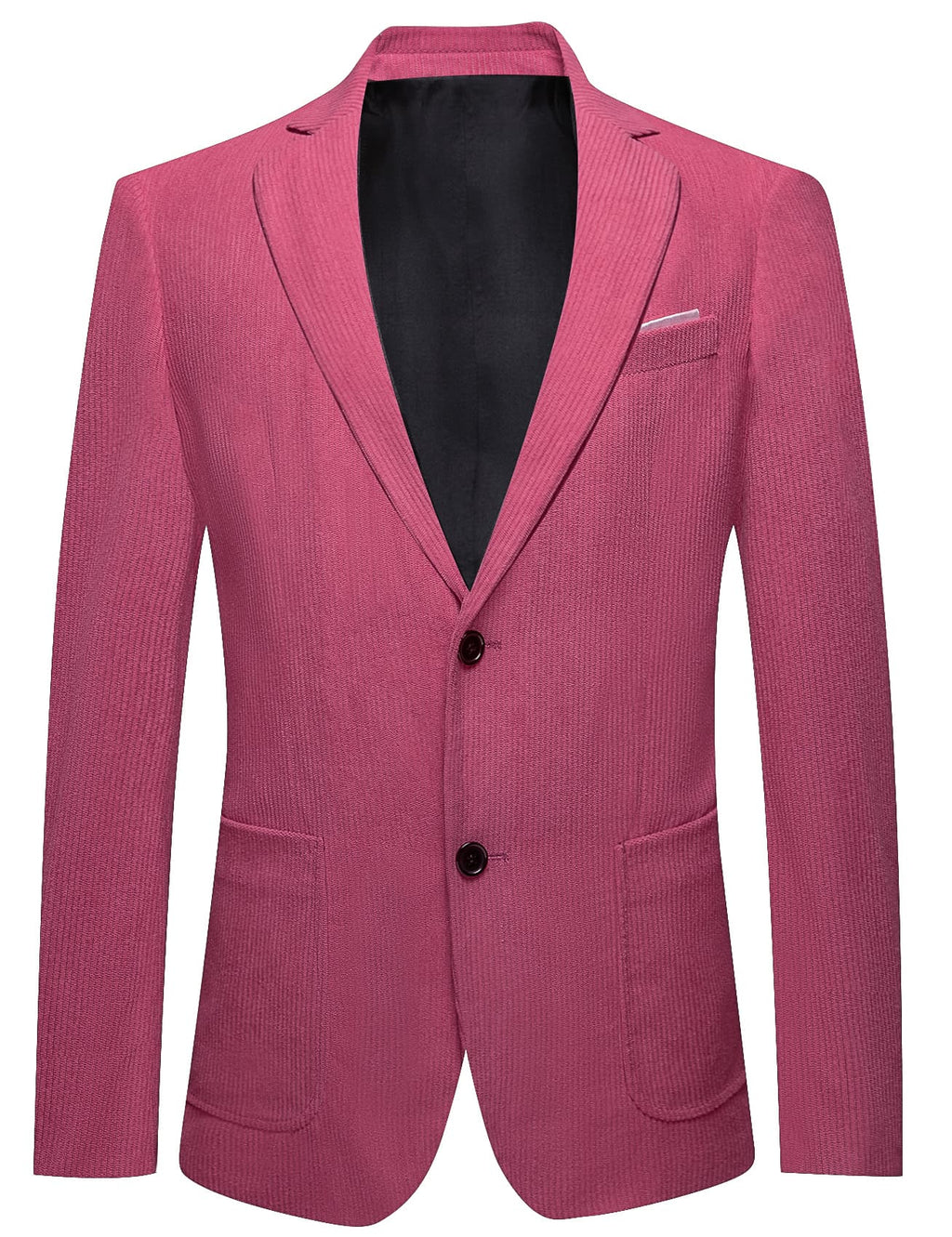 Barry. Wang Men's Corduroy Rose Pink Coat Notch Lapel Two Buttons Dress Business Dinner Blazer Suit