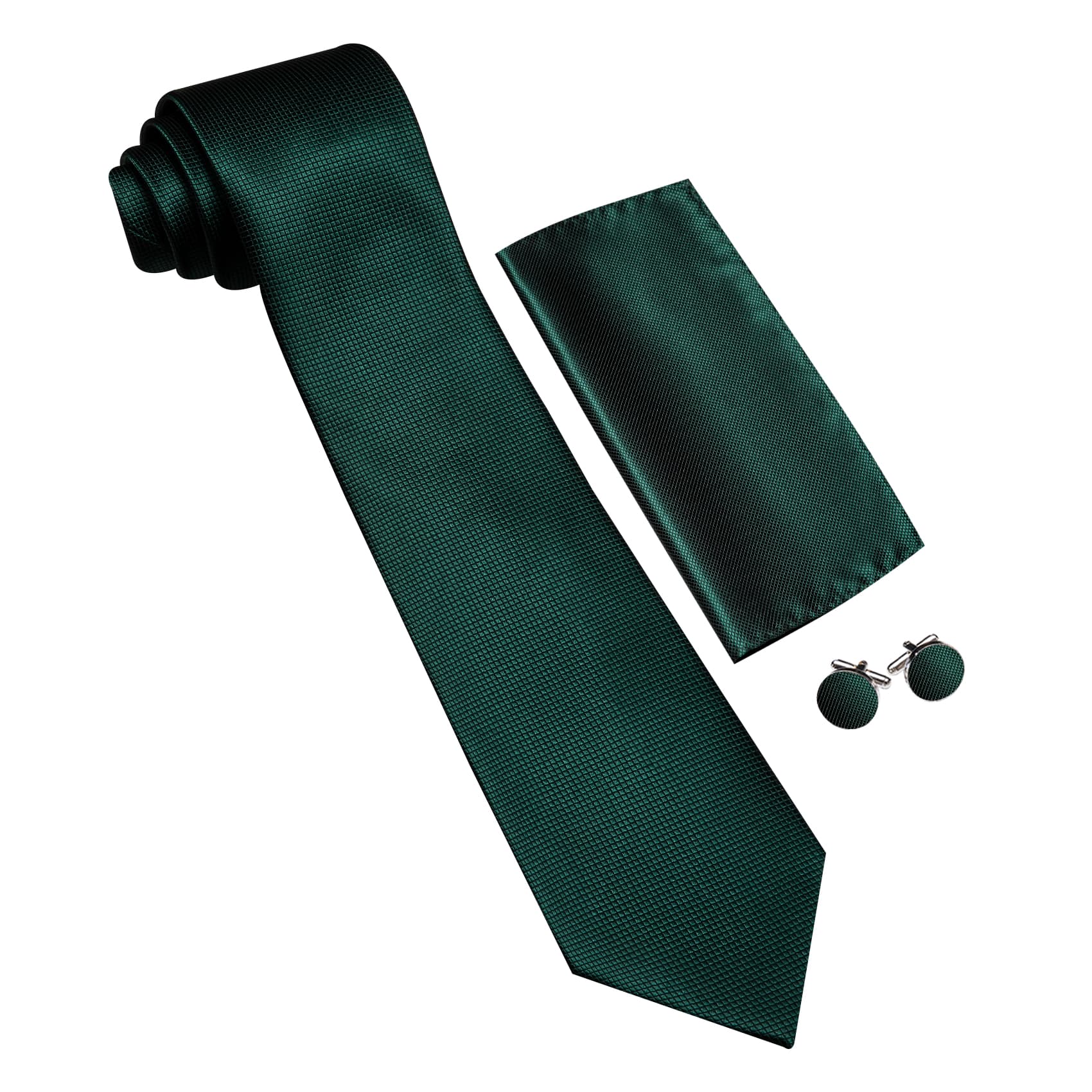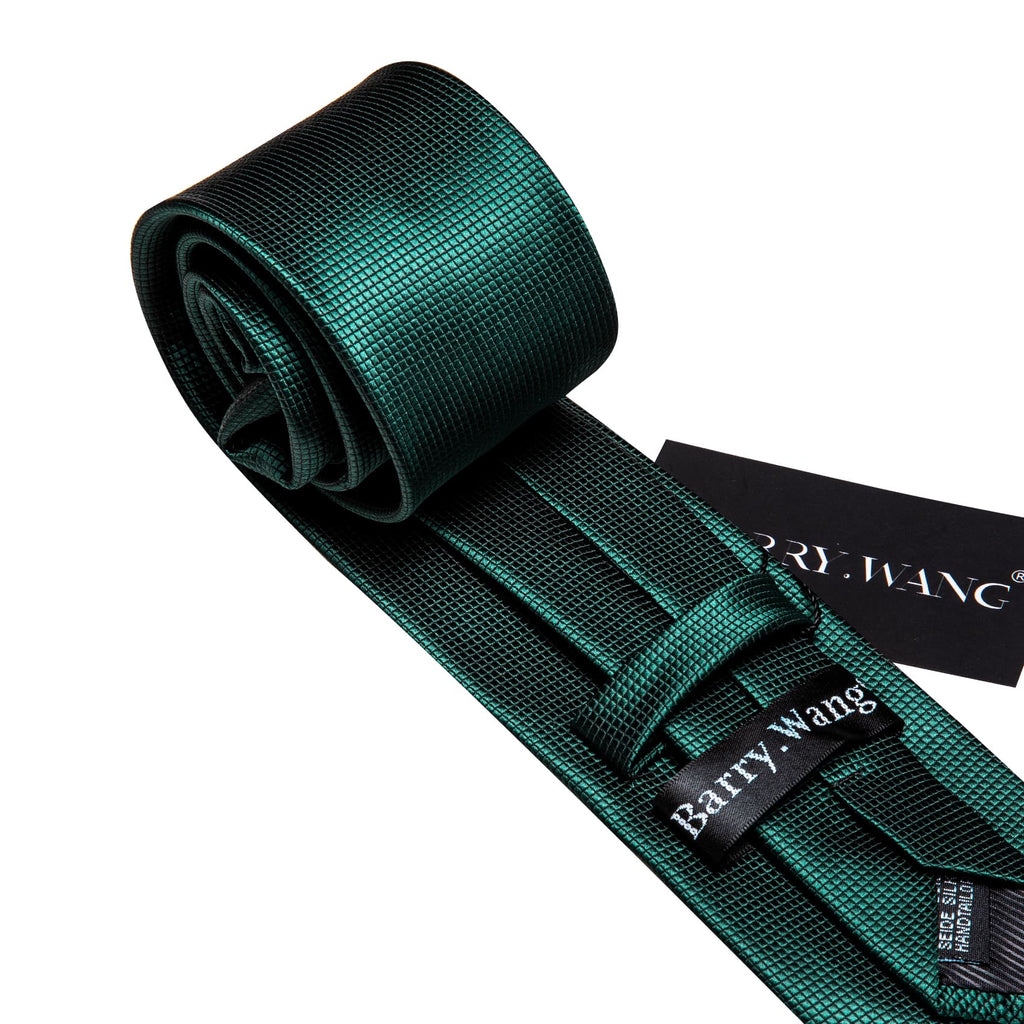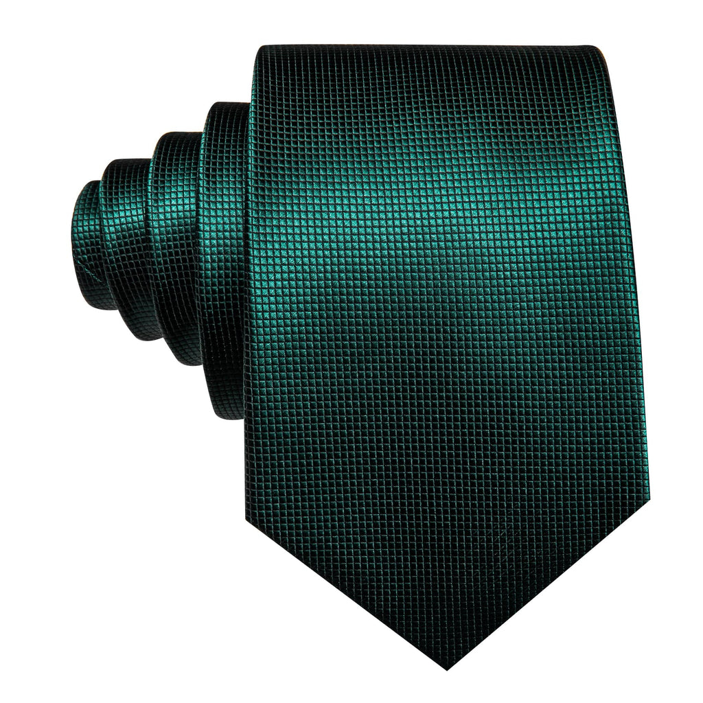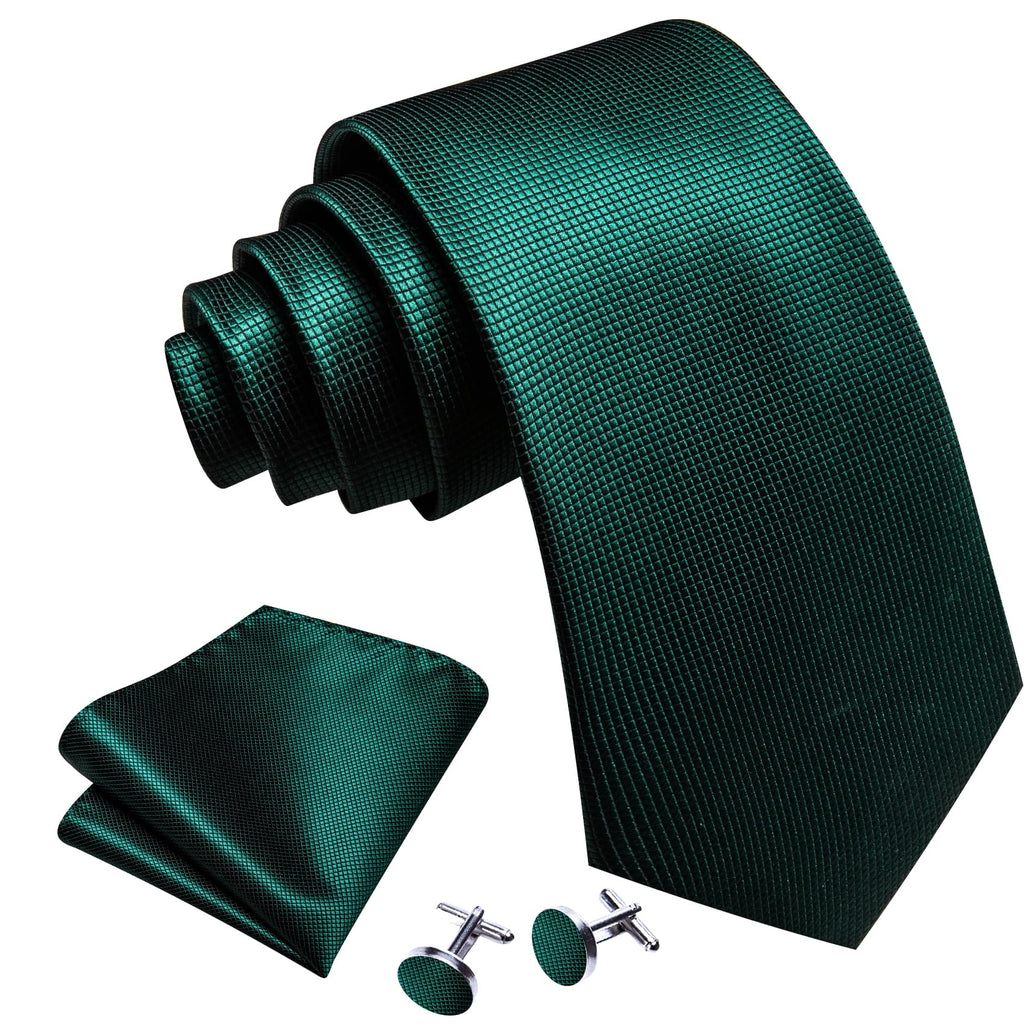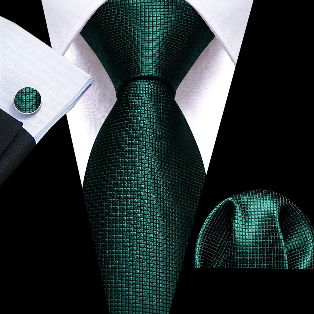 Barry. Wang Dark Green Tie Plaid Cufflinks and Pocket Square Set