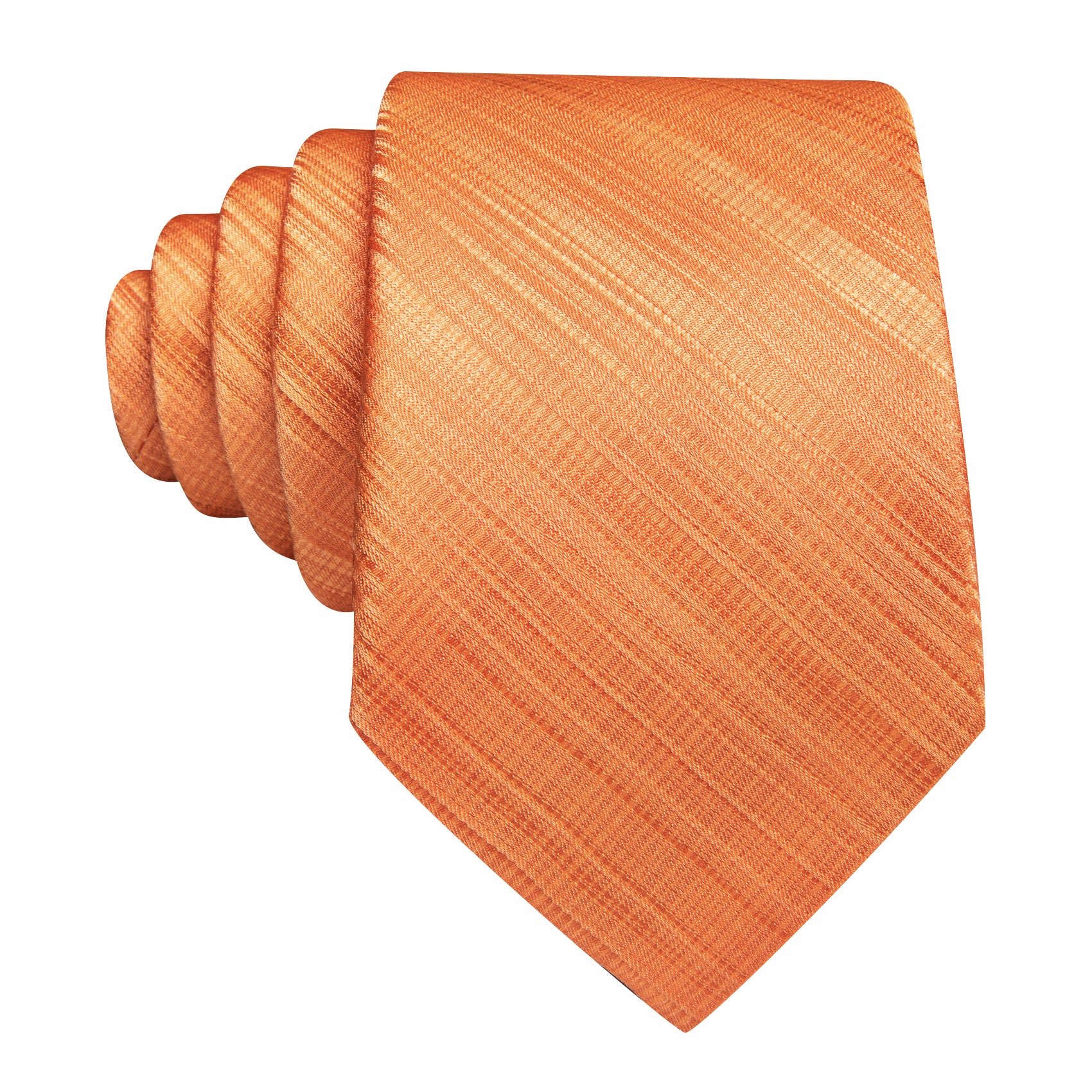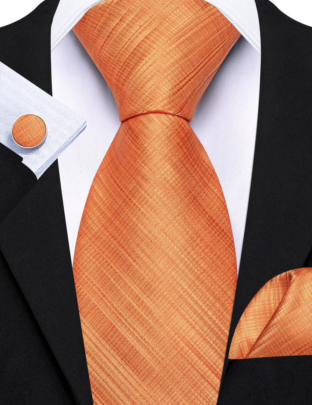 Barry. Wang Dark Orange Tie Solid Tie Pocket Square Cufflinks Set For Men