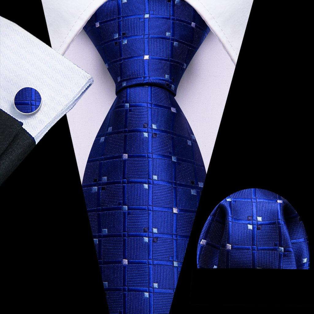 Barry. Wang Dark Pluple Tie Plaid Silk Tie Pocket Square Cufflinks Set for Men