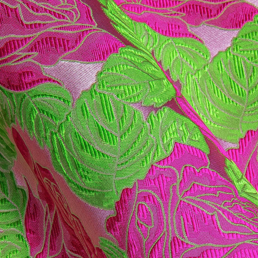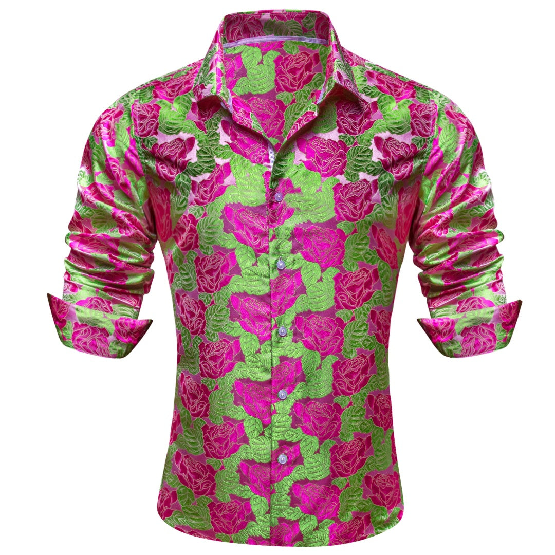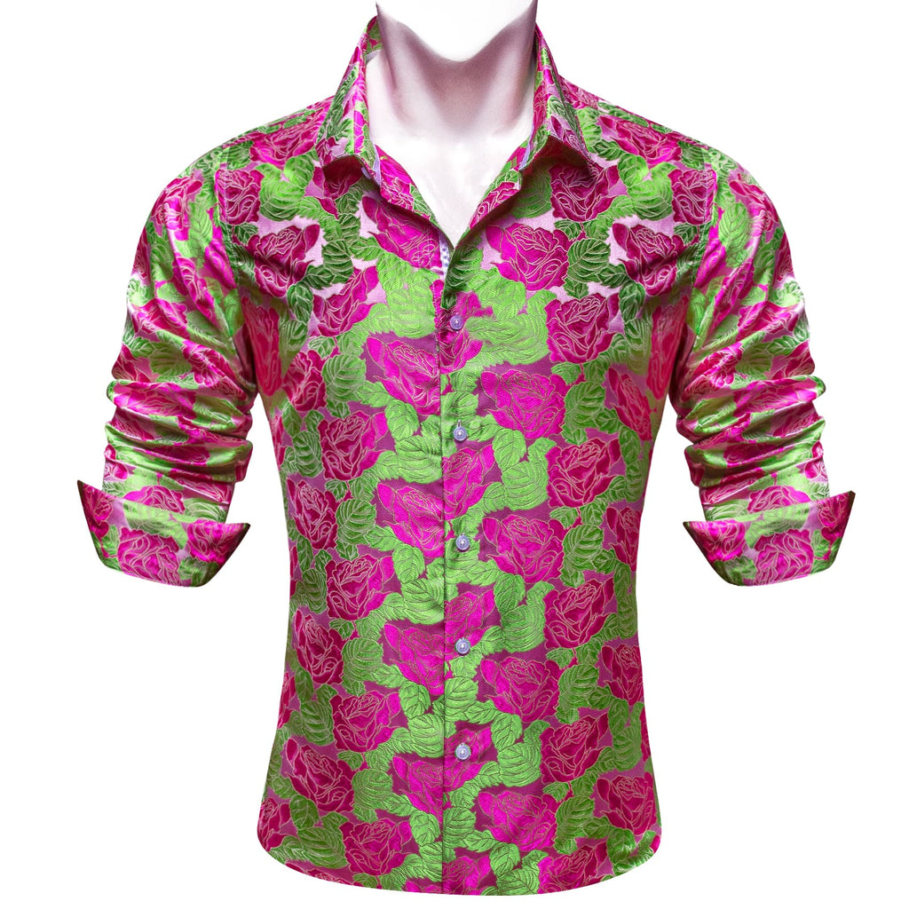 Barry. Wang Hot Pink Floral Dress Shirt Mens Green 70s Disco Button Down Long Sleeve Shirt