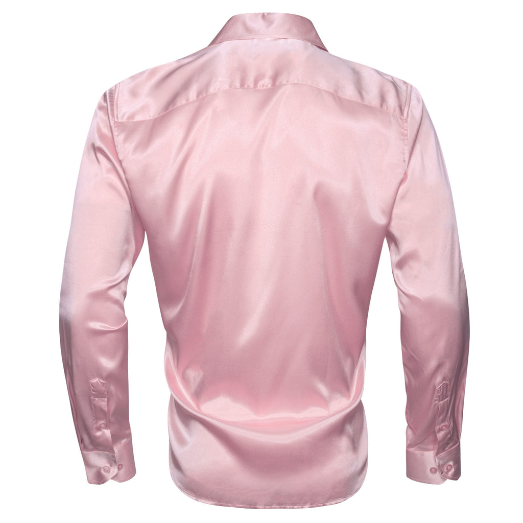 Barry. Wang Dusty Rosepink Satin Mens Long Sleeve Shirt Solid Collar Formal Shirt
