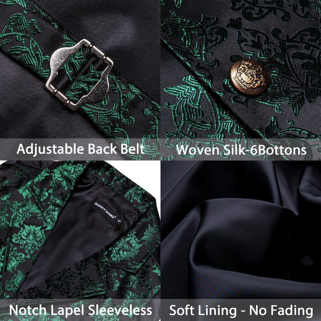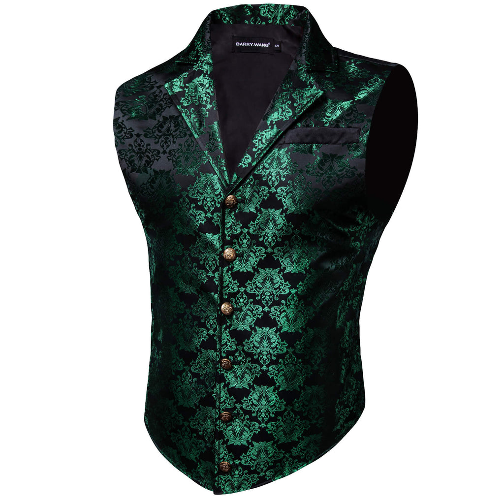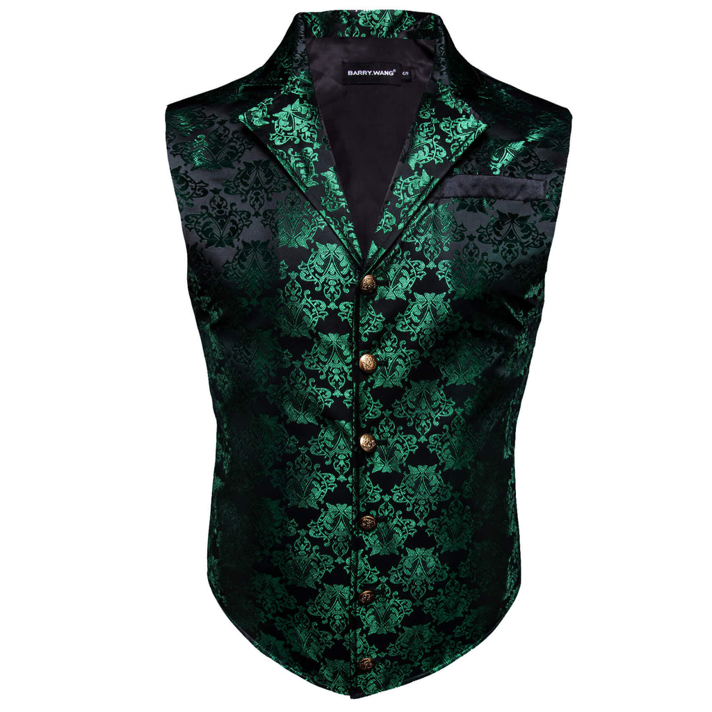 Barry. Wang Mens Paisley Victorian Vest Hunter Green Tailored Collar Waistcoat for Tuxedo