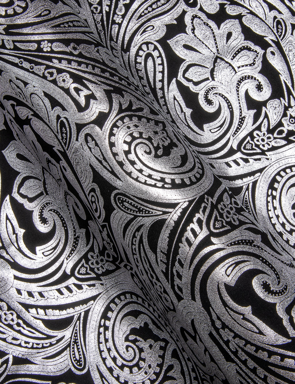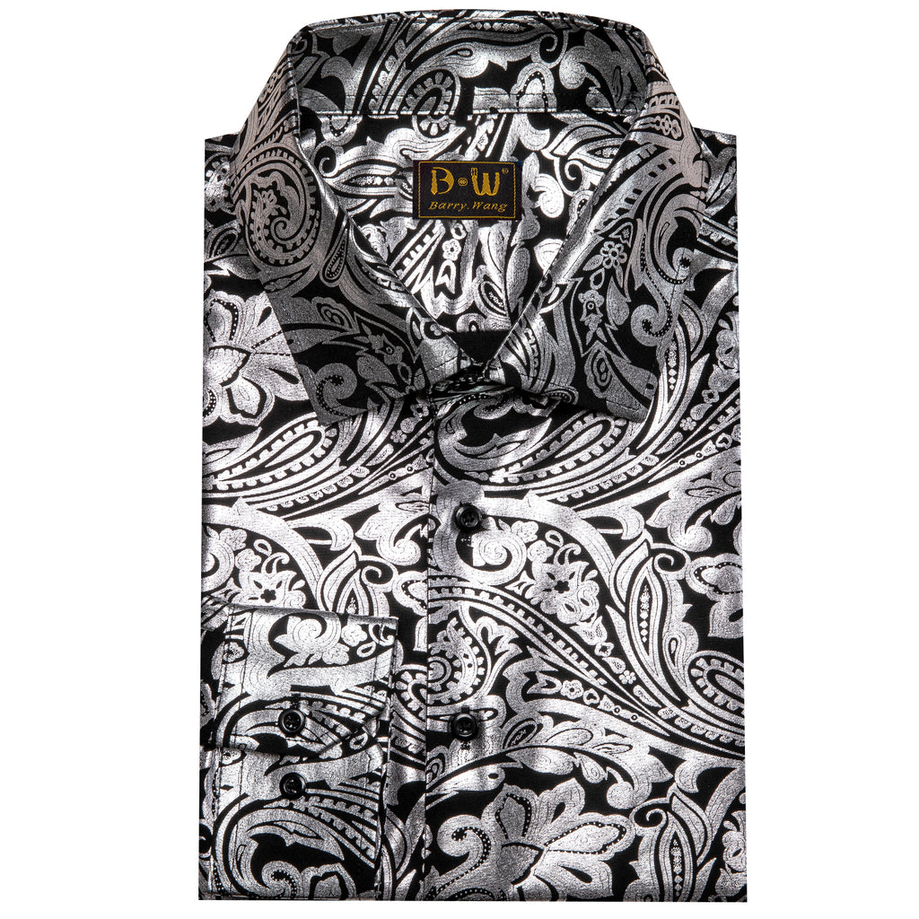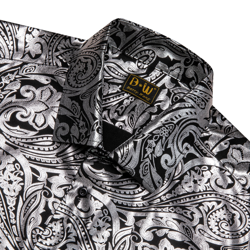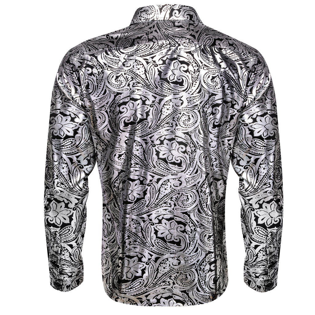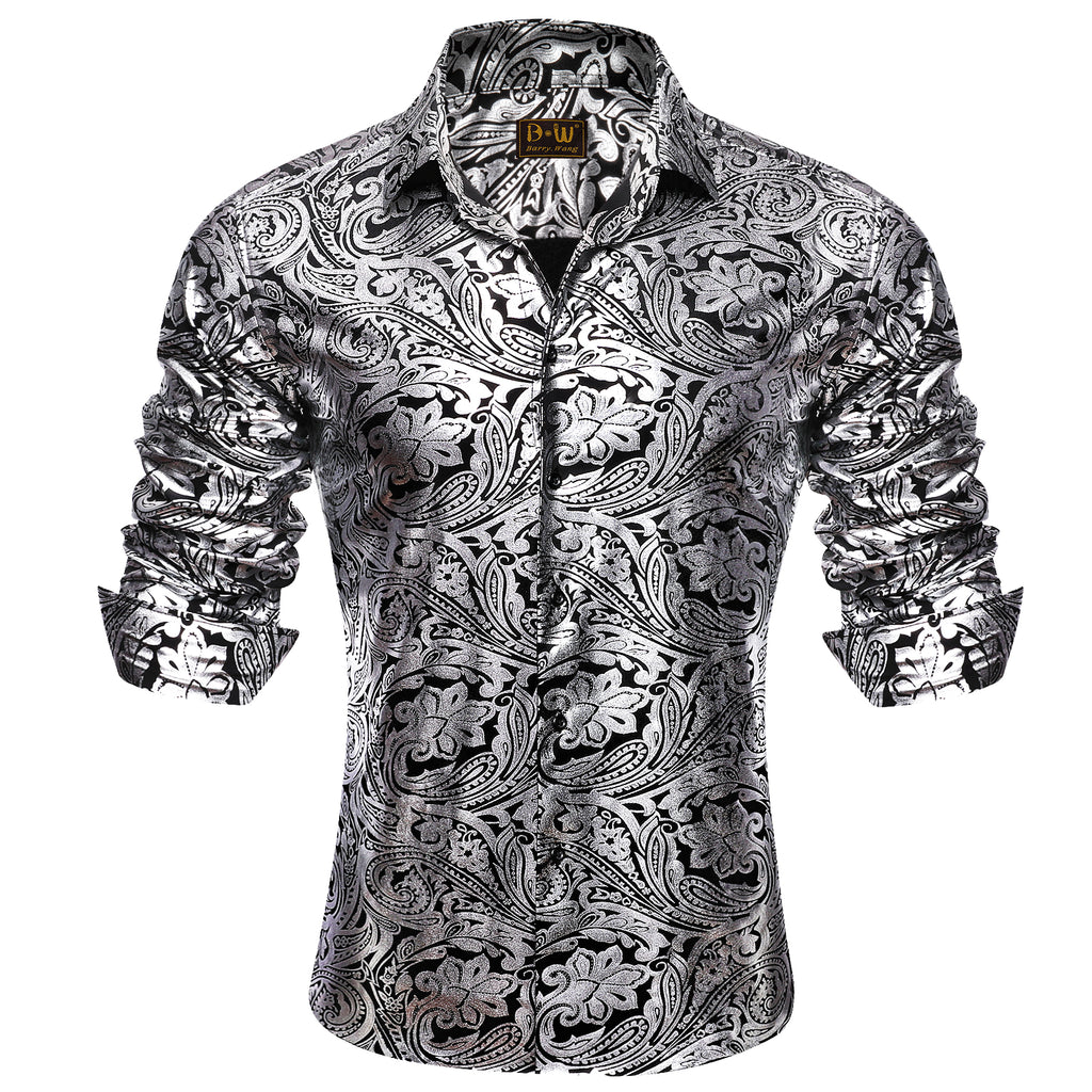 Barry. Wang Silver Paisley Long Sleeve Button Down Dress Shirt for Men