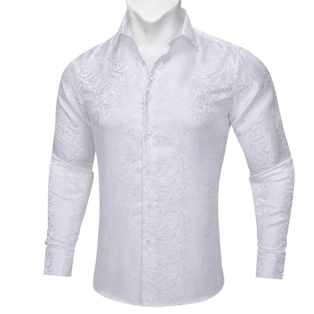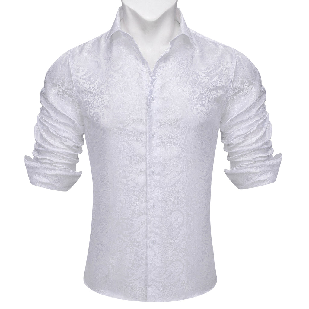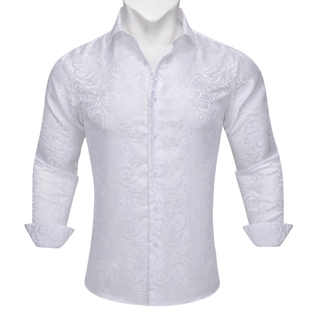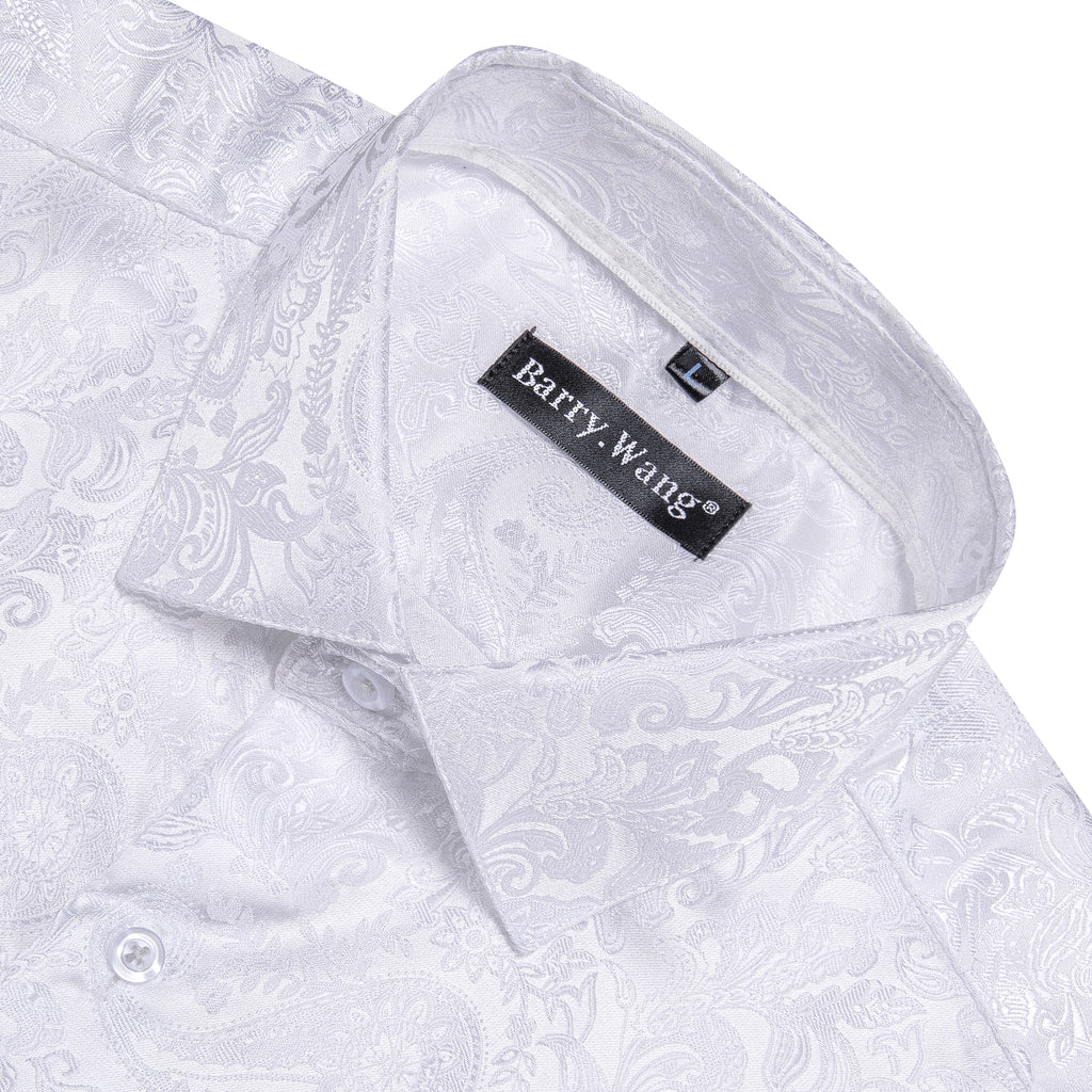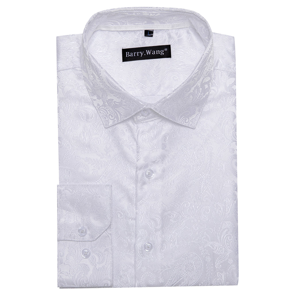 Barry. Wang Mens White Dress Shirt Paisley Wrinkle Free Long Sleeve Button Down Shirt