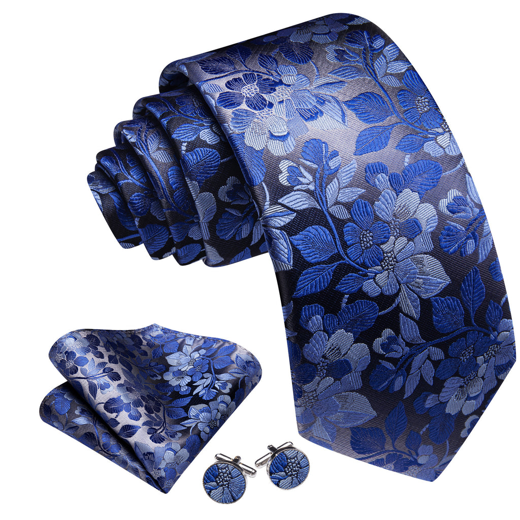 Barry. Wang Floral Necktie Royal Blue Silk Tie Pocket Square Cufflinks Set