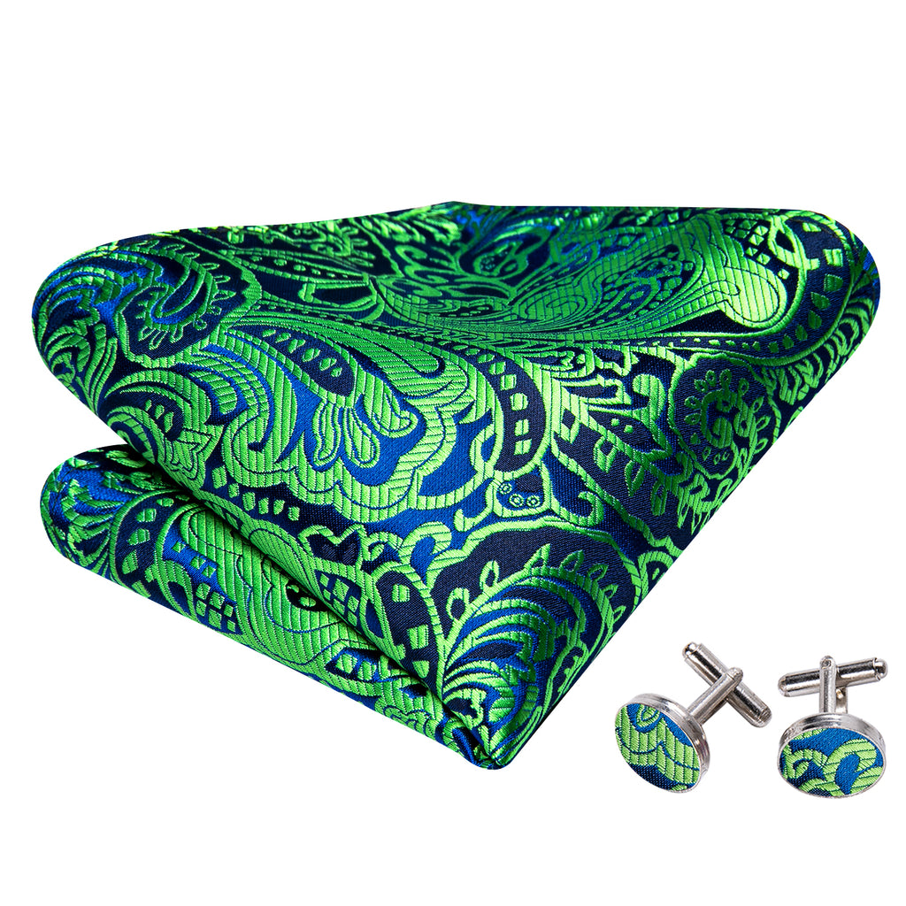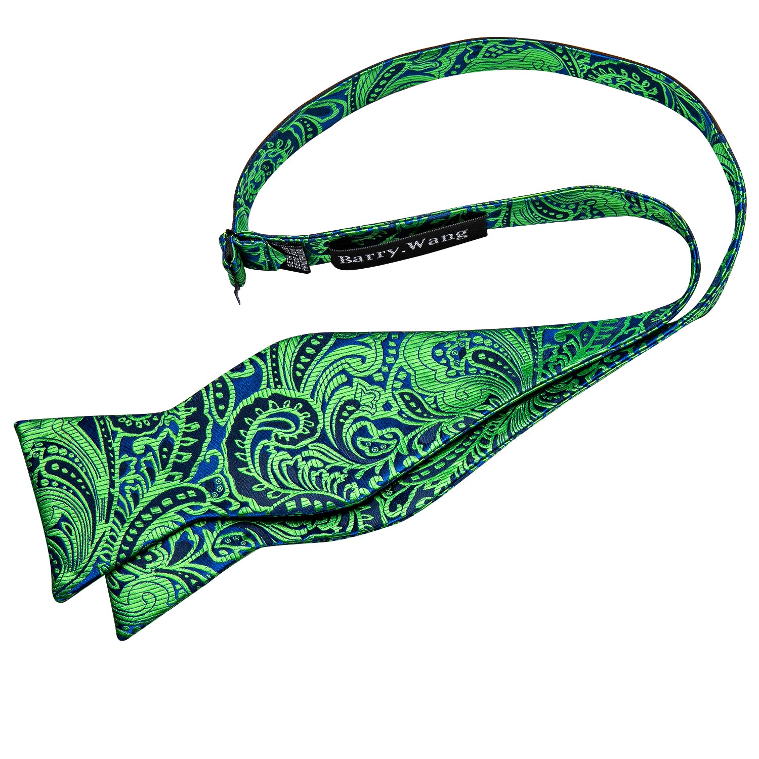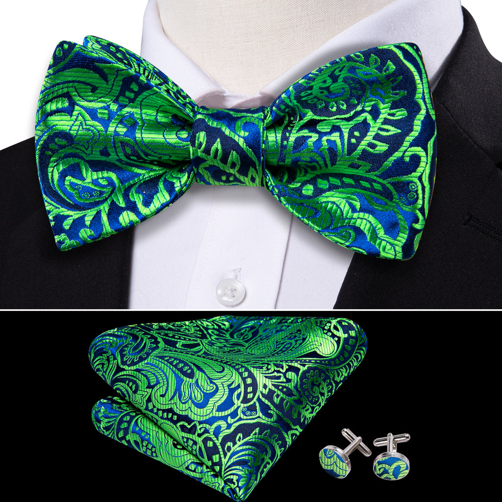 Barry. Wang Emerald Green Bow Tie Set Floral Self-tied Silk Bow Tie Pocket Square Cufflinks Set