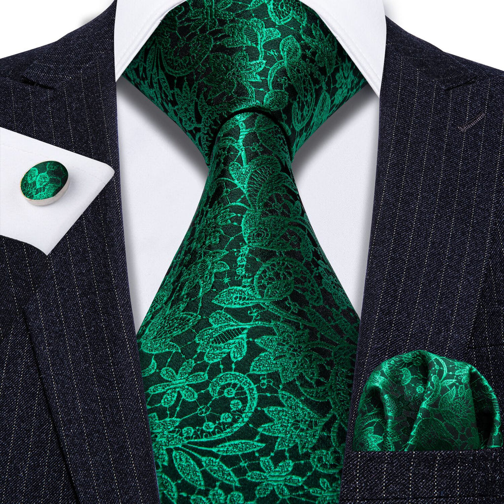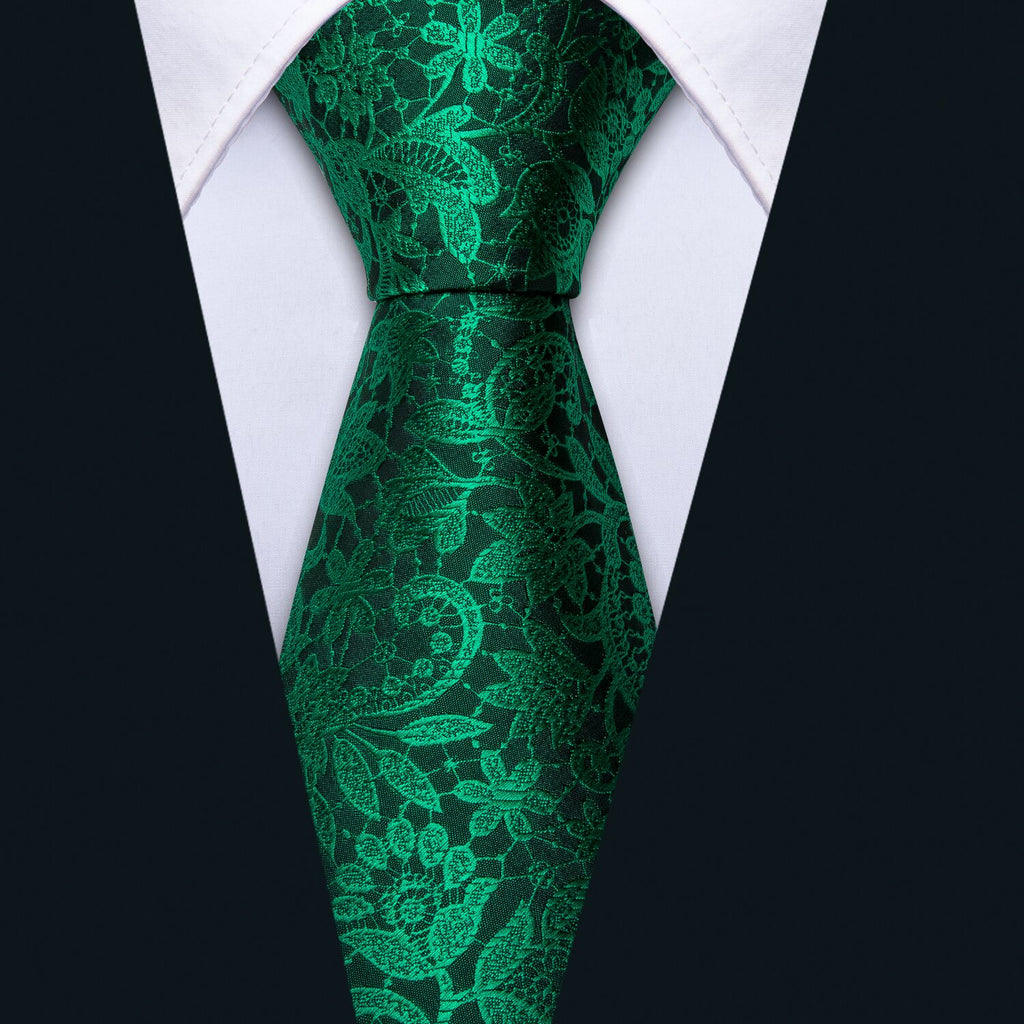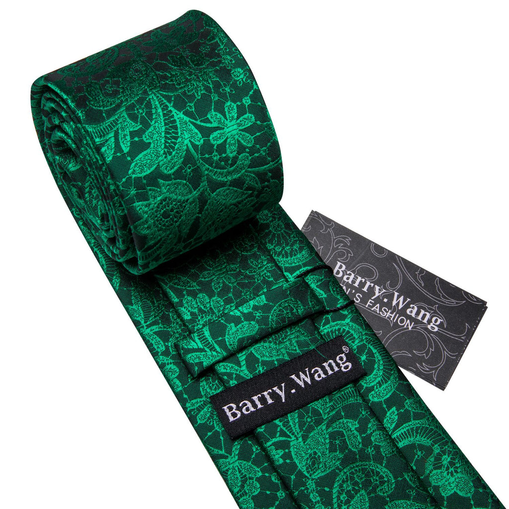 Barry. Wang Floral Tie Fluorescent Green Paisley Silk Tie Hanky Cufflinks Set
