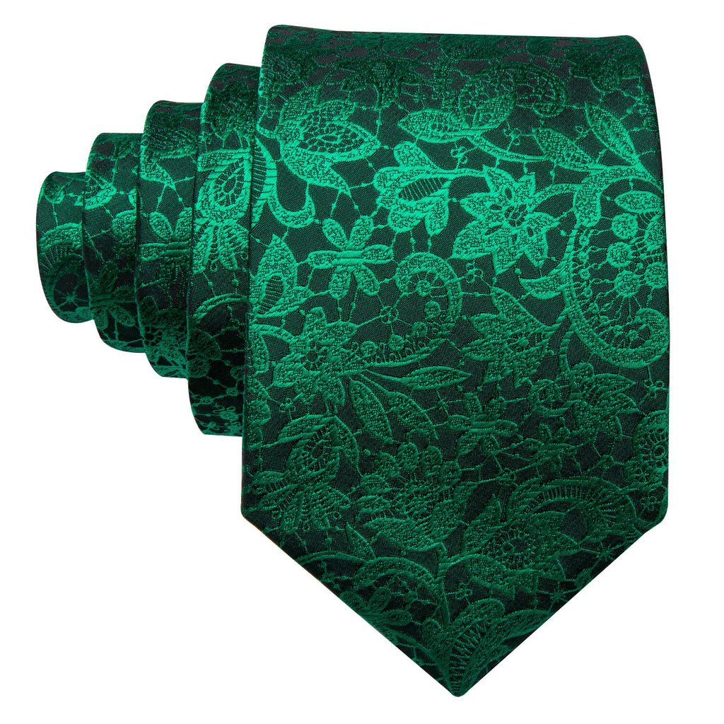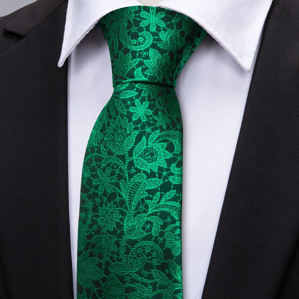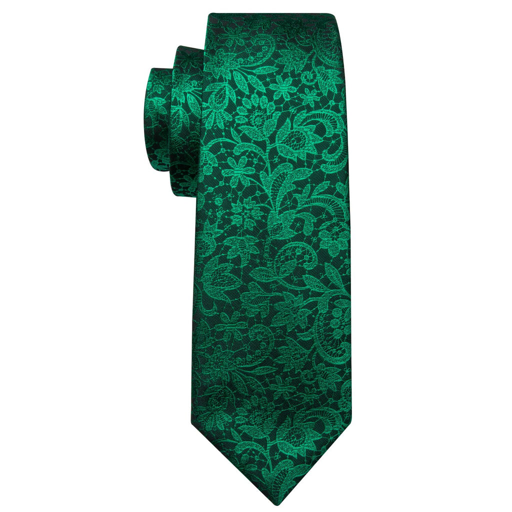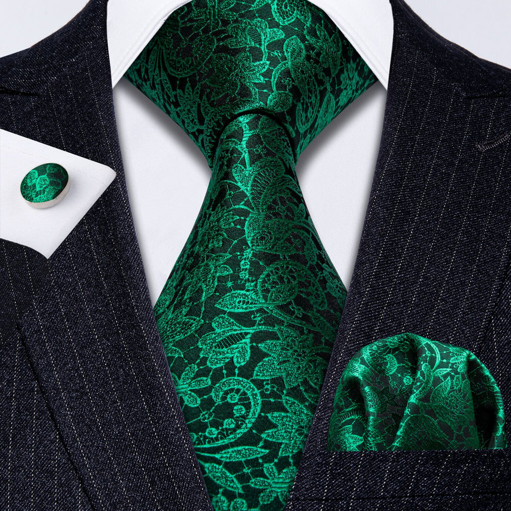 Barry. Wang Floral Tie Fluorescent Green Paisley Silk Tie Hanky Cufflinks Set