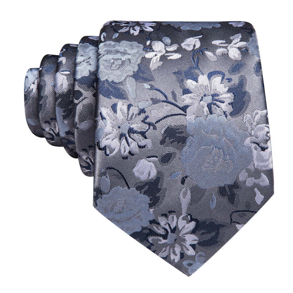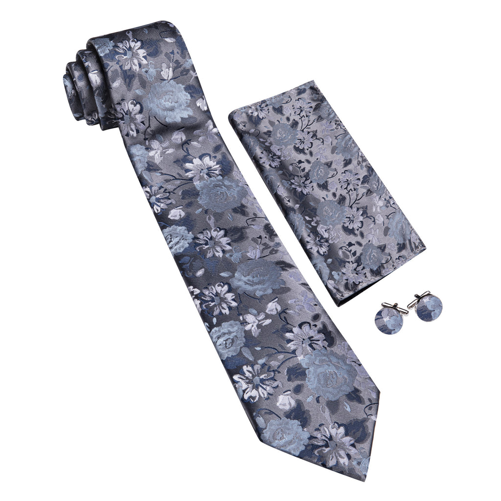 Barry. Wang Floral Tie Ice Blue Silk Necktie Hanky Cufflinks Set