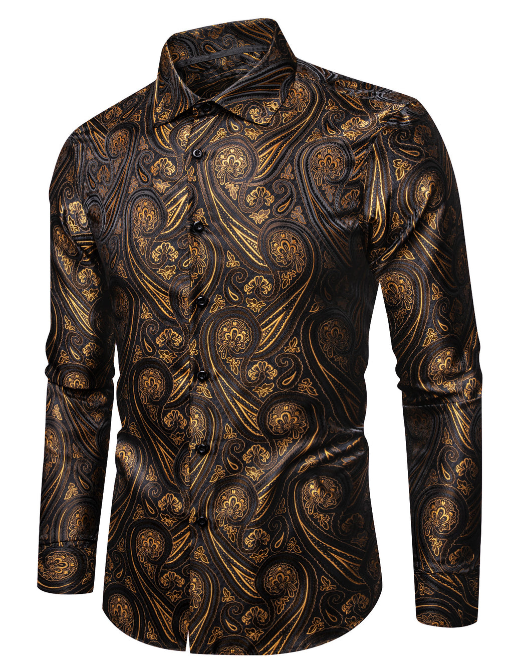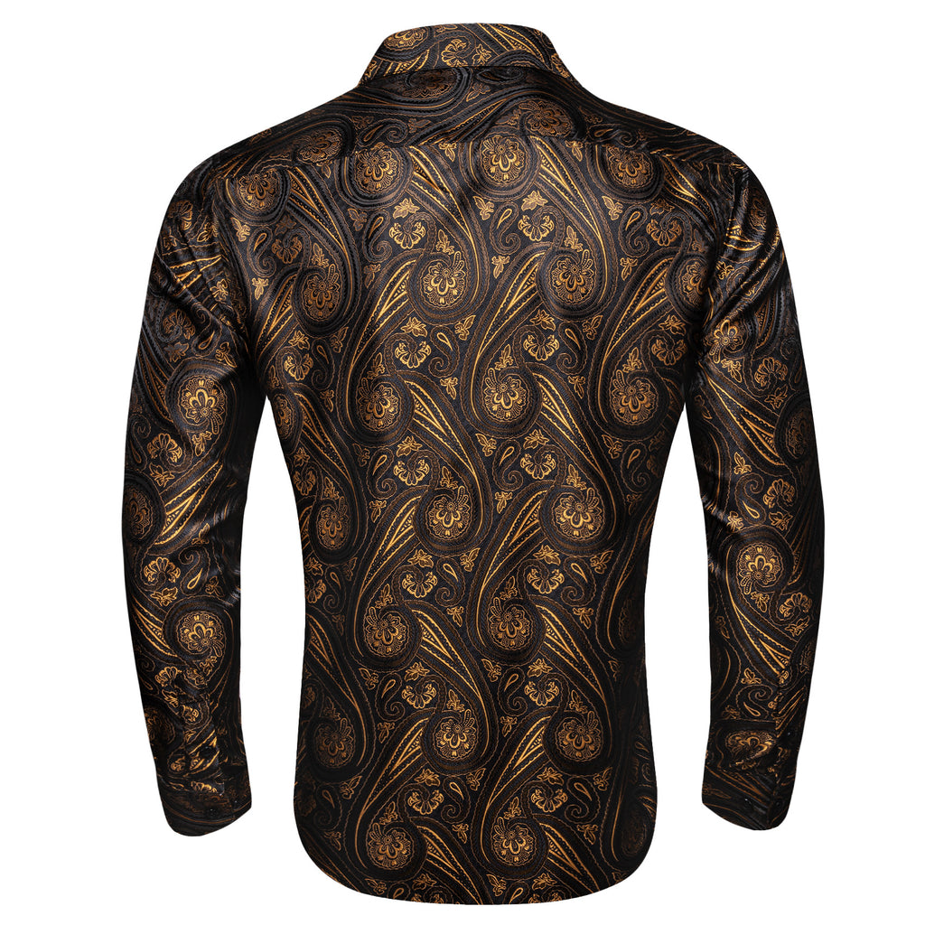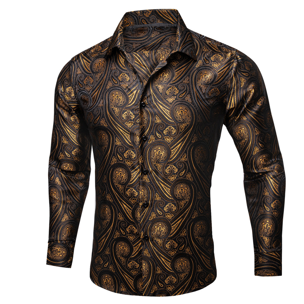 Barry. Wang Gold Casual Shirt Mens Paisley Long Sleeve Button Down Shirt