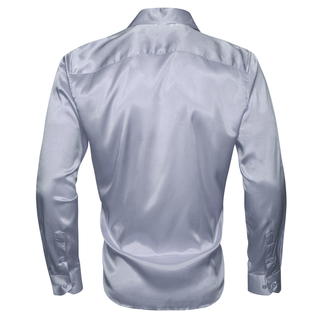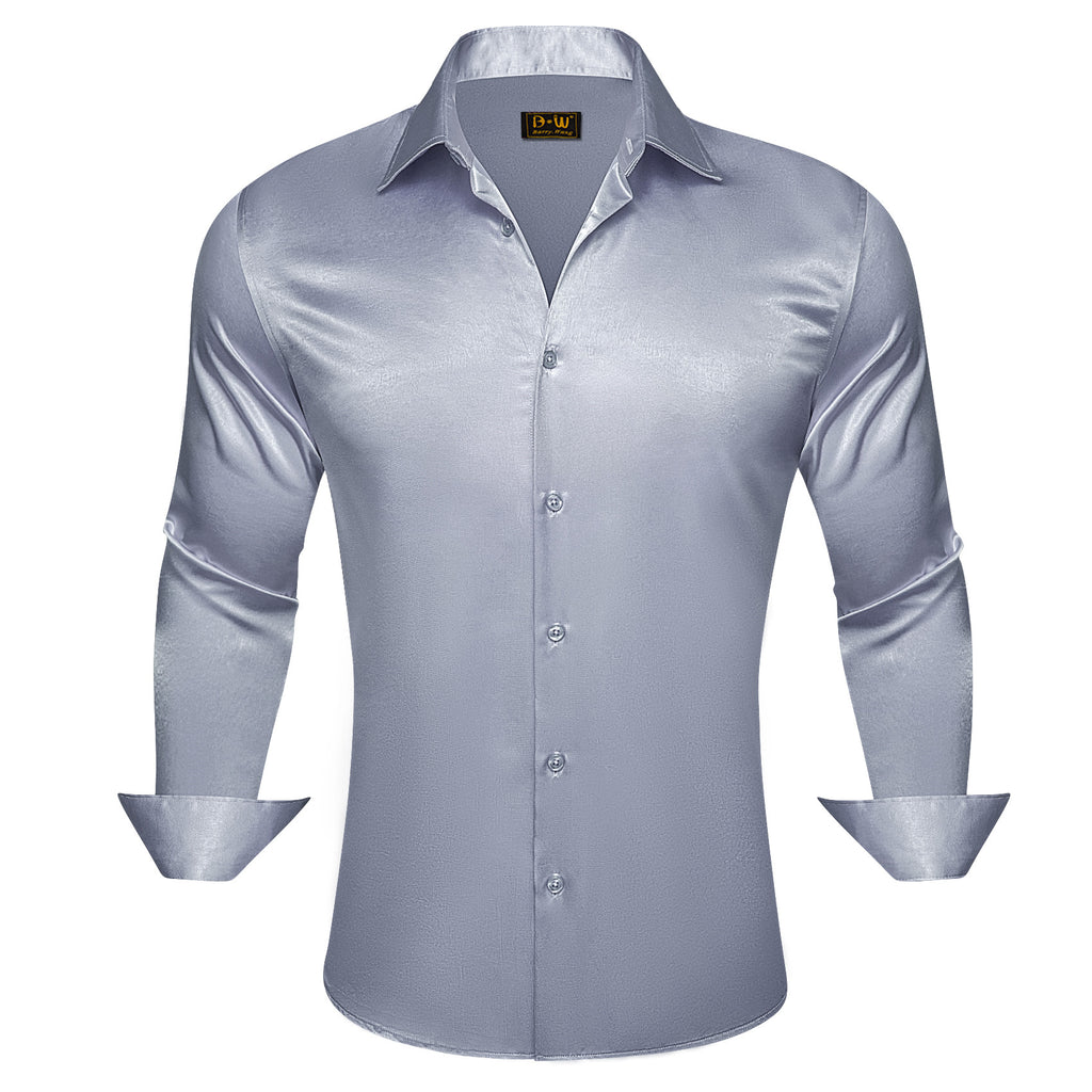 Barry. Wang Grey Satin Mens Dress Shirts Long Sleeve Solid Formal Shirt