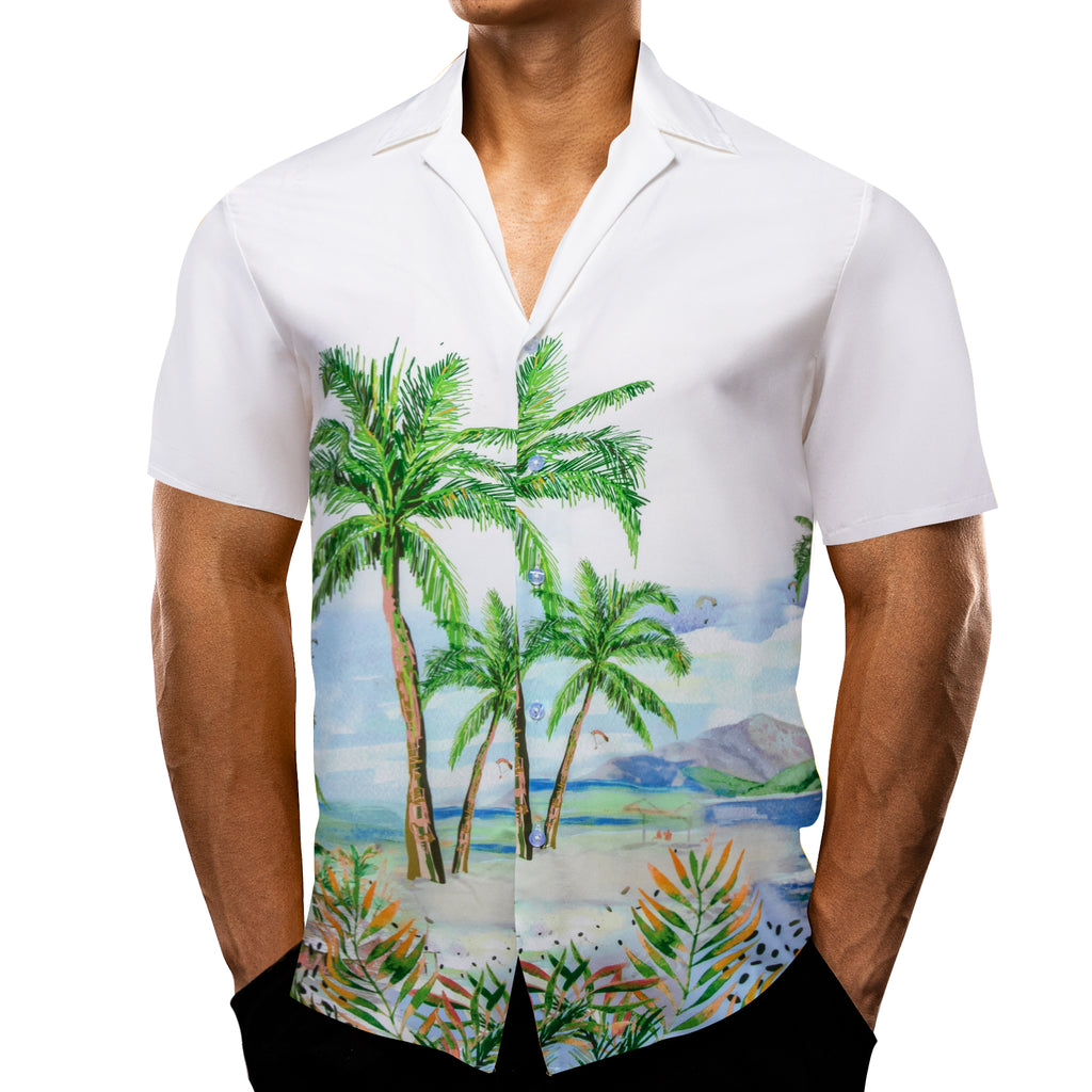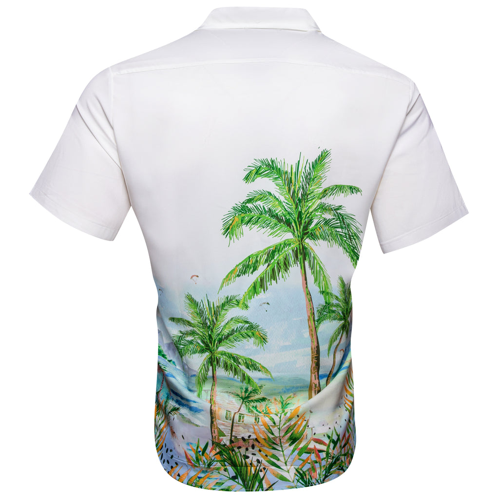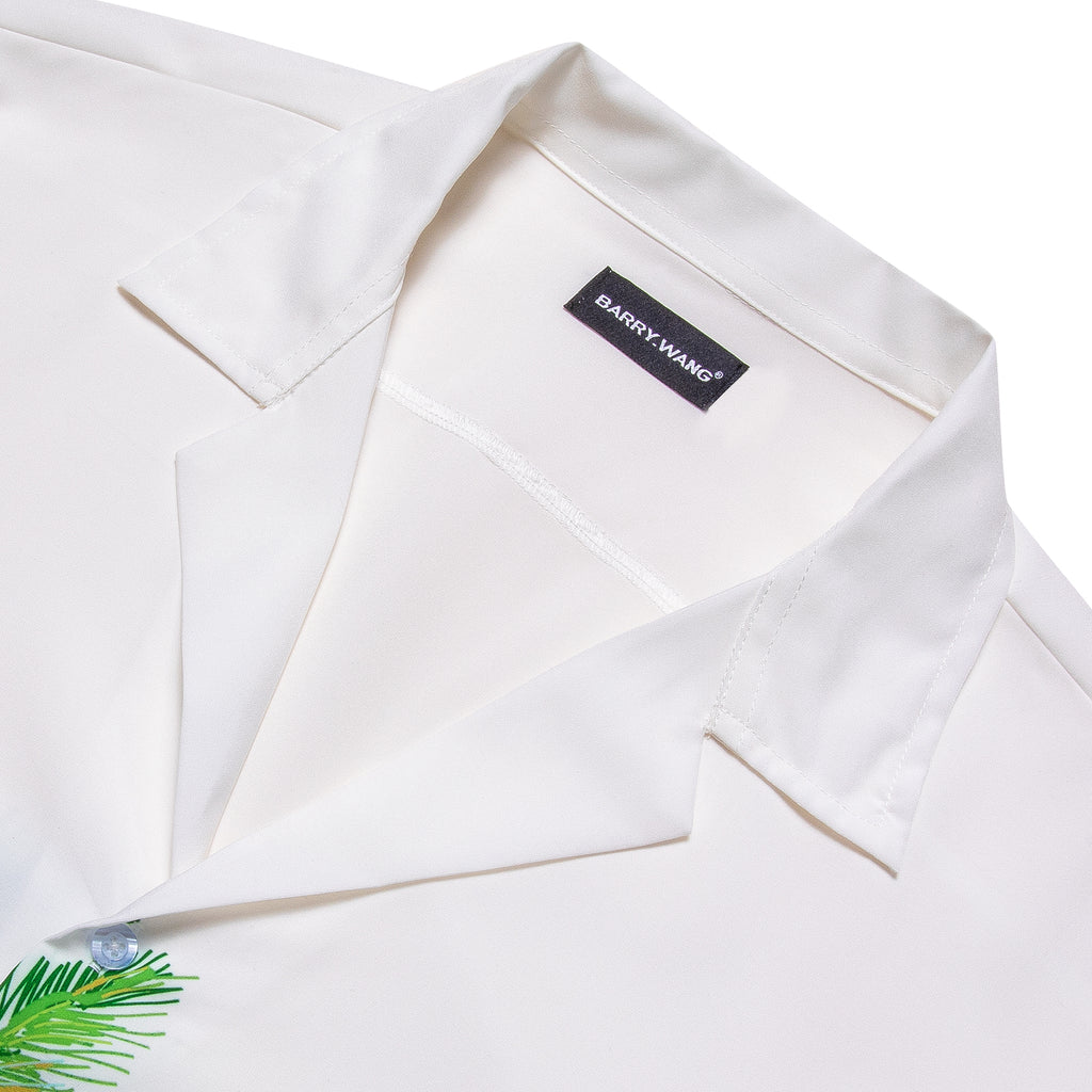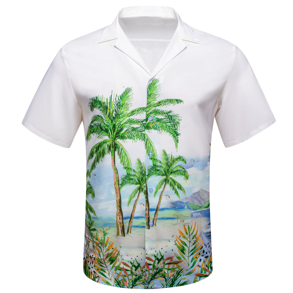 Barry. Wang Hawaiian Shirts Beach Coconut Trees Mens Printed White Shirts