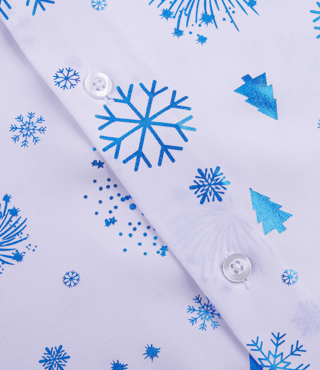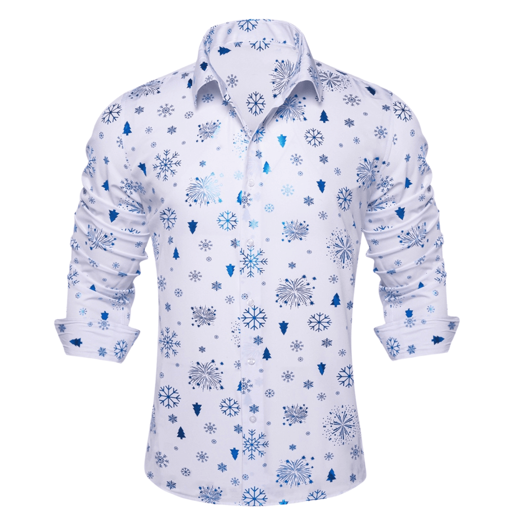 Barry. Wang Holiday White Shirt Sky Blue Snowflake Pattern Long Sleeve Shirt