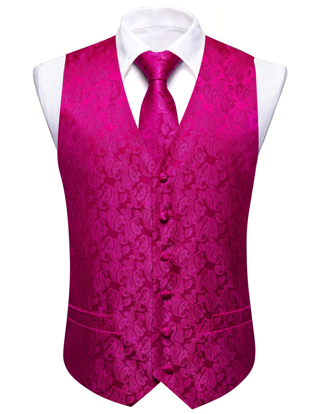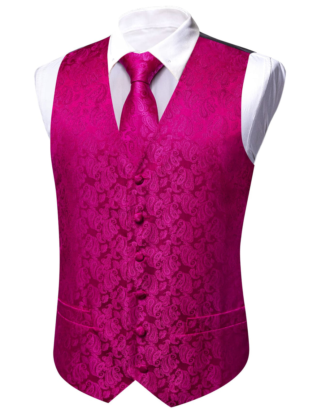 Barry. Wang Mens Silk Hot Pink Vest Paisley Wedding Vest Tie Hanky Cufflinks Set