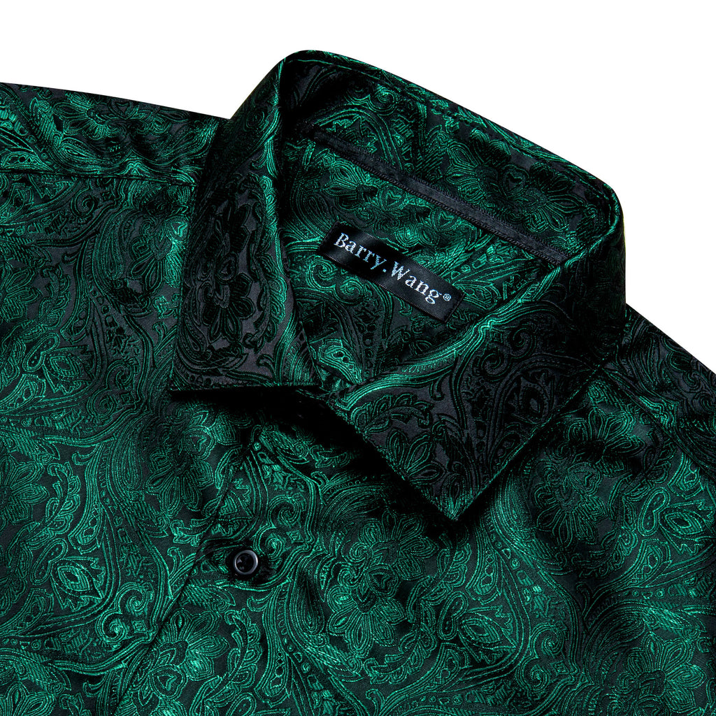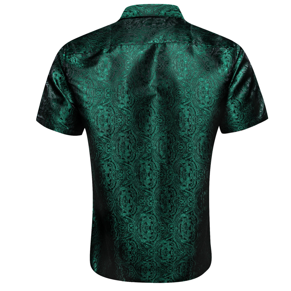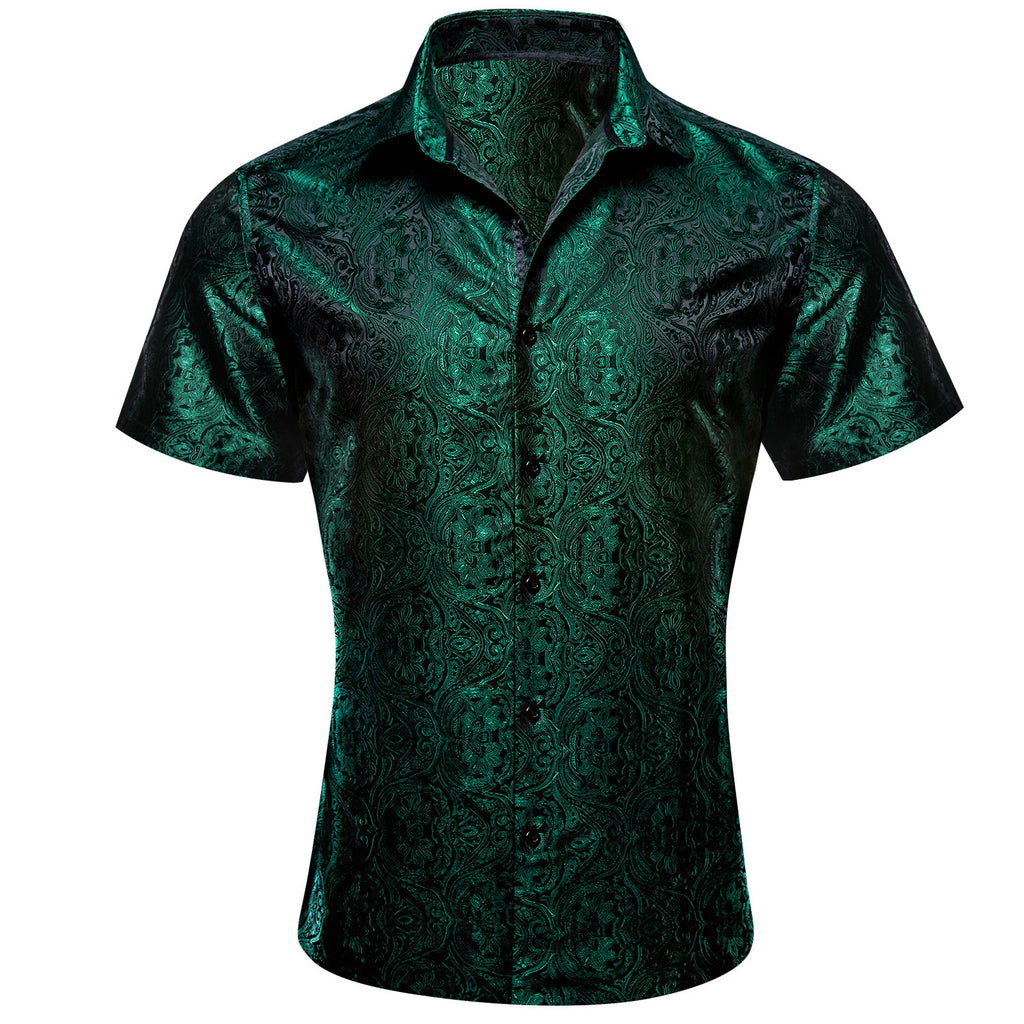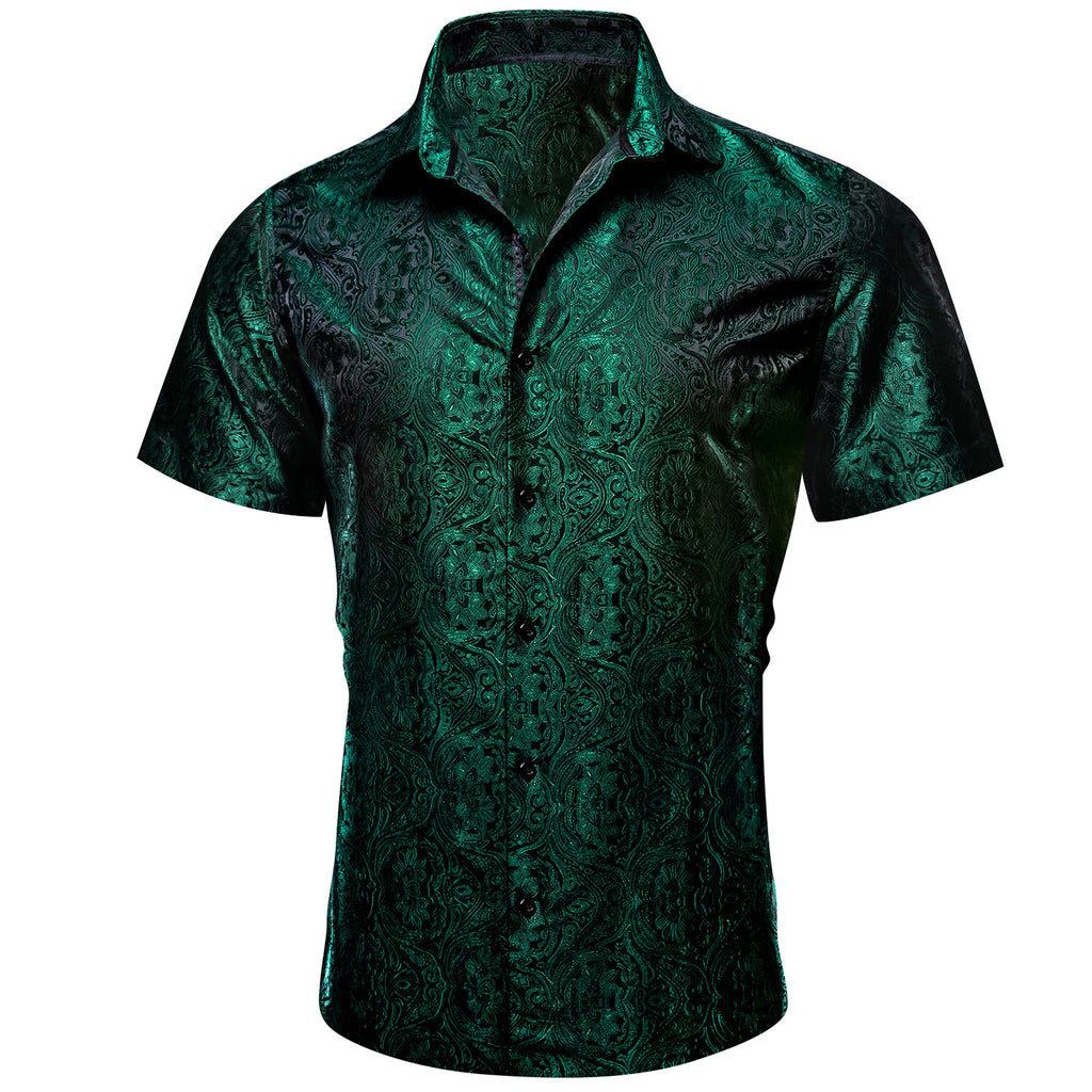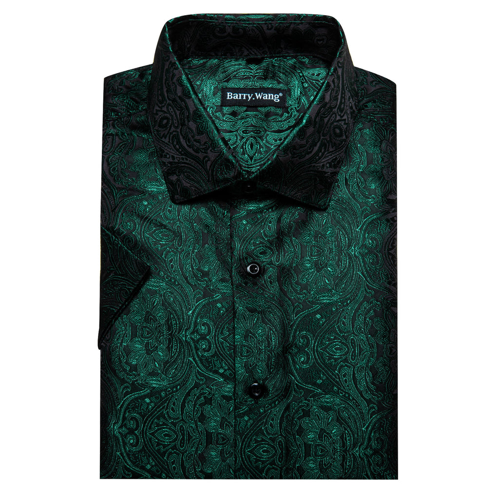 Barry. Wang Hunter Green Floral Jacquard Short Sleeve Button Up Shirt