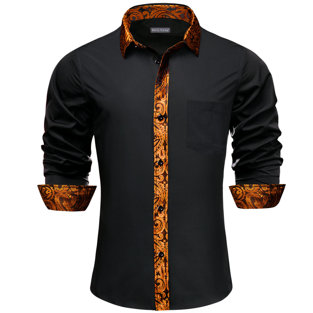 Barry. Wang Mens Black Orange Splicing Shirt Long Sleeve Formal Shirt for Wedding