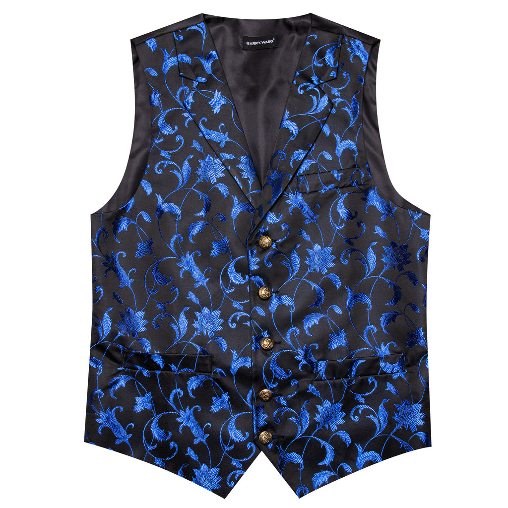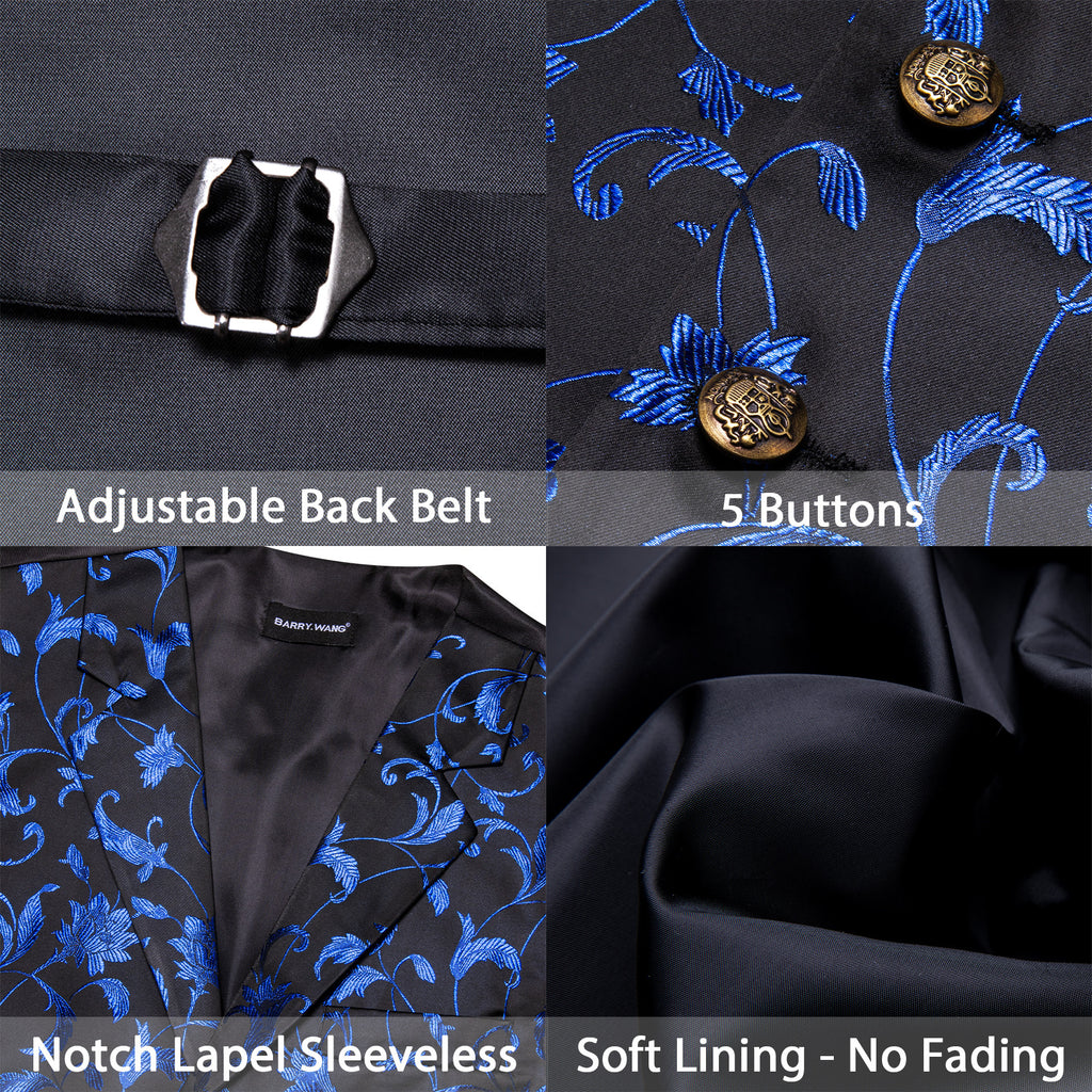 Barry. Wang Mens Blue Floral Vest Suit 4PCS Silk Vest Bowtie Hanky Cufflinks Set