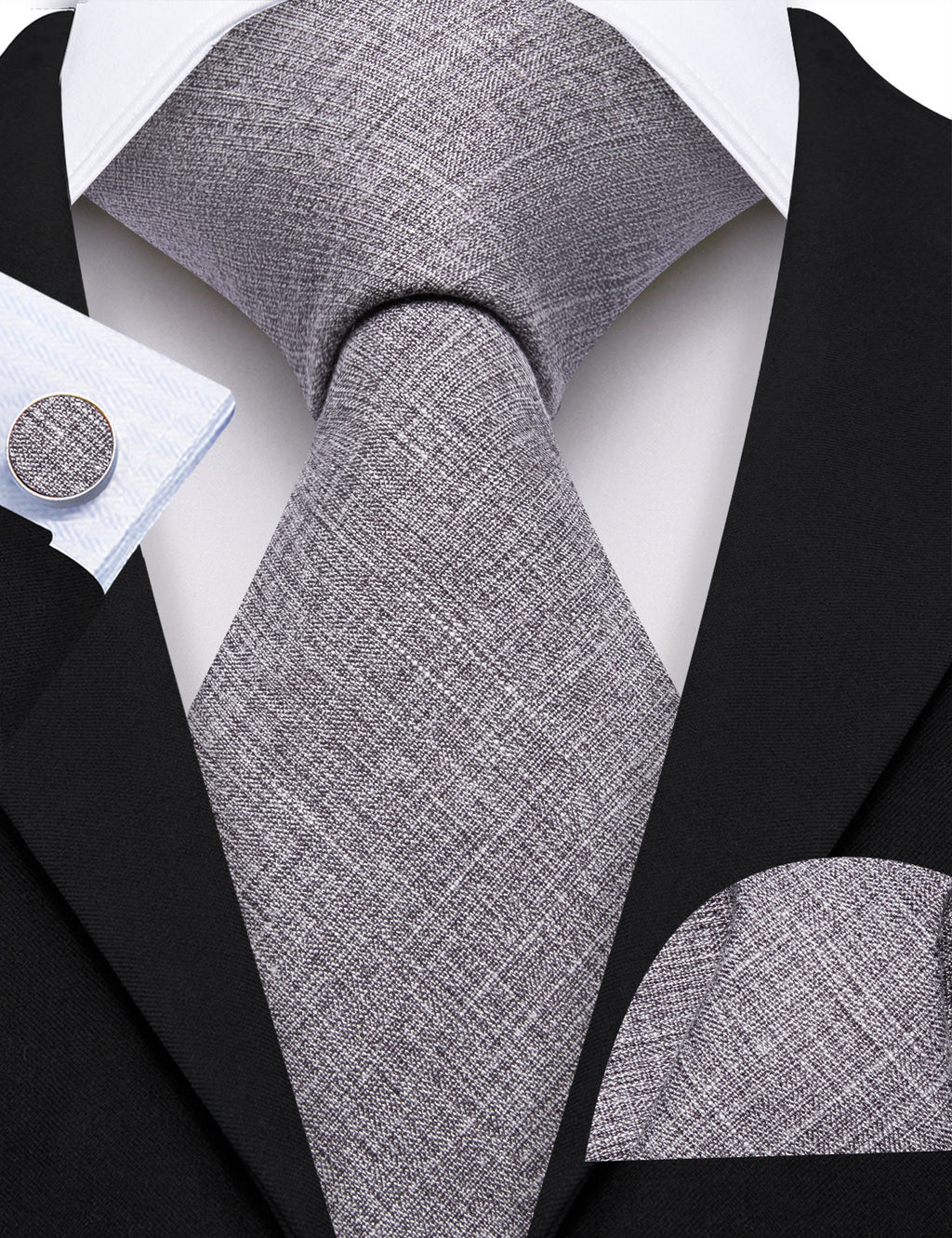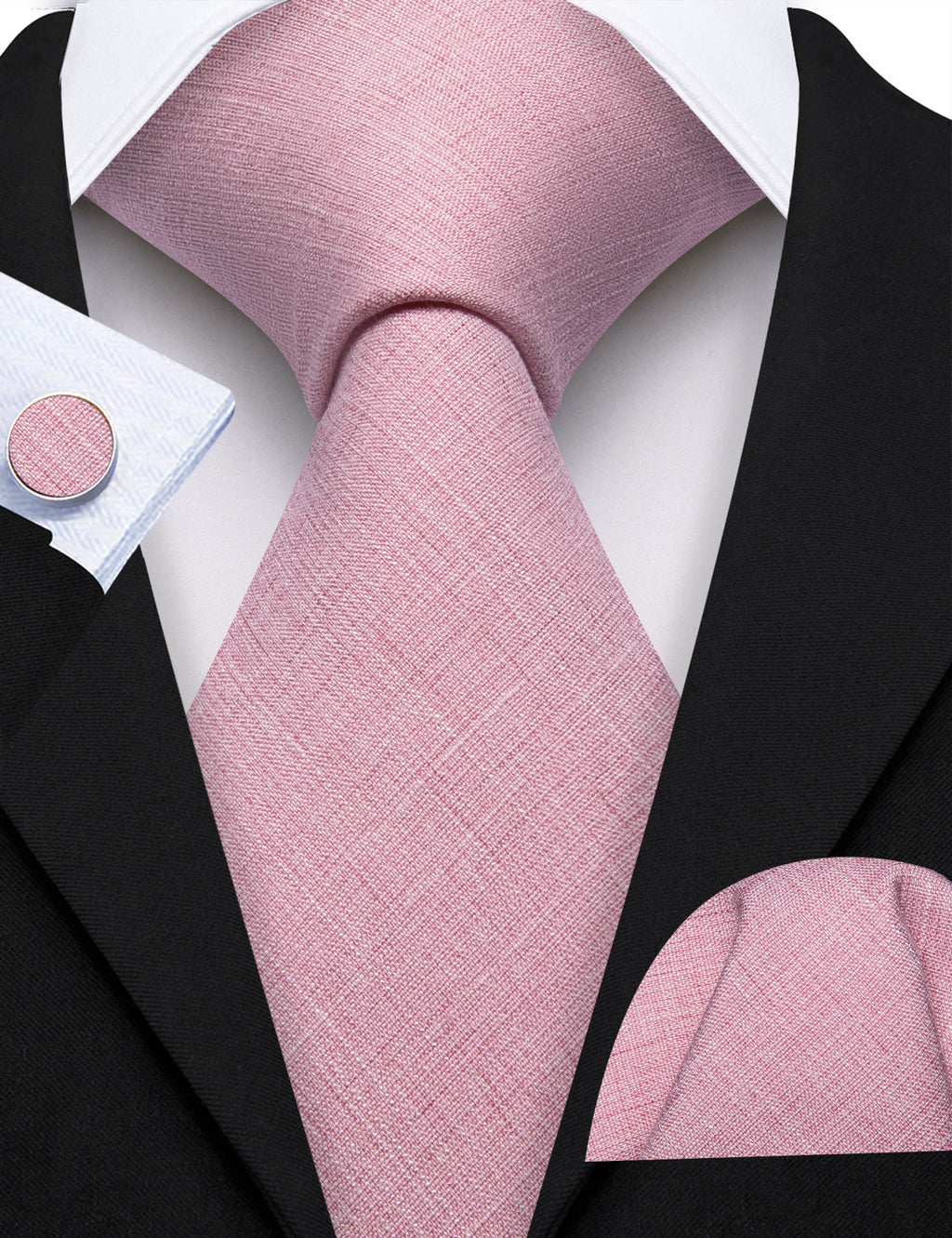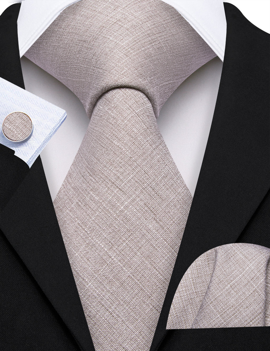 Barry. Wang Mens Champagne Solid Linen Tie Pocket Square Cufflinks Set