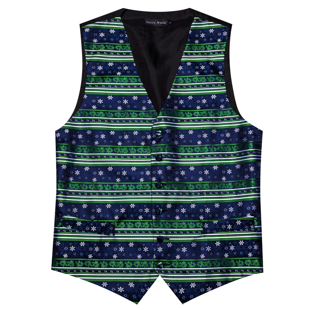 Barry. Wang Mens Holiday Green Suit Vest Navy Snowflake Xmas Silk Formal Waistcoat Tie Hanky Cufflinks Set