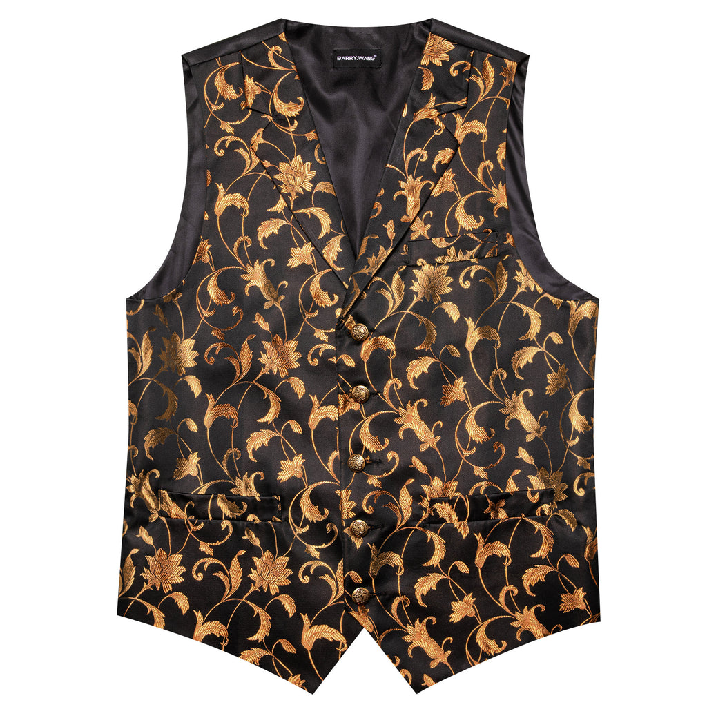 Barry. Wang Mens Collar Vest Gold Floral Suit Waistcoat Bowtie Hanky Cufflinks Set
