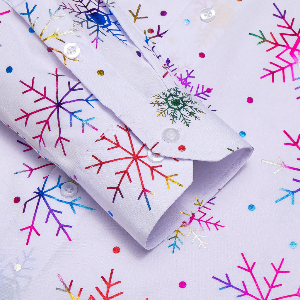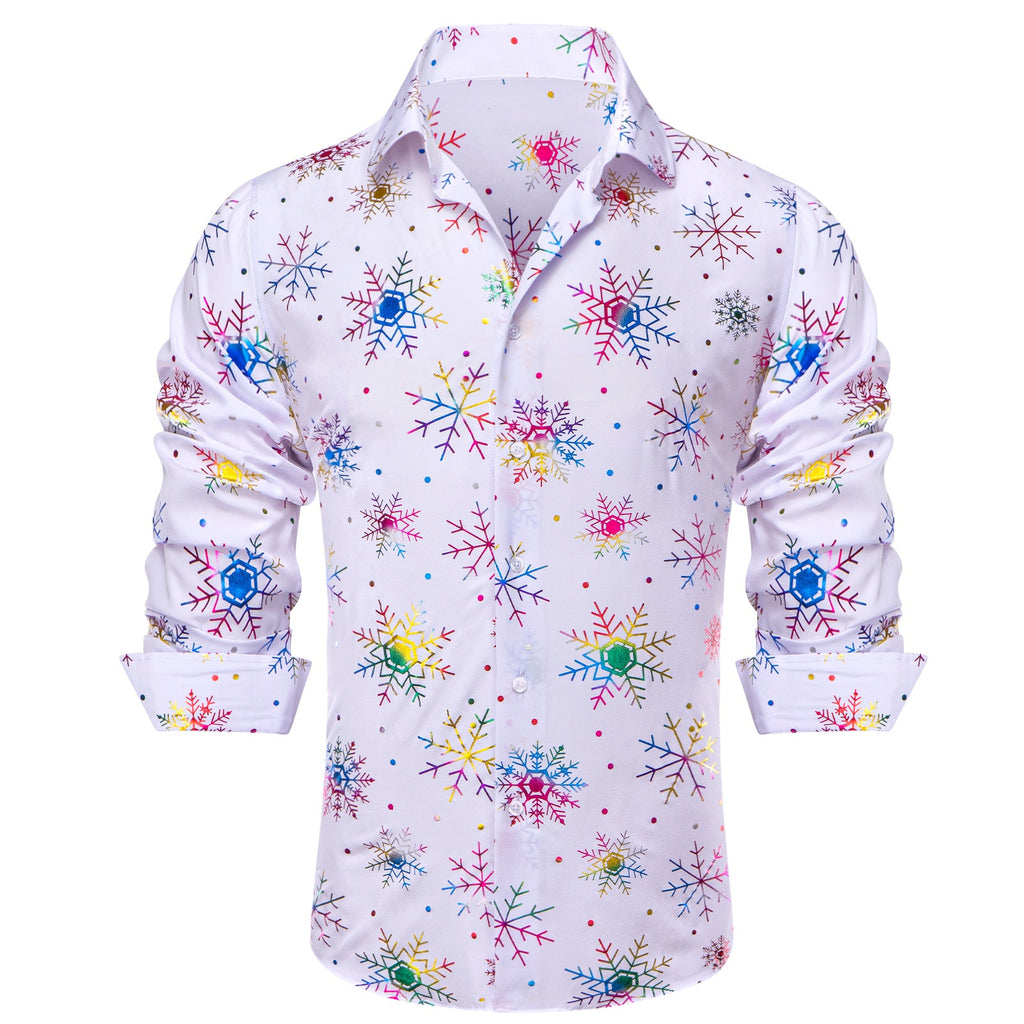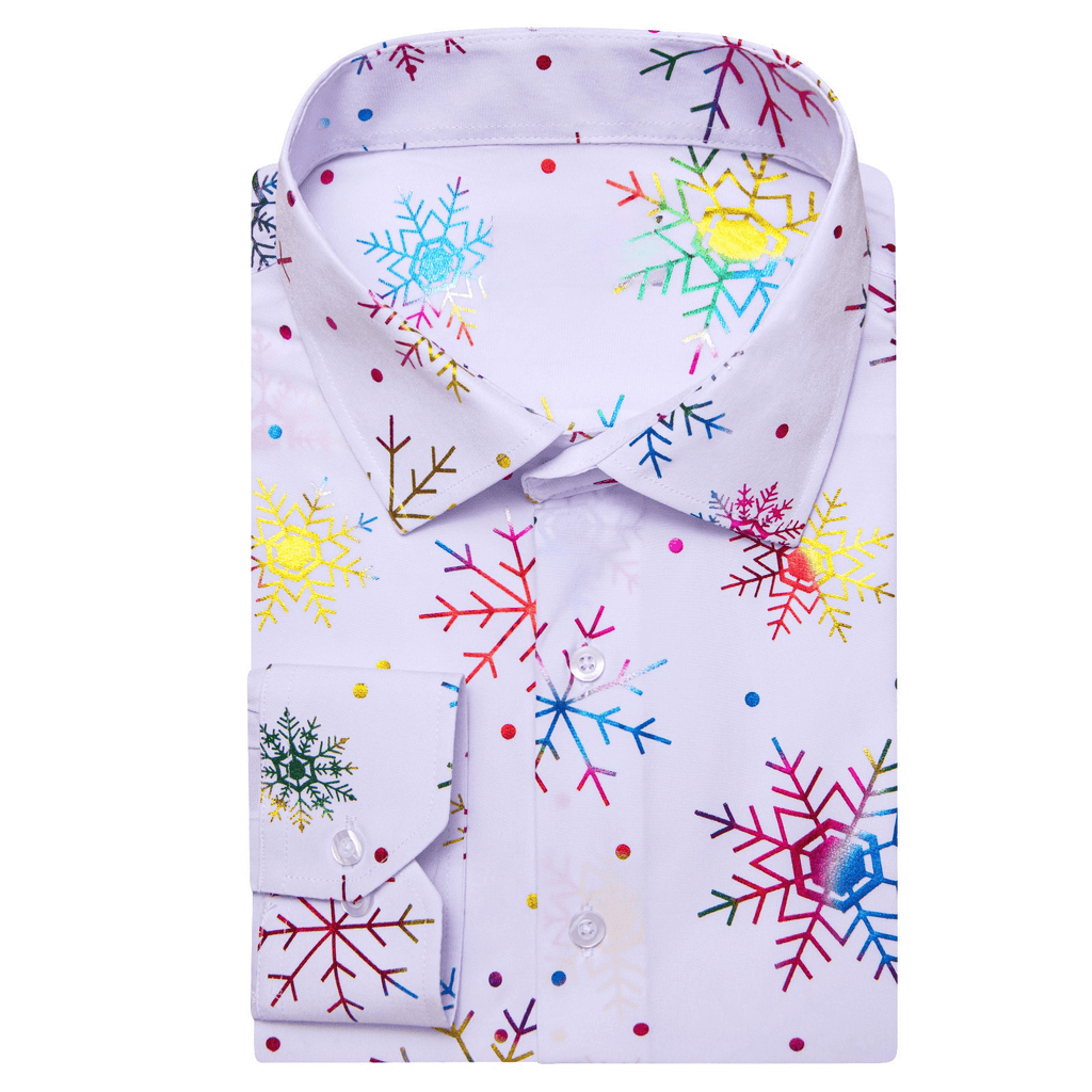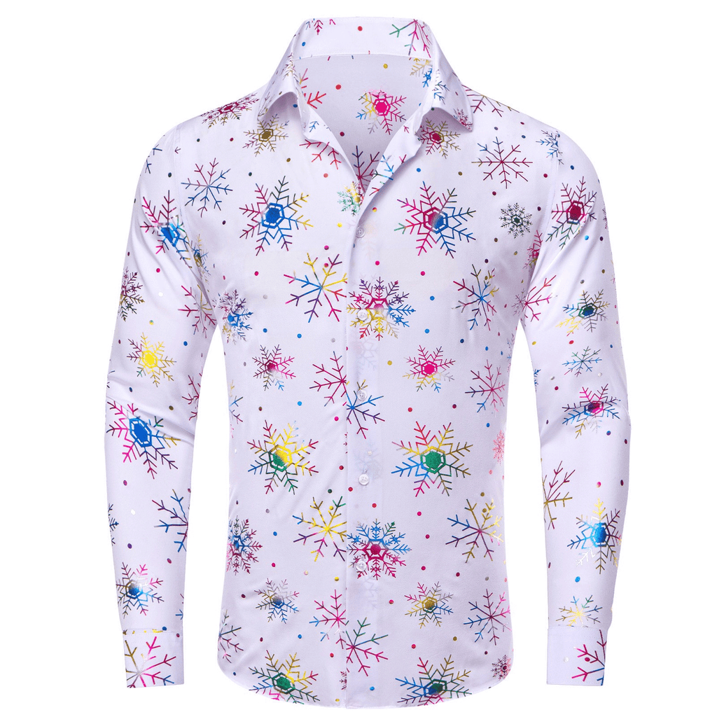 Barry.Wang Mens Holiday White Shirt Colorful Xmas Party Button Up Dress Shirt