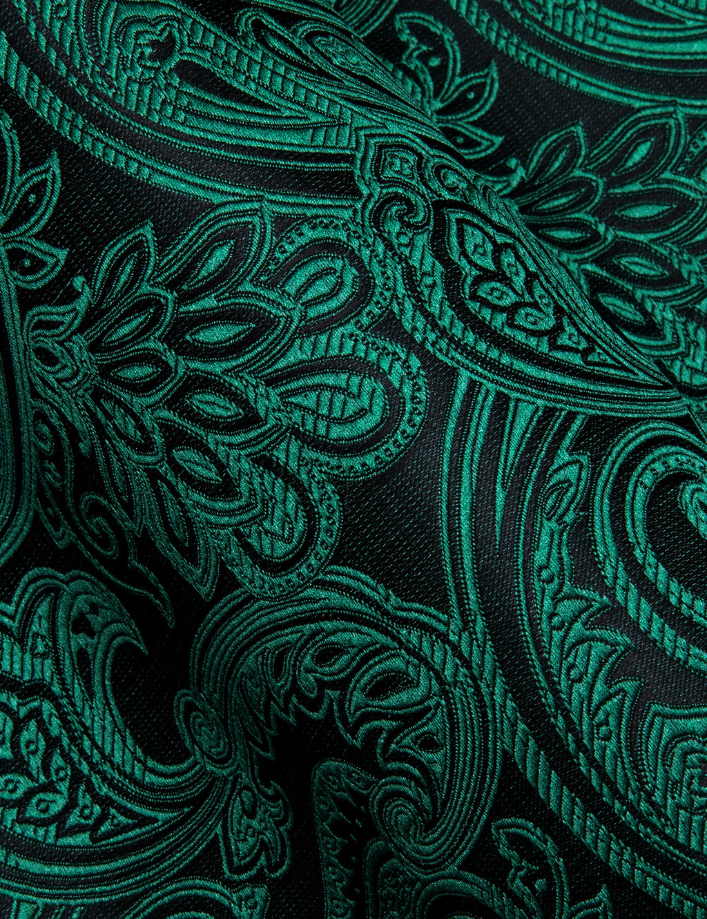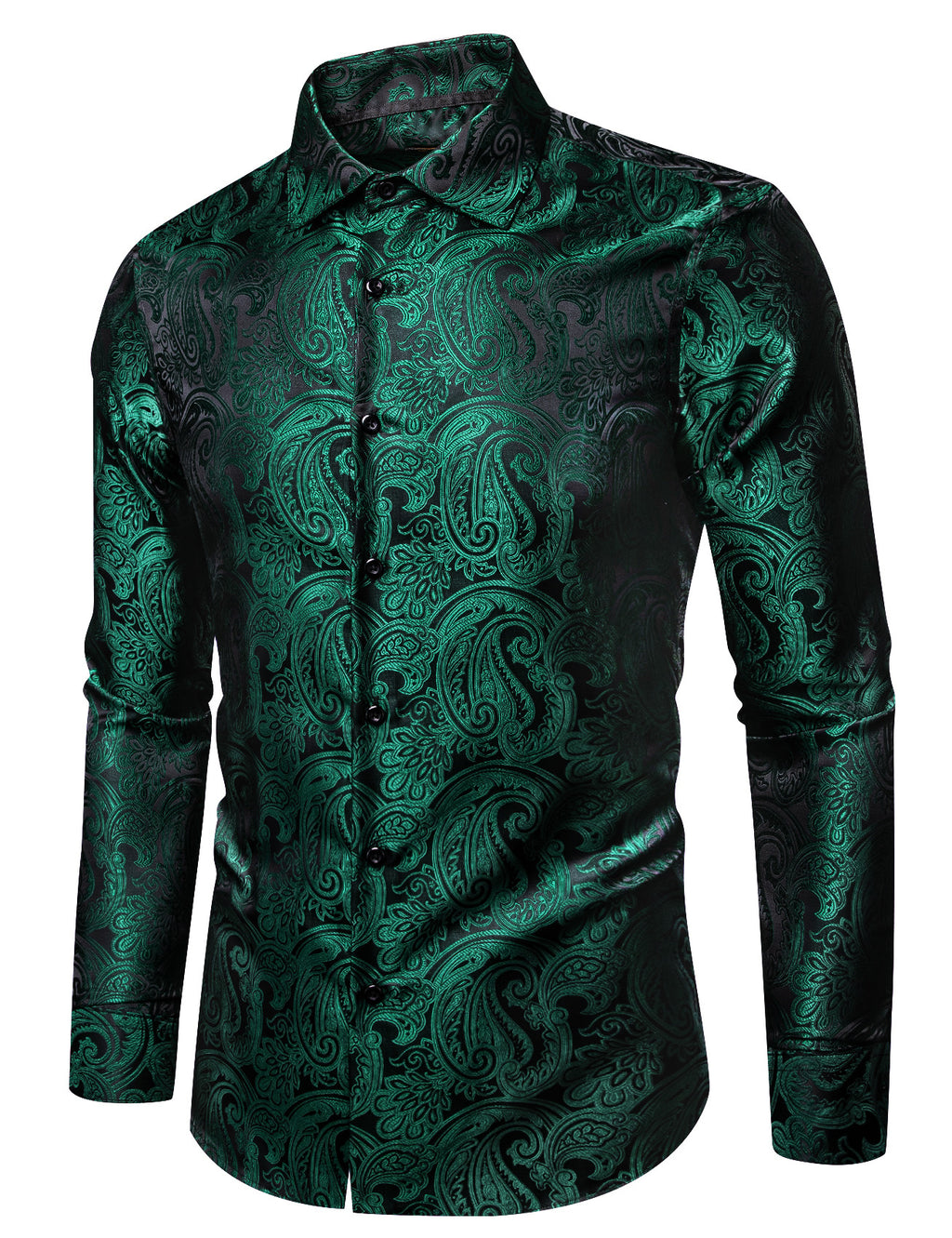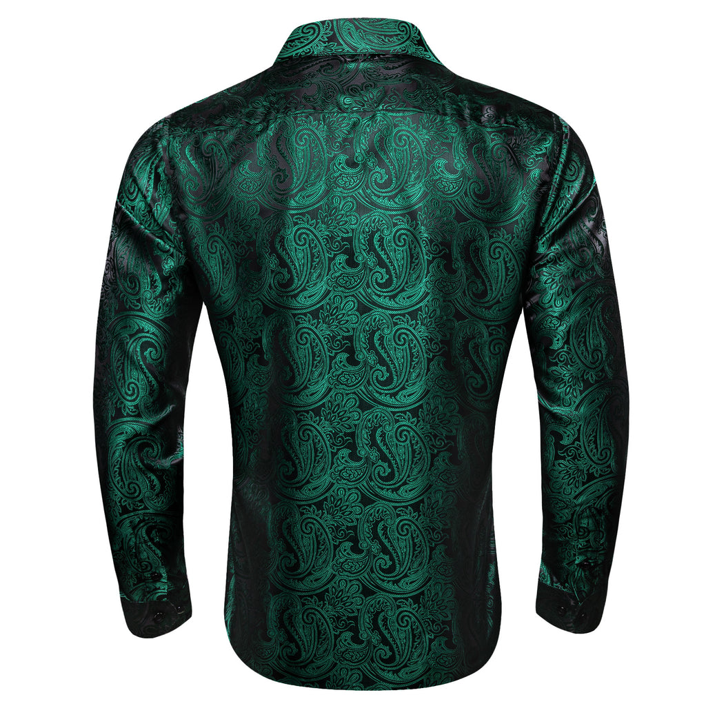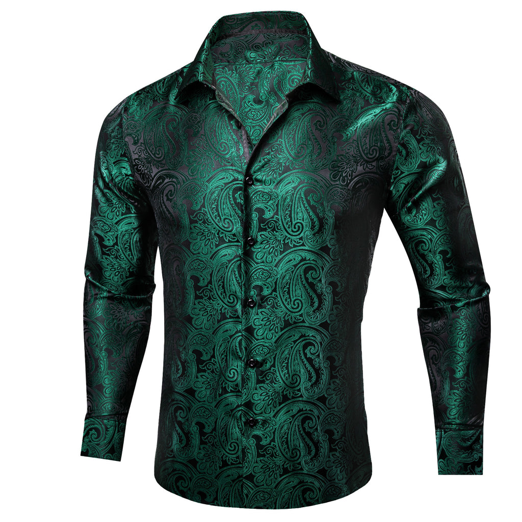 Barry. Wang Mens Hunter Green Dress Shirt Paisley Silk Long Sleeve Button Down Shirt