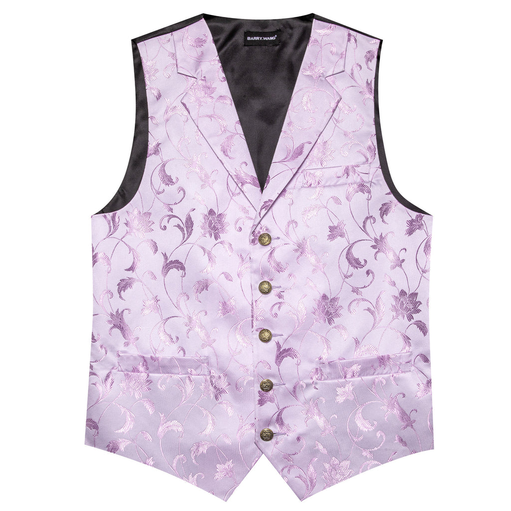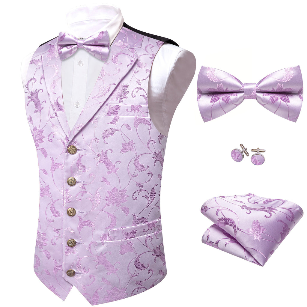 Barry. Wang Mens Lavender Floral Vest Silk Paisley Vest Bowtie Hanky Cufflinks Set