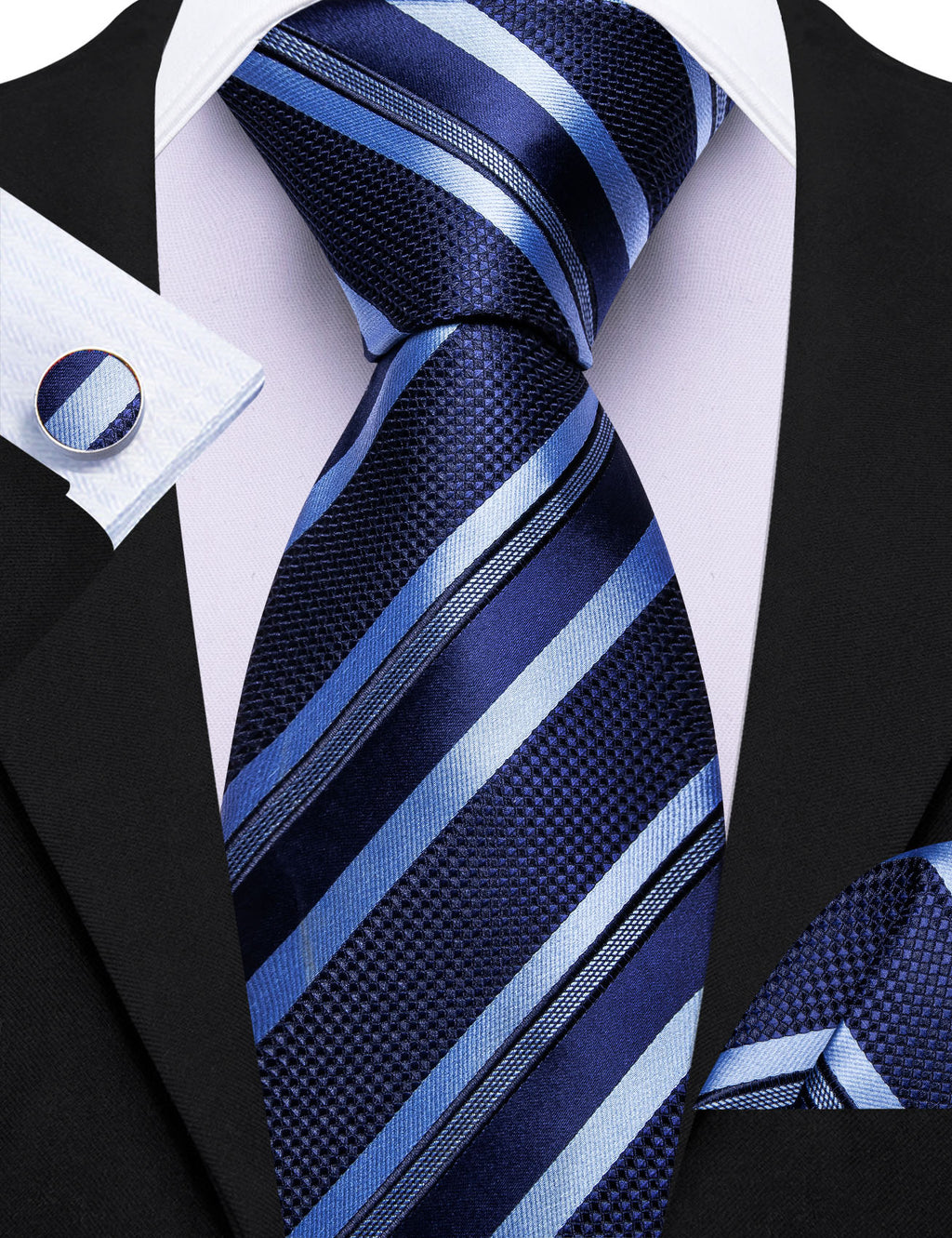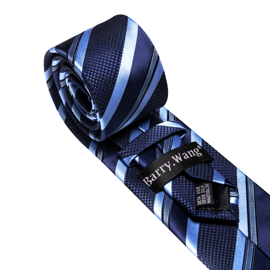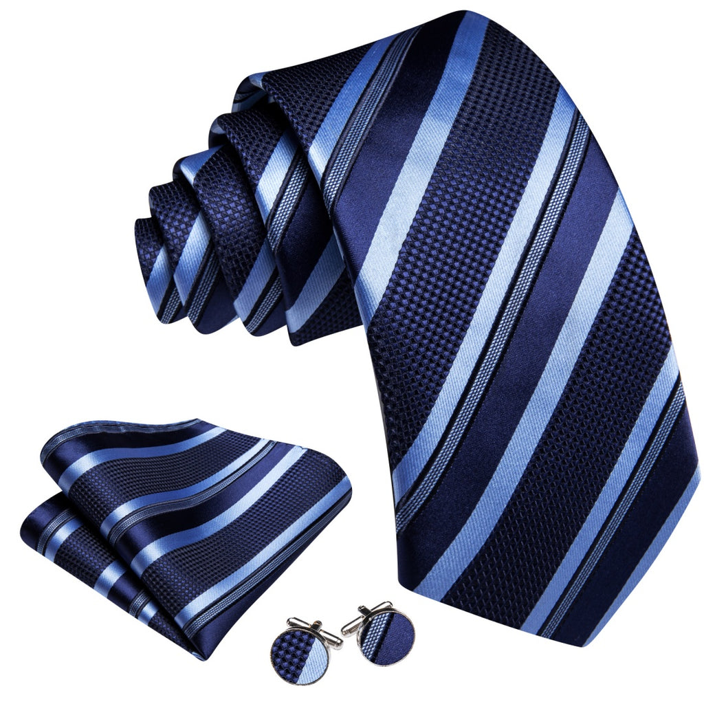 Barry. Wang Mens Midnight-Blue Tie Striped Tie Pocket Square Cufflinks Set