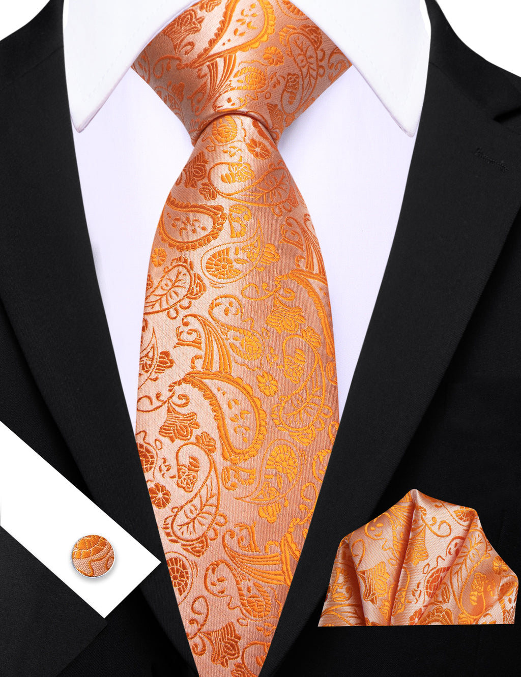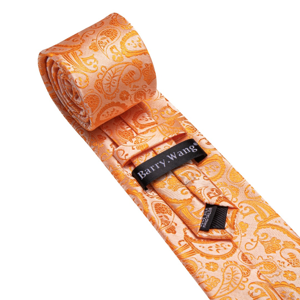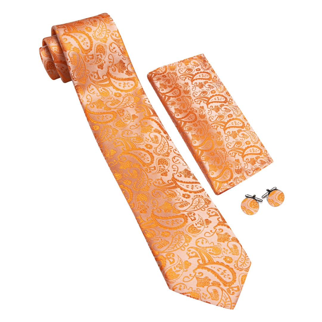 Barry. Wang Mens Orange Tie Paisley Designer Wedding Tie Pocket Square Cufflinks Set